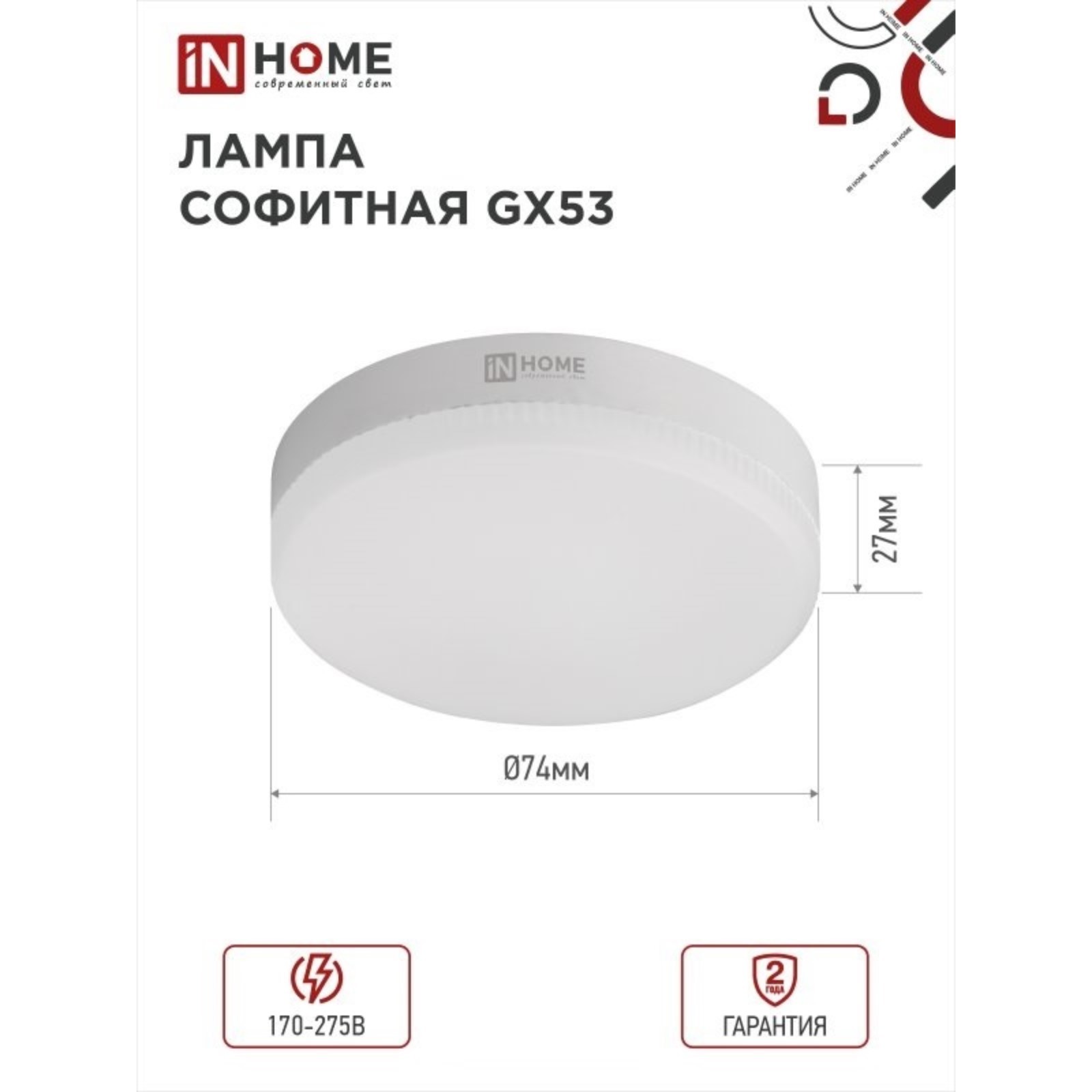 Лампа светодиодная In Home Led-gx53-vc, Gx53, 15 вт, 6500 к, 1430 лм