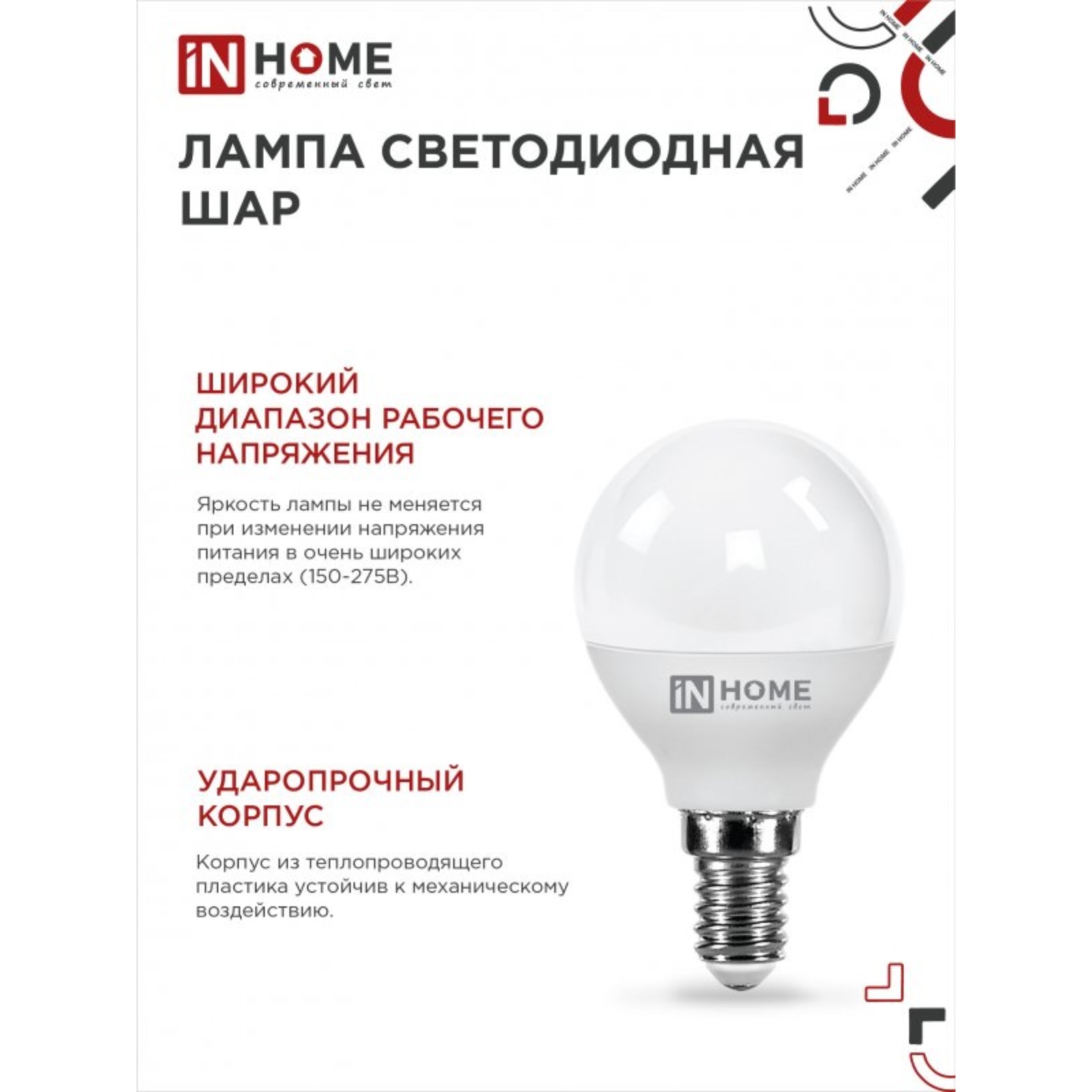 Лампа светодиодная In Home Led-шар-vc, е14, 11 вт, 230 в, 3000 к, 990 лм