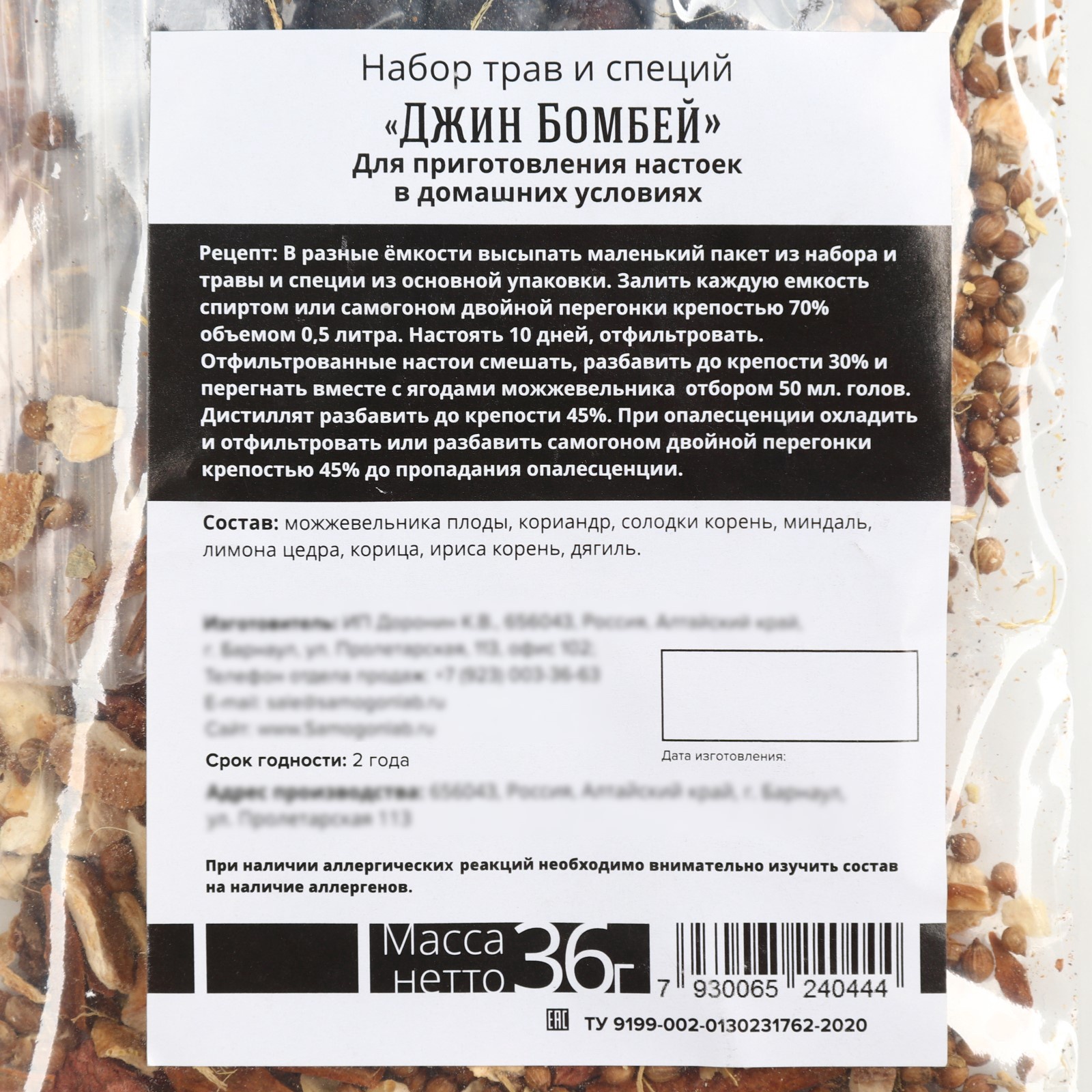 Подарочный набор для приготовления алкоголя «джин», набор трав и специй, бутылка. При оформление заказа, просим запрашивать актуальные сроки годности у менеджераСостав: можжевельника плоды, кориандр, солодки корень, миндаль, лимона цедра, корица, ириса корень, дягиль. Масса нетто: 36 г. Срок годности: 24 мес В наборе, шт.:2|Вес нетто, г:36|Вид упаковки:Коробка картонная|Составляющие набора:Инструкция|Составляющие набора:Специи|Составляющие набора:Бутылка|Возраст:Для взрослых|Страна:Россия  развернуть описание ▼