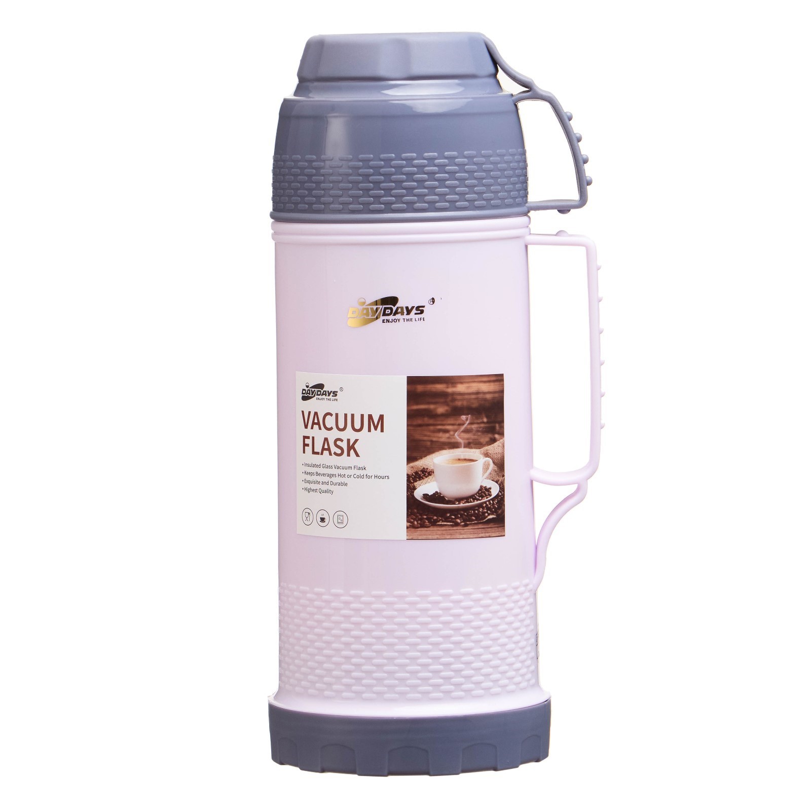 Термос 1 л, со стеклянной колбой, сохраняет тепло 12 ч, с кружкой, розовый