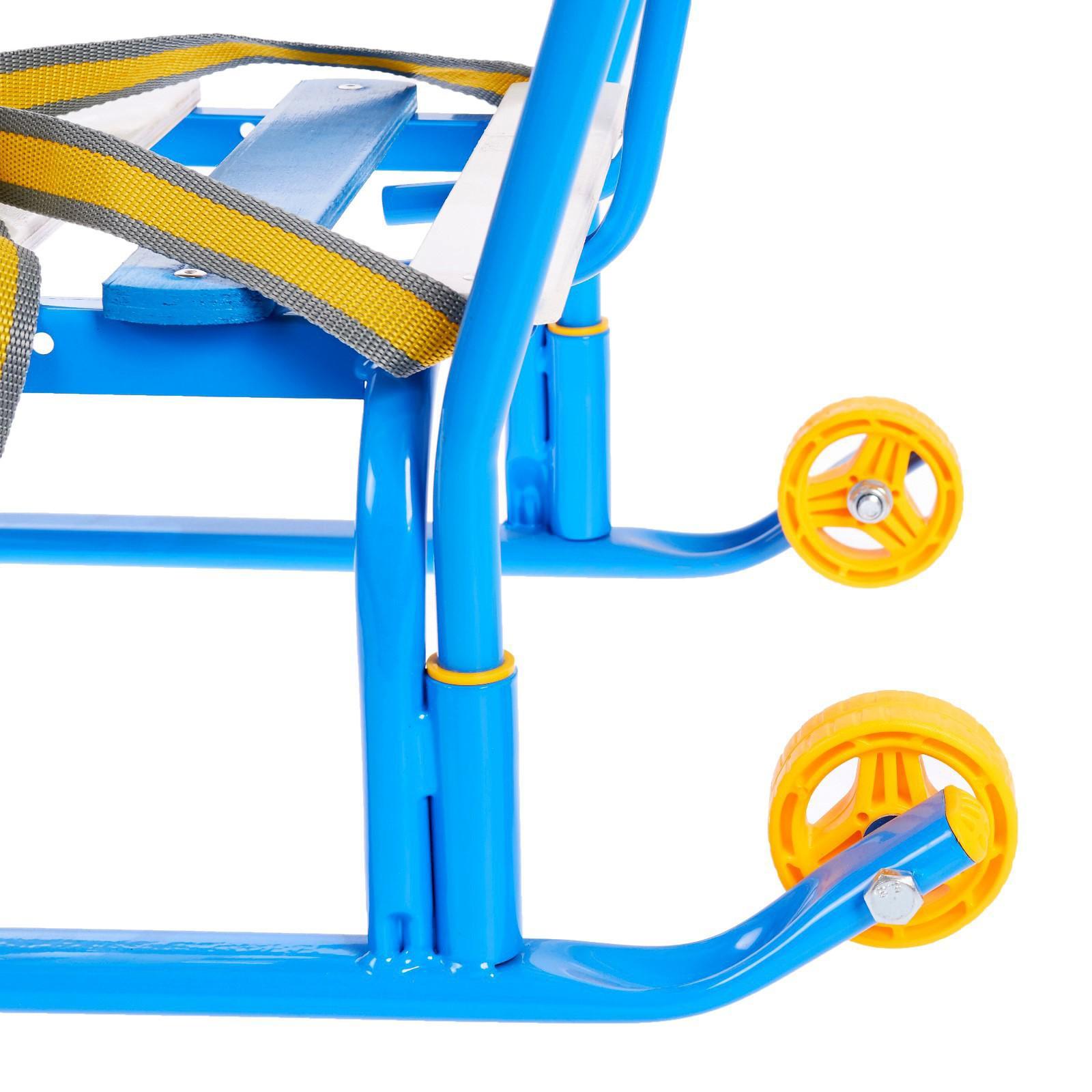 Санки «тимка 5 комфорт», цвет голубой. Цвет: Голубой Возраст: От 1 года Maксимальная нагрузка, кг: 25 Вид: Санки универсальные Перекидная ручка: Да Ремень безопасности: Да Положение спинки: Сидя Складная конструкция: Нет Задние колёса: Да Выдвижная база колёс/полозьев: Нет Температурное ограничение: Нет  развернуть описание ▼