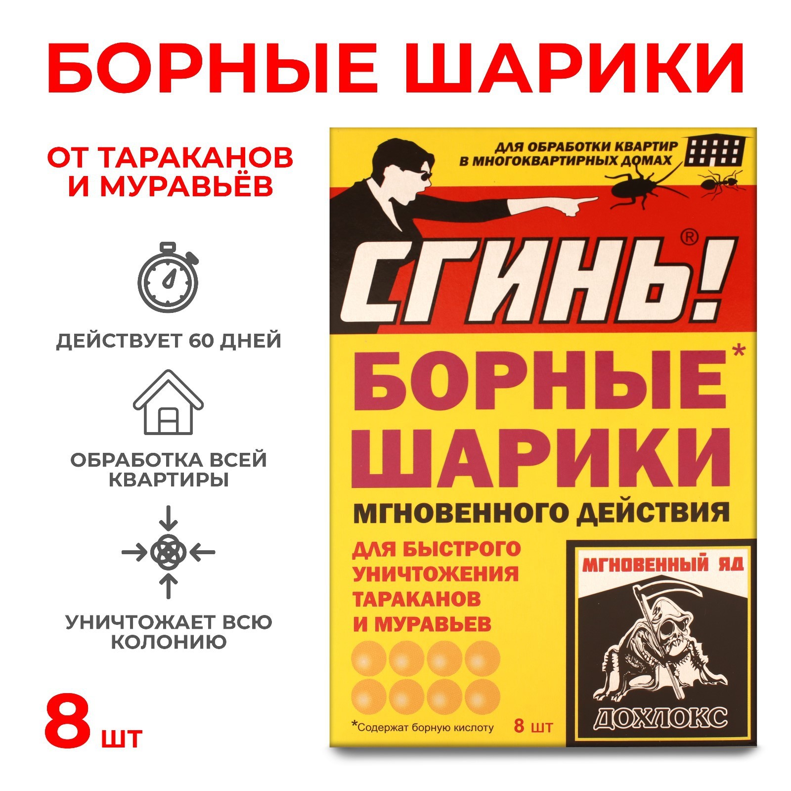 Борные шарики мгновенного действия от тараканов и муравьев "сгинь", 8 шт