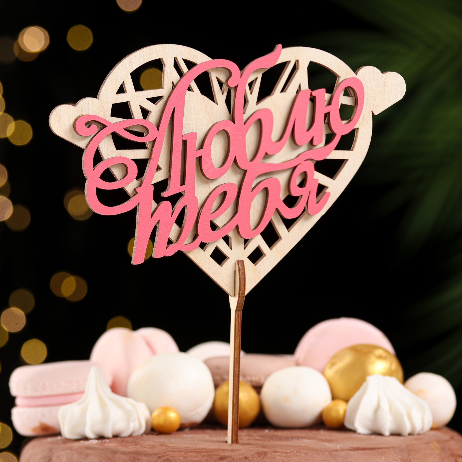 Топпер "люблю тебя", в упаковке, красный, 12x8 см