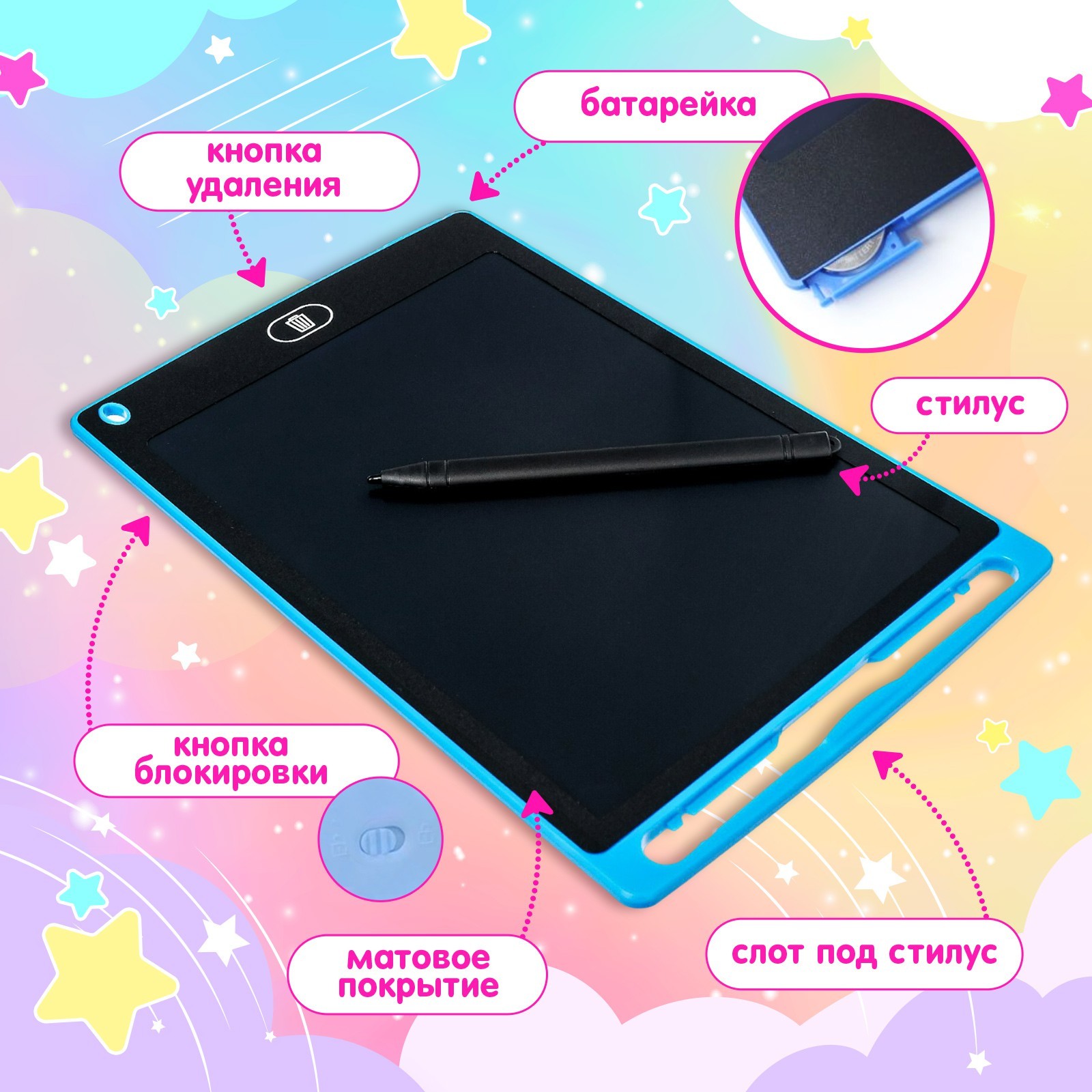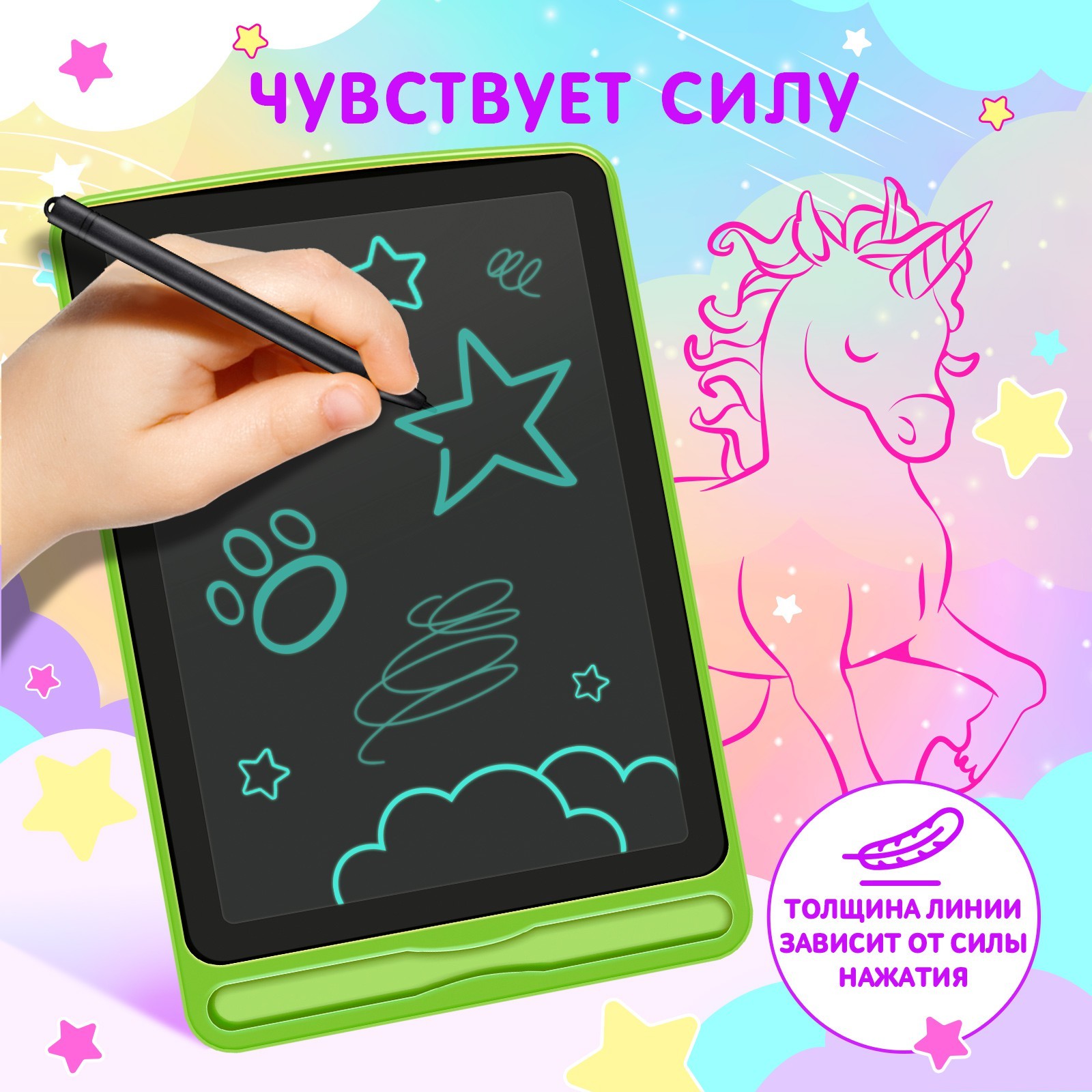 Led-планшет для рисования, с трафаретами, микс.   Детский планшет для рисования LED оживляет любые фантазии. У маленького затейника есть экран и волшебная ручка, а значит, он может отправиться вместе с пони в сказочное путешествие. У творчества нет границ! Пластиковый корпус очень лёгкий и тонкий, поэтому игрушку всегда можно взять с собой в дорогу, чтобы ребёнок был занят в пути. Ручка надёжно фиксируется в нижней части панели и не теряется среди других вещей. Для рисования можно использовать готовые трафареты с романтичными сюжетами: звёздочками, сердечками, бабочками и т.д., или придумать их самостоятельно. Чтобы картинка мгновенно исчезла, достаточно нажать на кнопку с изображением корзины. Освобождайте место для новых идей! Полезные эффекты: в игре развиваются образное мышление и творческие способности;использование стилуса тренирует мелкую моторику и позволяет подготовиться к письму;на планшете можно записывать буквы и цифры, слова и арифметические примеры, поэтому он подходит для обучающих занятий;жидкокристаллический дисплей безопасен для глаз.Рисуйте удивительные картинки! Для кого:Для девочки|Длина, мм:177|Ширина, мм:113|Возраст:От 3 лет|Количество батареек:1|Дополнительные функции:Без функций|Типоразмер батареек:CR2025|Тема обучения:Цвета, формы, звуки|Тема обучения:Развитие моторики|Вид раскраски:Неоновые|Назначение:Электронный планшет|Батарейки в комплекте:Да|Тематика набора:Роспись, раскраска, рисование |Страна:Китай  развернуть описание ▼