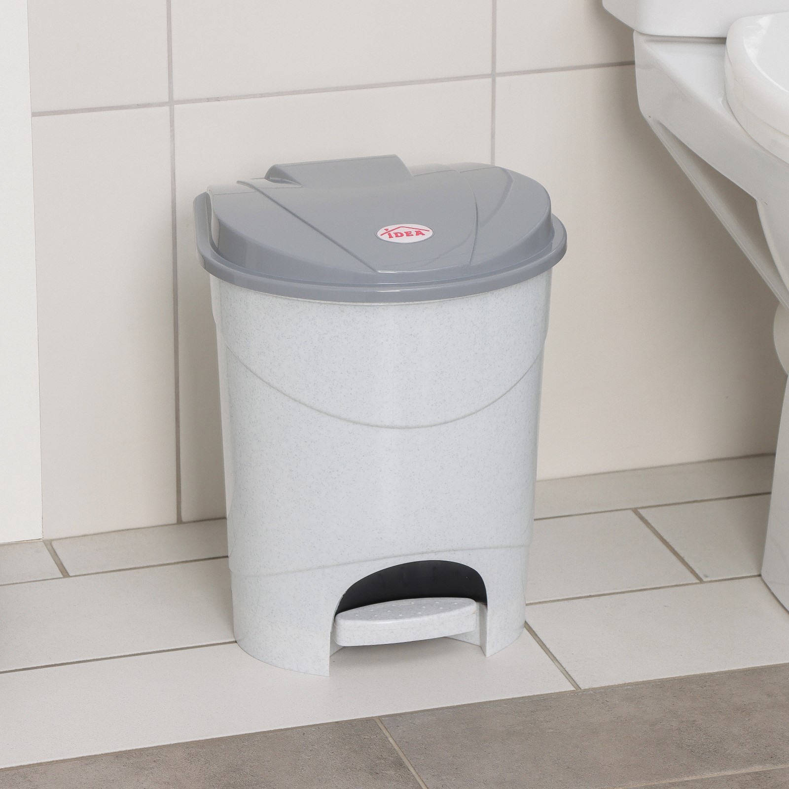 Контейнер для мусора с педалью, 11 л, цвет мраморный. Контейнер, ведро, корзина – емкость для мусора относится к числу базовых предметов домашнего обихода в любой точке земного шара. Как правило, такой утилизатор рассчитан на долгую эксплуатацию, а значит, вам стоит уделить его выбору необходимое внимание. Ведро для мусора представляет наиболее экономичный и вместе с тем удобный способ хранения отходов как в домашней обстановке, так и в офисных условиях. Конструкция с механическим откидыванием крышки позволяет не притрагиваться к урне руками. Плотно прилегающая крышка надежно блокирует неприятные запахи и препятствует выпадению содержимого. Изделие выполнено из прочного износостойкого пластика и станет верным помощником в бытовых хлопотах. Вы можете приобрести как классически строгую модель, так и яркую дизайнерскую работу, предназначенную стать ярким украшением интерьера кухни или ванной комнаты. Цвет: Серый Форма: Цилиндрическая Объём, л: 11 Материал: Пластик Особенность: С педалью Особенность: С крышкой Тип: Ведро Форма: Круг, шар, цилиндр  развернуть описание ▼
