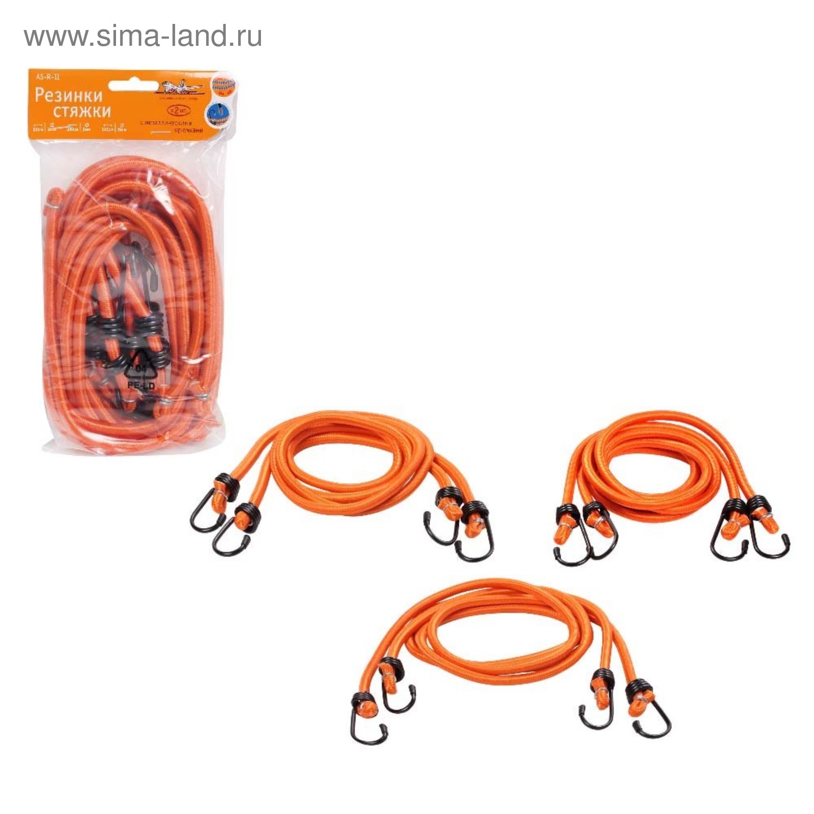 Резинка для крепления багажа, (2-80см, 2-100см, 2-120см), D8 мм, металлические крючки, набор 6 шт