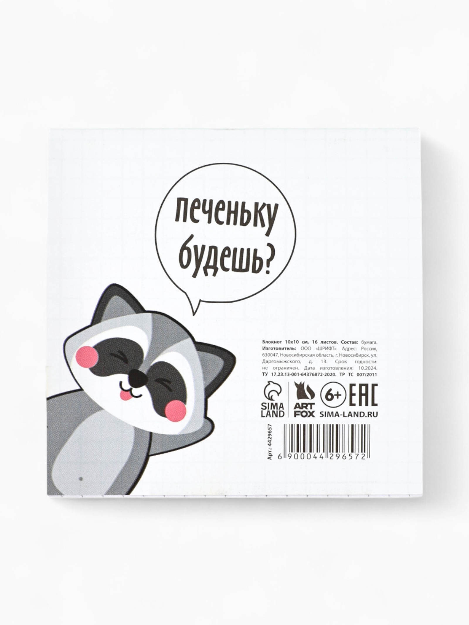 Блокнот 10х10, 16 листов в клетку «енотик блокнотик»