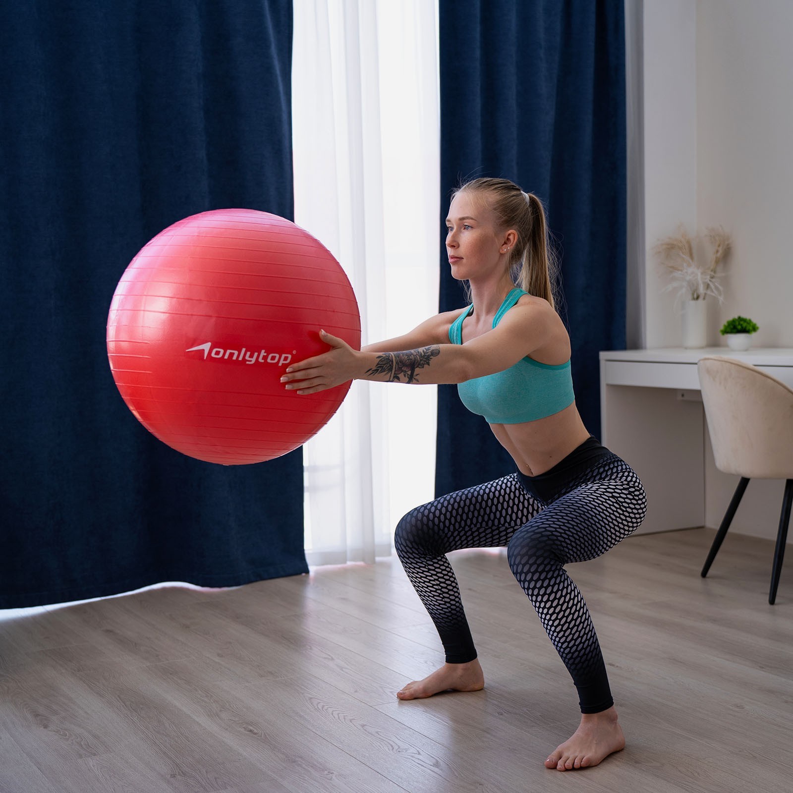 Фитбол onlytop, d=65 см, 900 г, антивзрыв, цвет красный. Фитбол предназначен для занятий фитнесом или йогой. Подходит для начинающих и опытных спортсменов. Упражнения на мяче способствуют развитию координации, баланса и гибкости. Его можно использовать как для расслабляющей практики после трудного дня, так и для активного тренинга, направленного на сжигание калорий и улучшение физической формы. За счёт занятий с мячом укрепляются мышцы кора, спины, а также улучшается осанка. Гимнастический мяч может использоваться в спортзале, дома или на свежем воздухе для разнообразия тренировок. Поверхность мяча выполнена из противоскользящего материала, что позволяет сосредоточиться на выполнении упражнений без риска. Характеристики Диаметр: 65 см. Максимальная нагрузка: 100 кг. Подойдёт на рост: 155–170 см. Цвет: Красный Форма: Круглая Диаметр, см: 65 Наличие насоса: Нет Maксимальная нагрузка, кг: 100 Вес, г: 900 Возраст: Взрослый Массажный: Нет Особенности: Антивзрыв  развернуть описание ▼