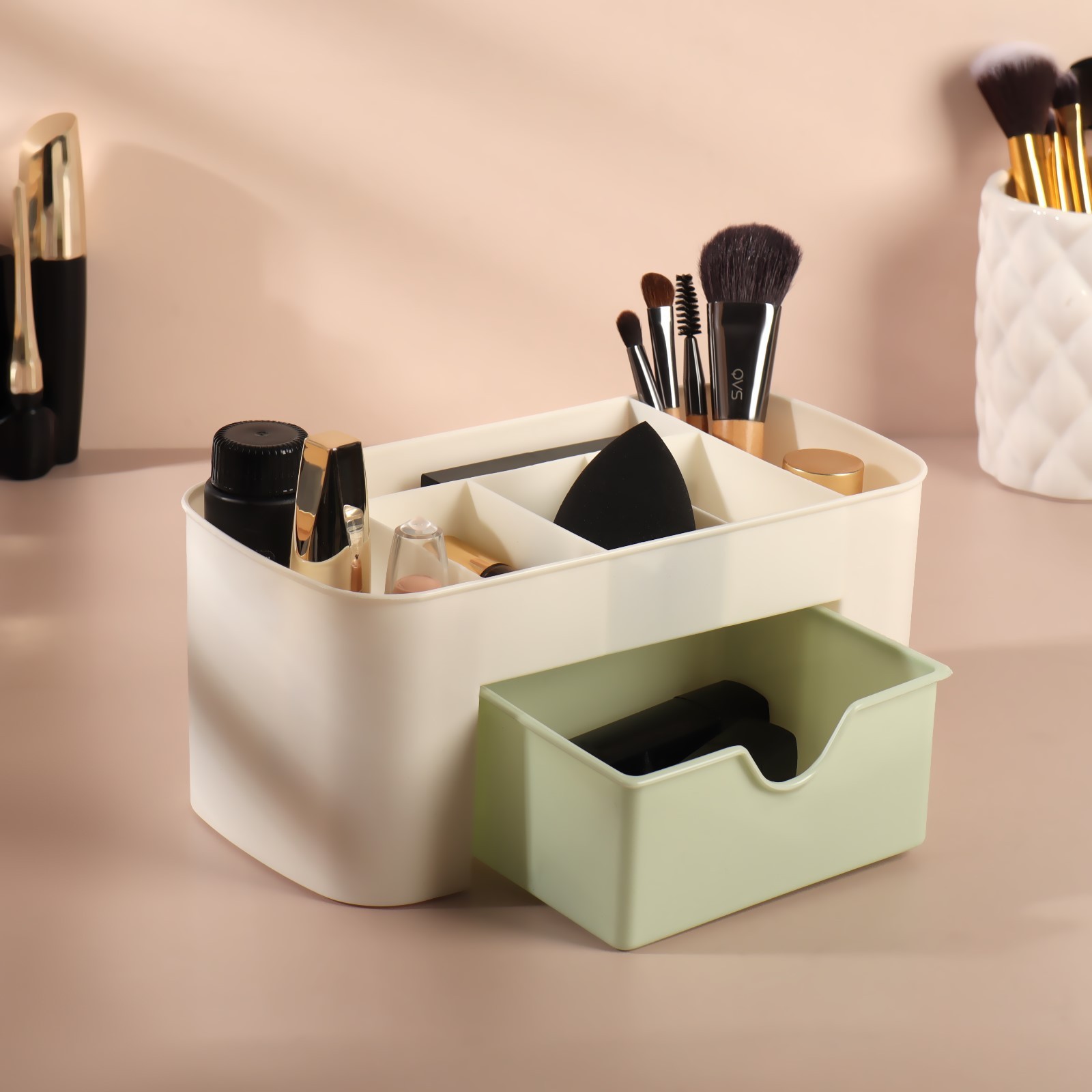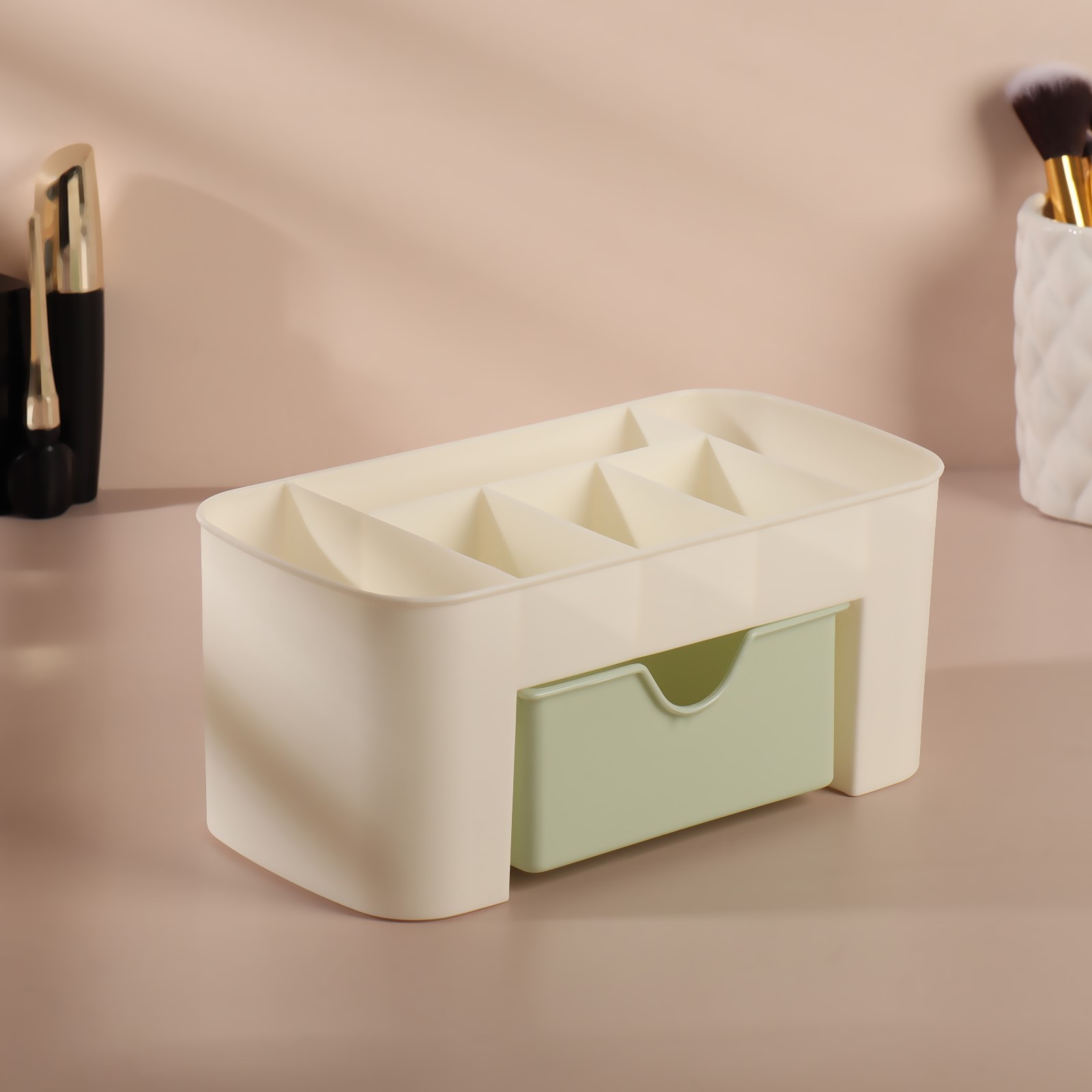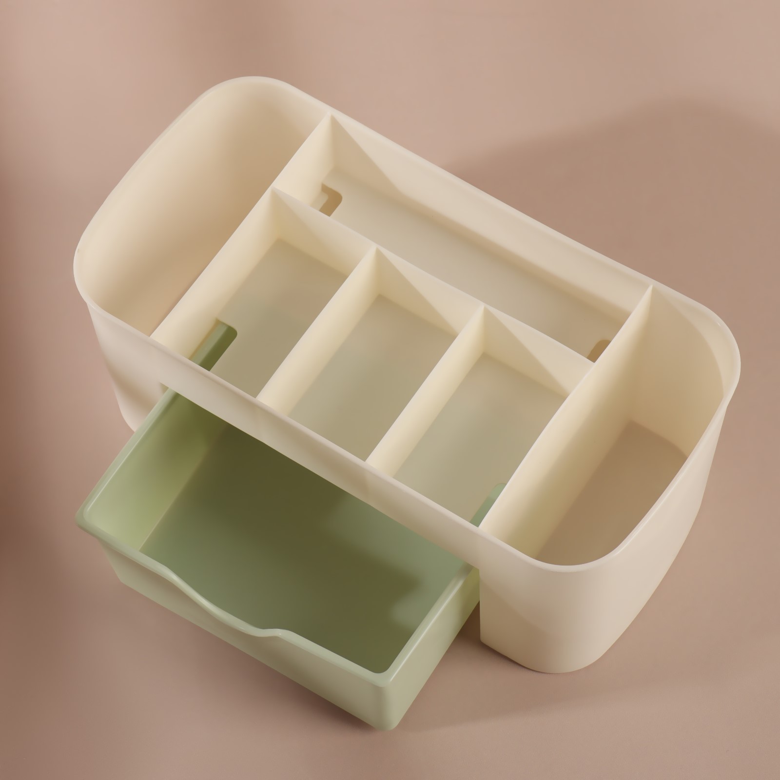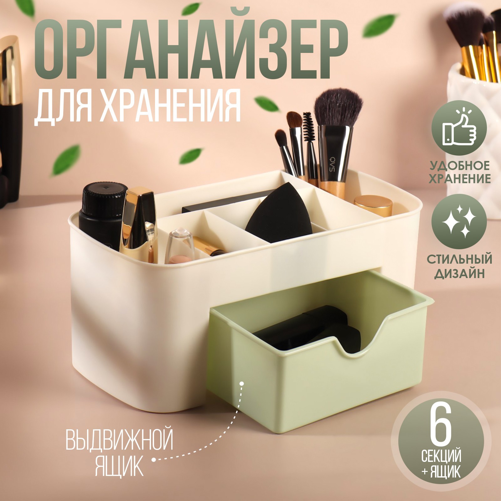 Органайзер для хранения, 6 секций, с ящиком, 21 X 10,5 X 9 см, цвет бежевый/зелёный