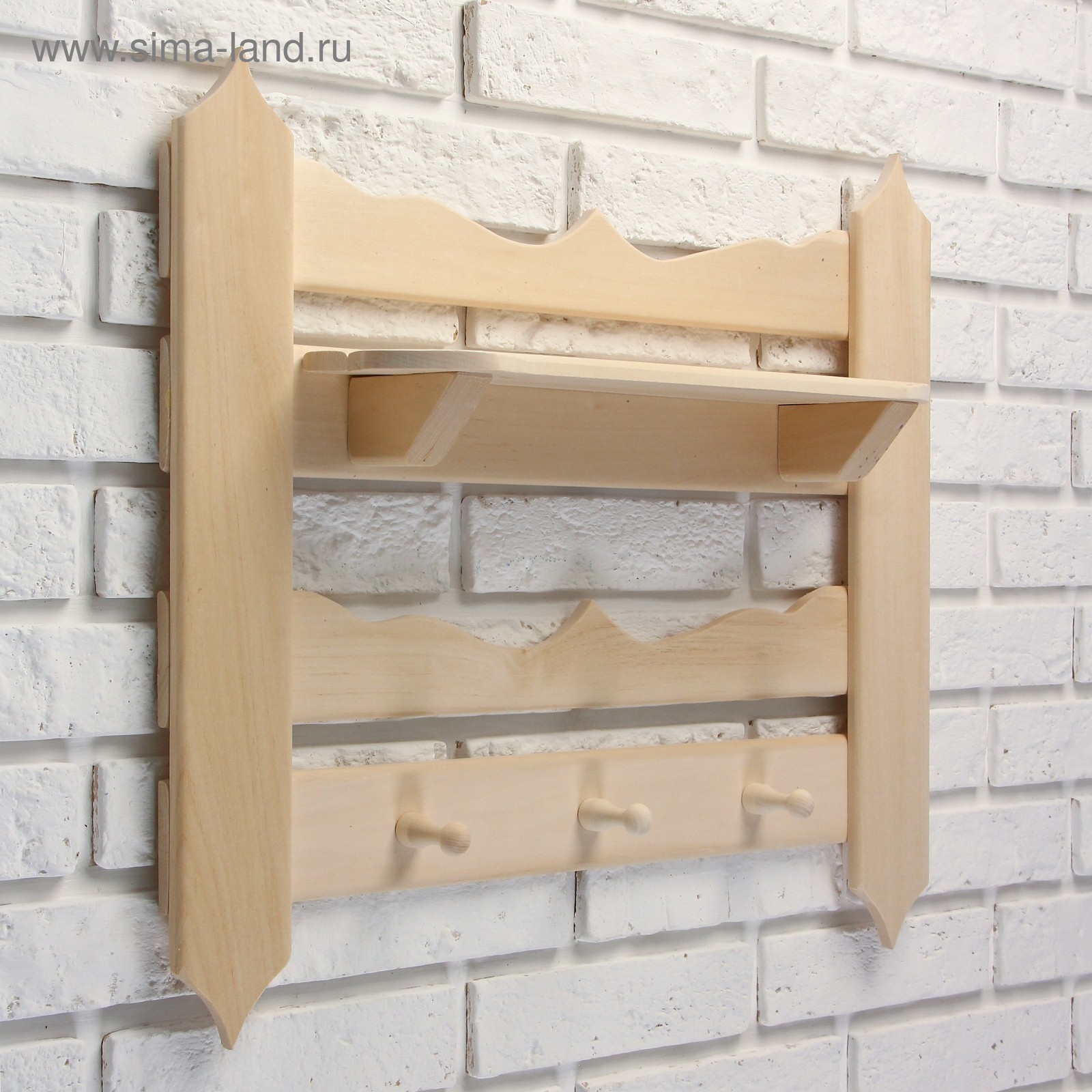 Полка вешалка резная, 3 крючка, 55x50x12 см