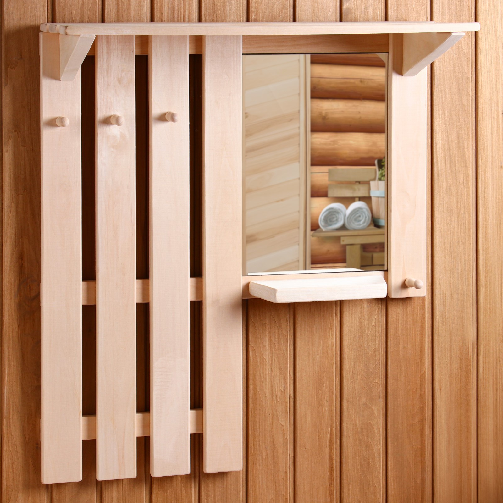 Полка вешалка с зеркалом, большая, 3 крючка