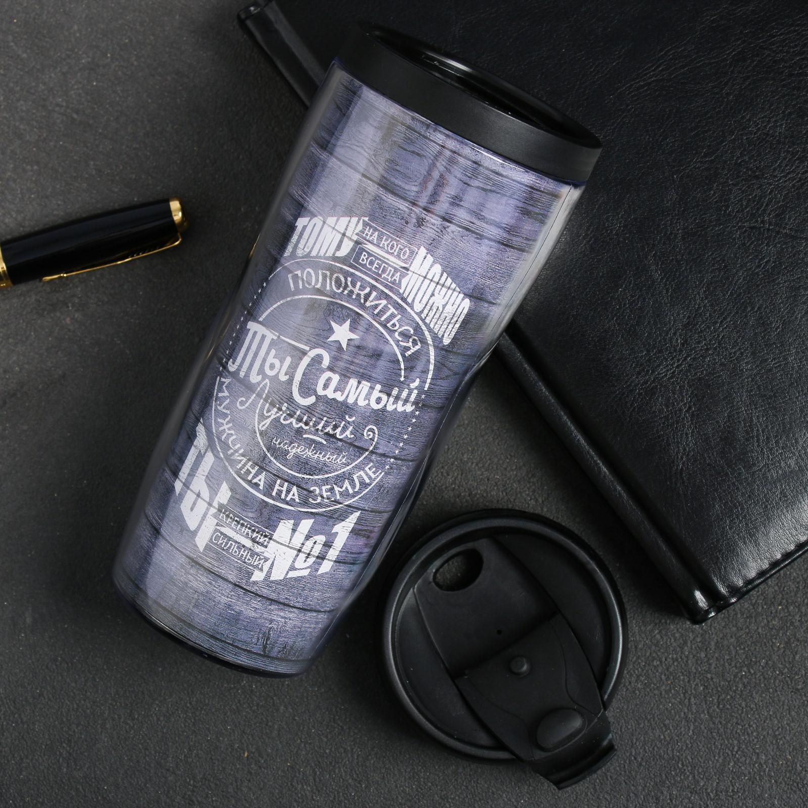 Термостакан "ты самый лучший мужчина на земле" 350мл. Этот термостакан создан для тех, кто всегда в движении. Он подойдет для работы, отдыха и станет отличным подарком близкому человеку. Особенности • Противоскользящая прокладка на дне. • Классическая форма высокого стакана обеспечит удобство использования. • Авторский дизайн подчеркнёт индивидуальность обладателя. • Сменный вкладыш (21, 5 х 15, 5 см). Такой термостакан — практичный аксессуар и чудесный подарок для себя, друга или коллеги. Цвет: Серый Высота, см: 18 Время сохранения тепла/холода, ч: 2 Диаметр горловины, см: 5.5 Диаметр «стакана», мм: 55 Вес, г: 165 Объём, мл: 350 Материал: Пластик Температурное ограничение: Нет Сменная вставка (рисунок): Да  развернуть описание ▼