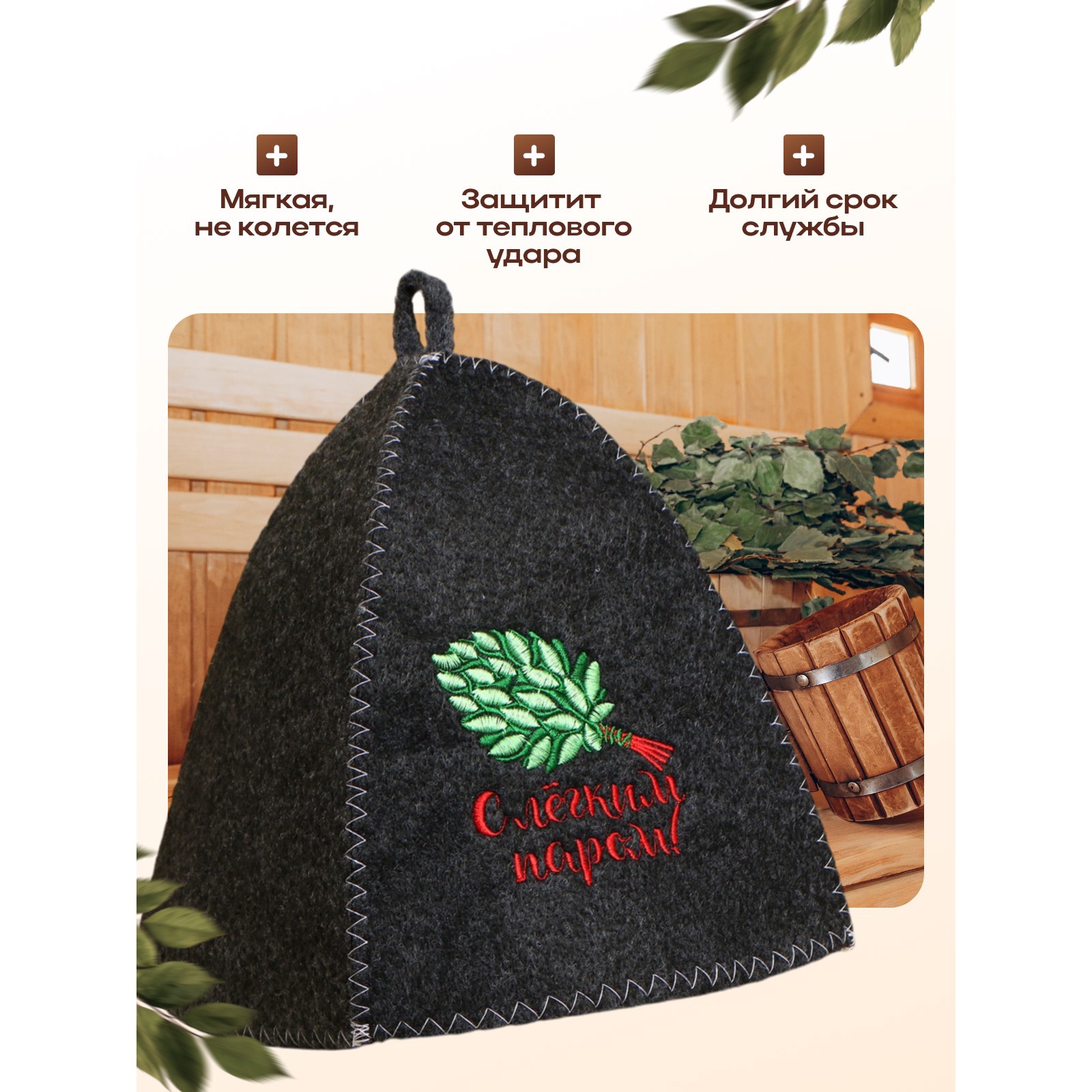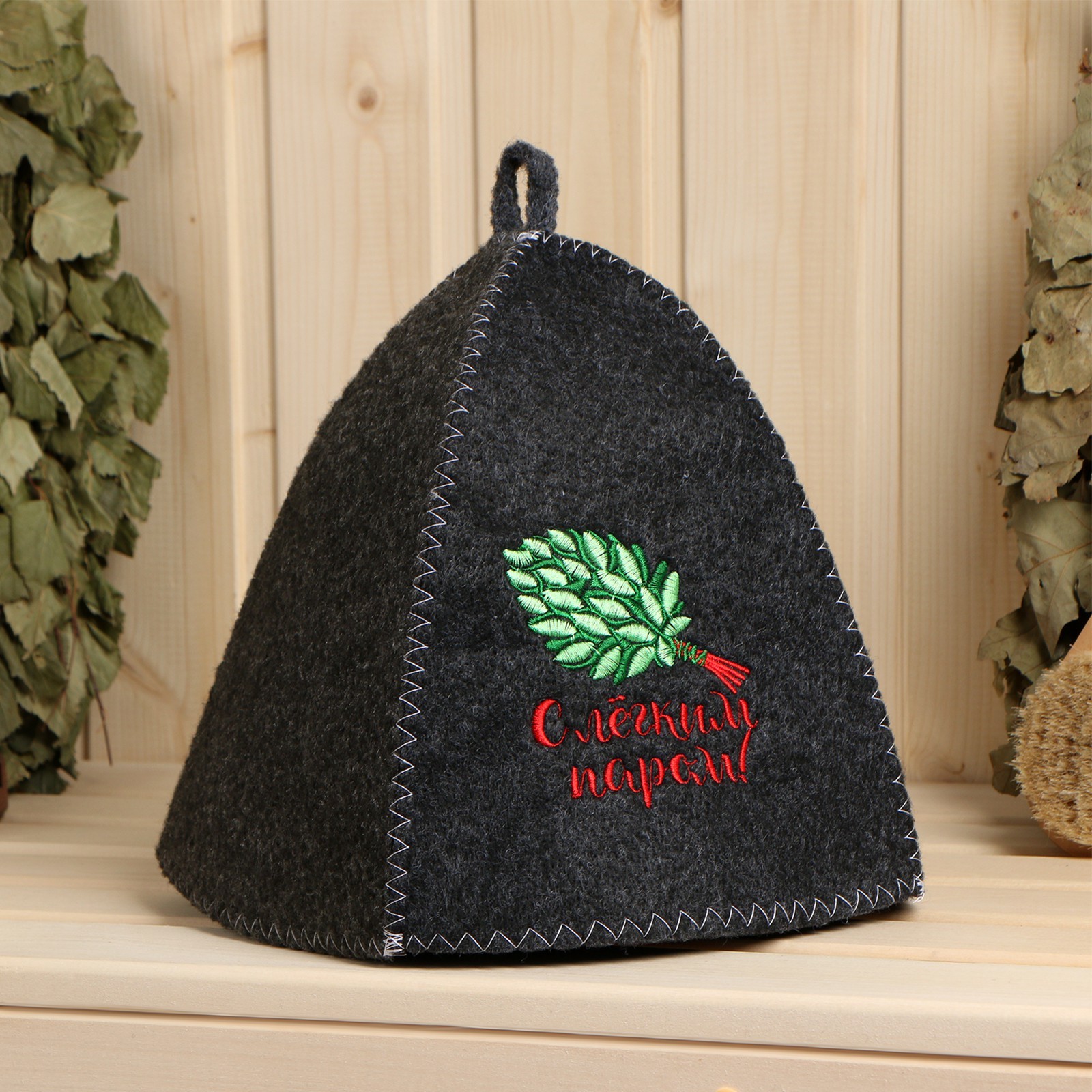 Шапка для бани и сауны, с вышивкой «с лёгким паром», полиэфир 70%, шерсть 30%, серая, «добропаровъ»