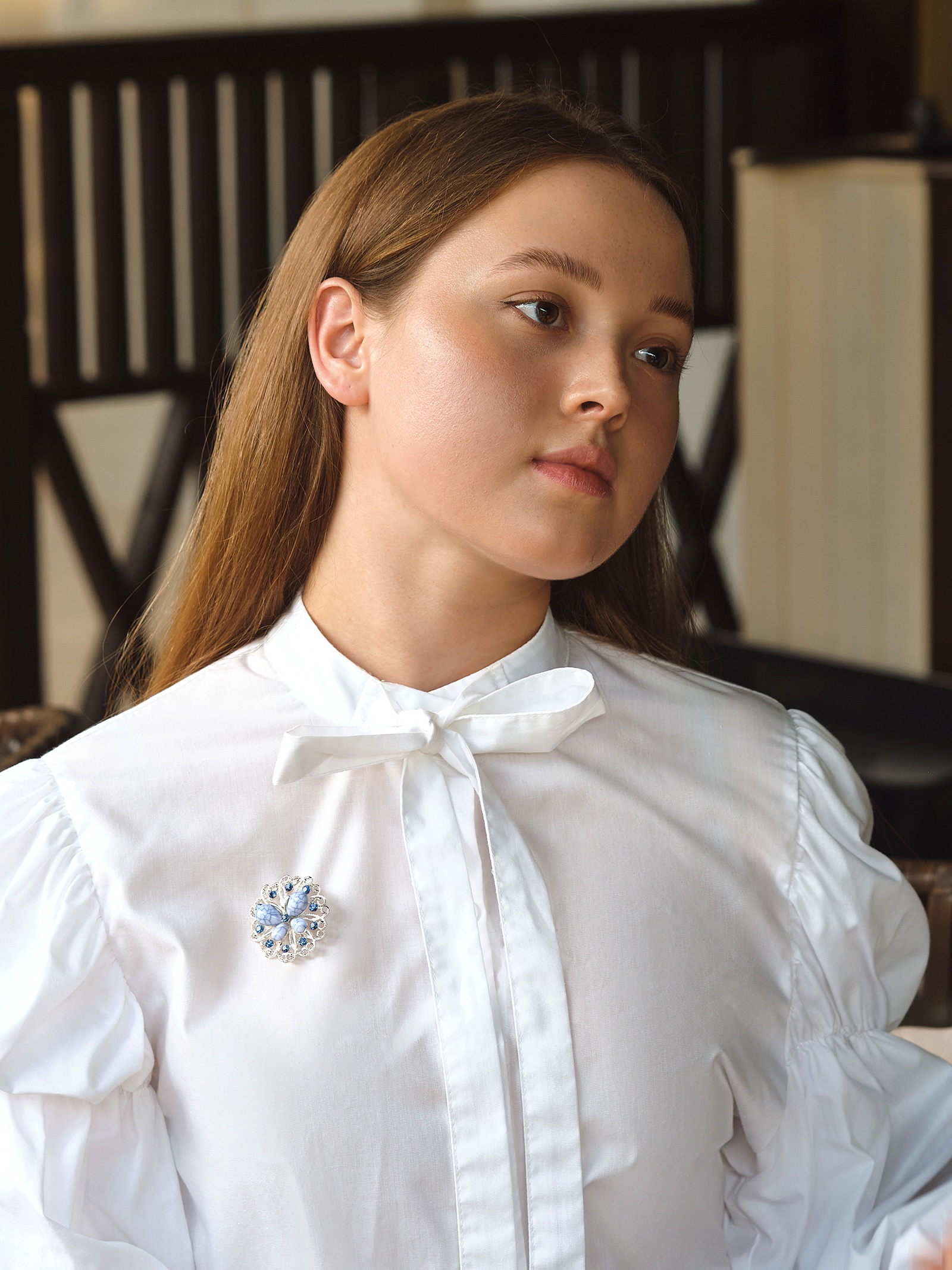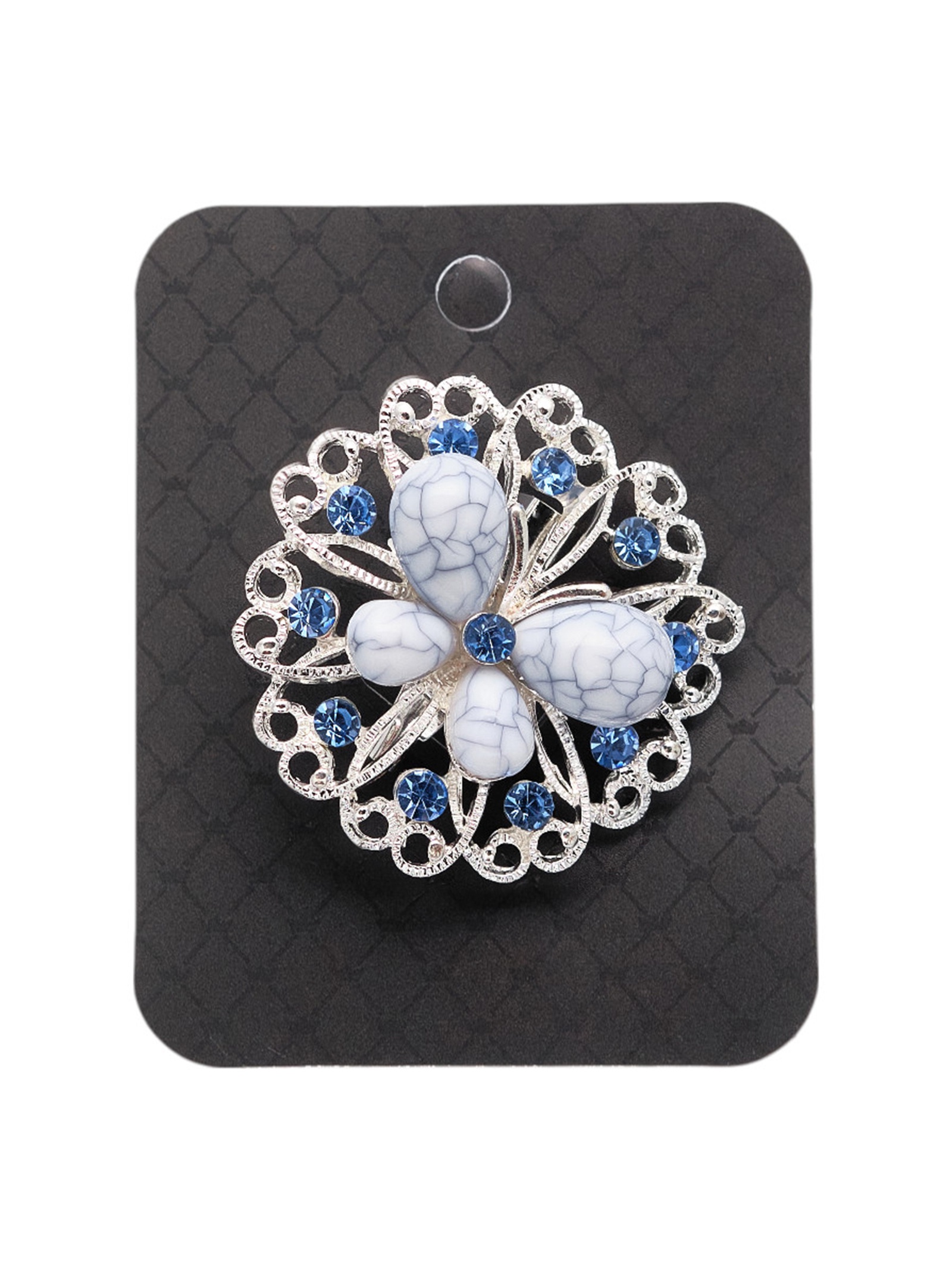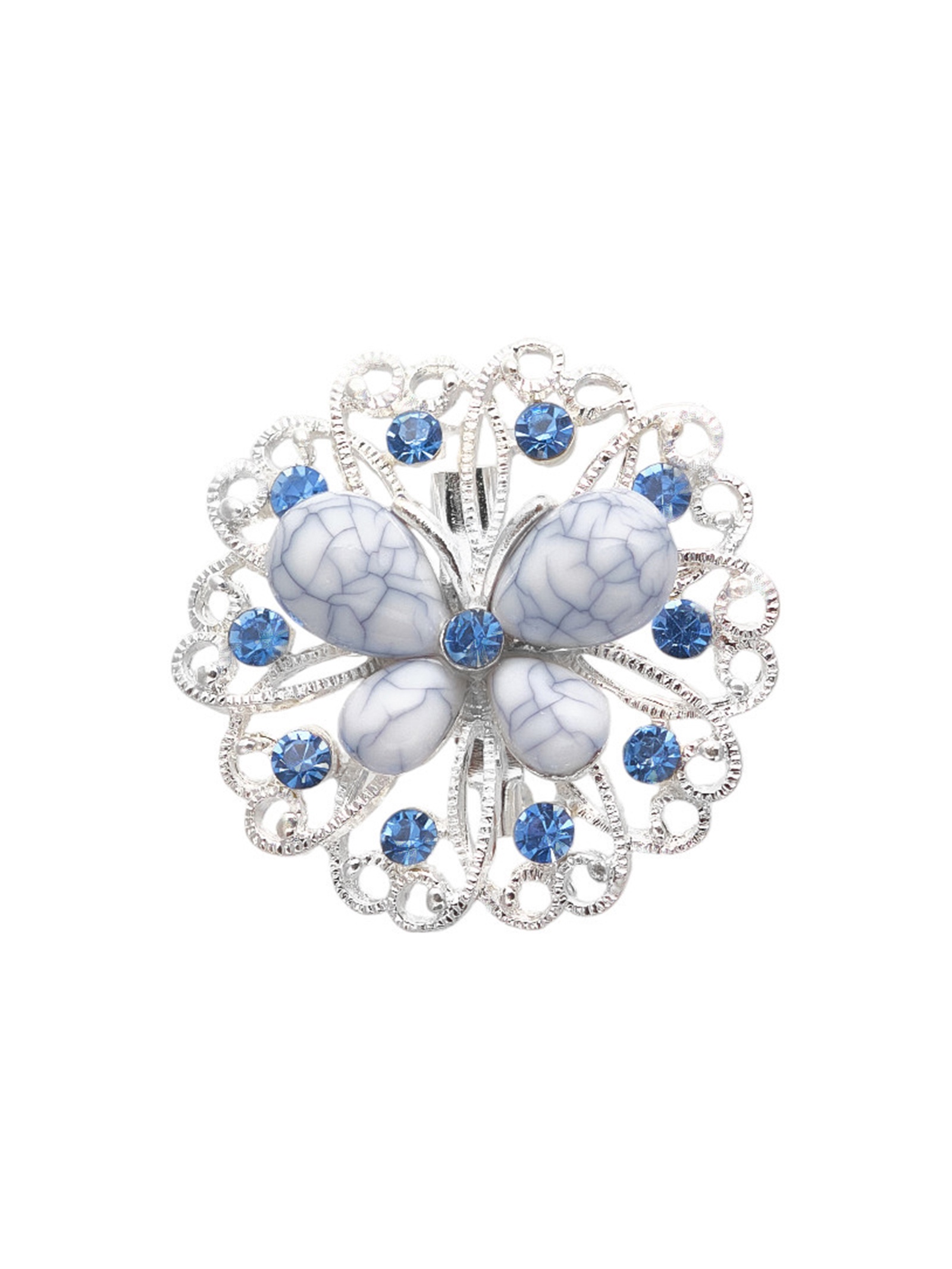 Брошь «бабочка» на цветке, цвет бело-голубой в серебре
