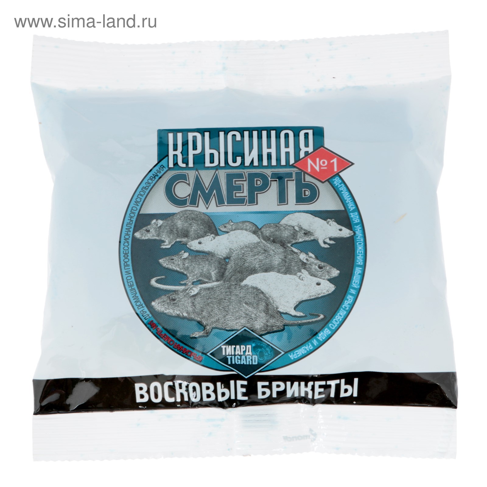 Восковые брикеты от грызунов "крысиная смерть № 1", 50 г. Высокоэффективное средство борьбы с мышевидными грызунами - достаточно однократного поедания. Обладает высокой привлекающей способностью для крыс и мышей. Активно даже в отношении грызунов, не чувствительных к другим ядам. Вызывает удушье мышей и крыс - гибель наступает, как правило, на открытых местах, а не в норах. Эффект мумификации избавит вас от неприятных запахов ! Средство предназначено для борьбы с крысами и мышами в жилых и нежилых помещениях различного назначения (пищевые, коммунально-бытовые, лечебные и детские учреждения, исключая места доступные детям. Запрещается применение средства в местах разделки и хранения пищевых продуктов, вблизи открытых водоемов, а также в местах, доступных для детей и домашних животных. Во время работ не курить и не принимать пищу. Исключить попадание приманки на кожу (использовать резиновые перчатки, специальные совочки, ложки). По окончании работы тщательно вымыть руки водой с мылом. Не использовать столовую посуду. Вес, г: 50 Область применения: От грызунов Вид средства: Восковые таблетки Температурное ограничение: Нет  развернуть описание ▼