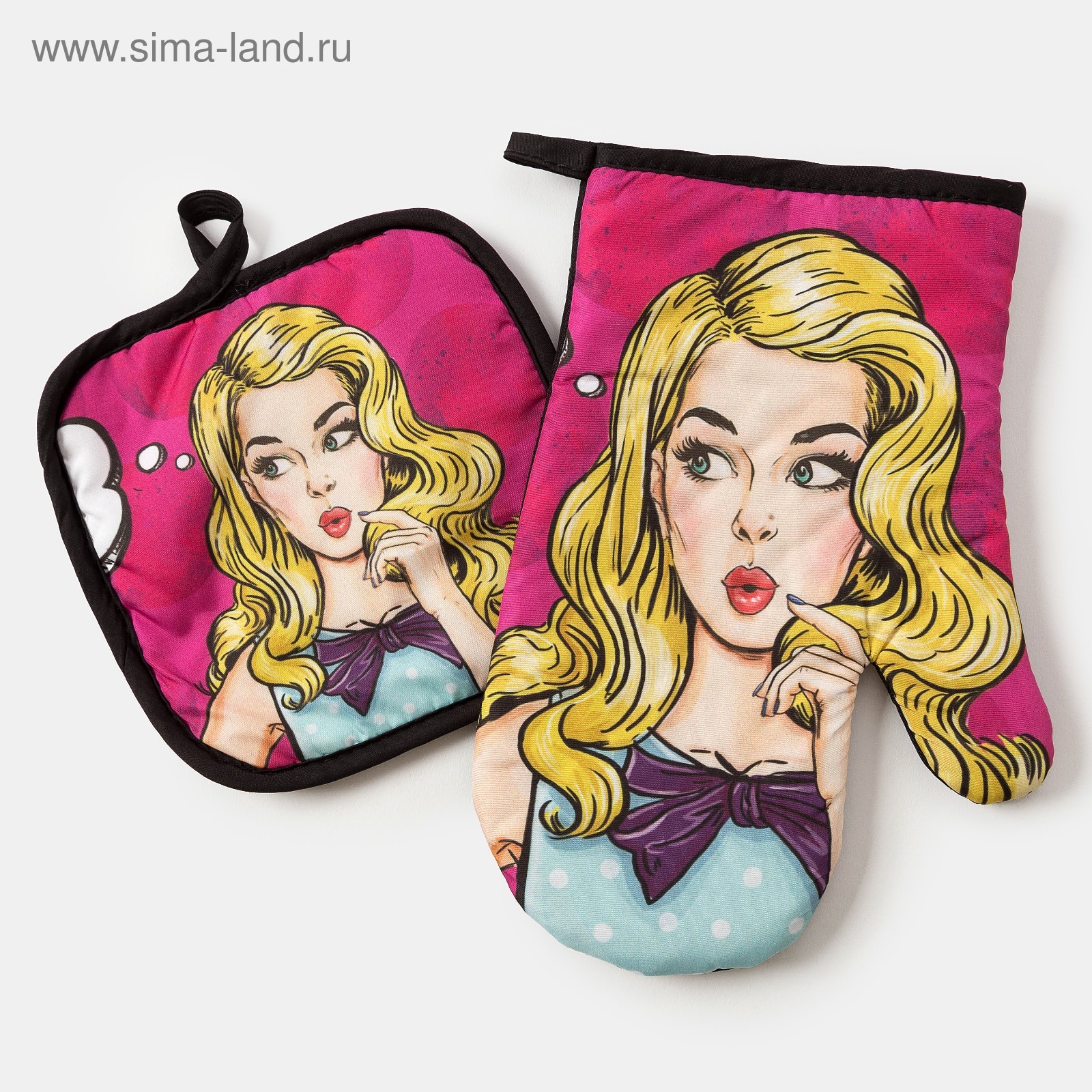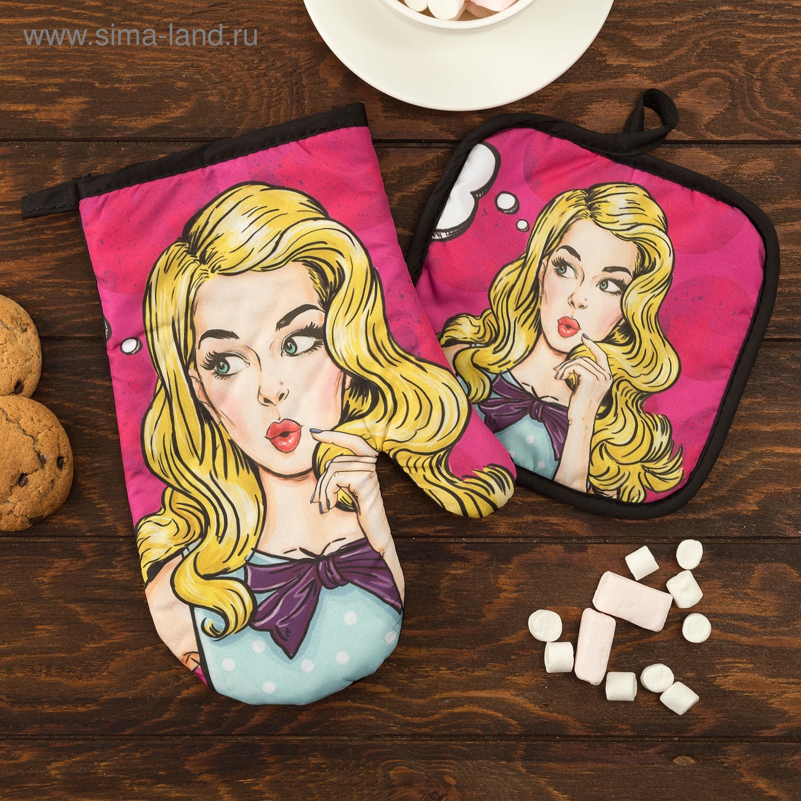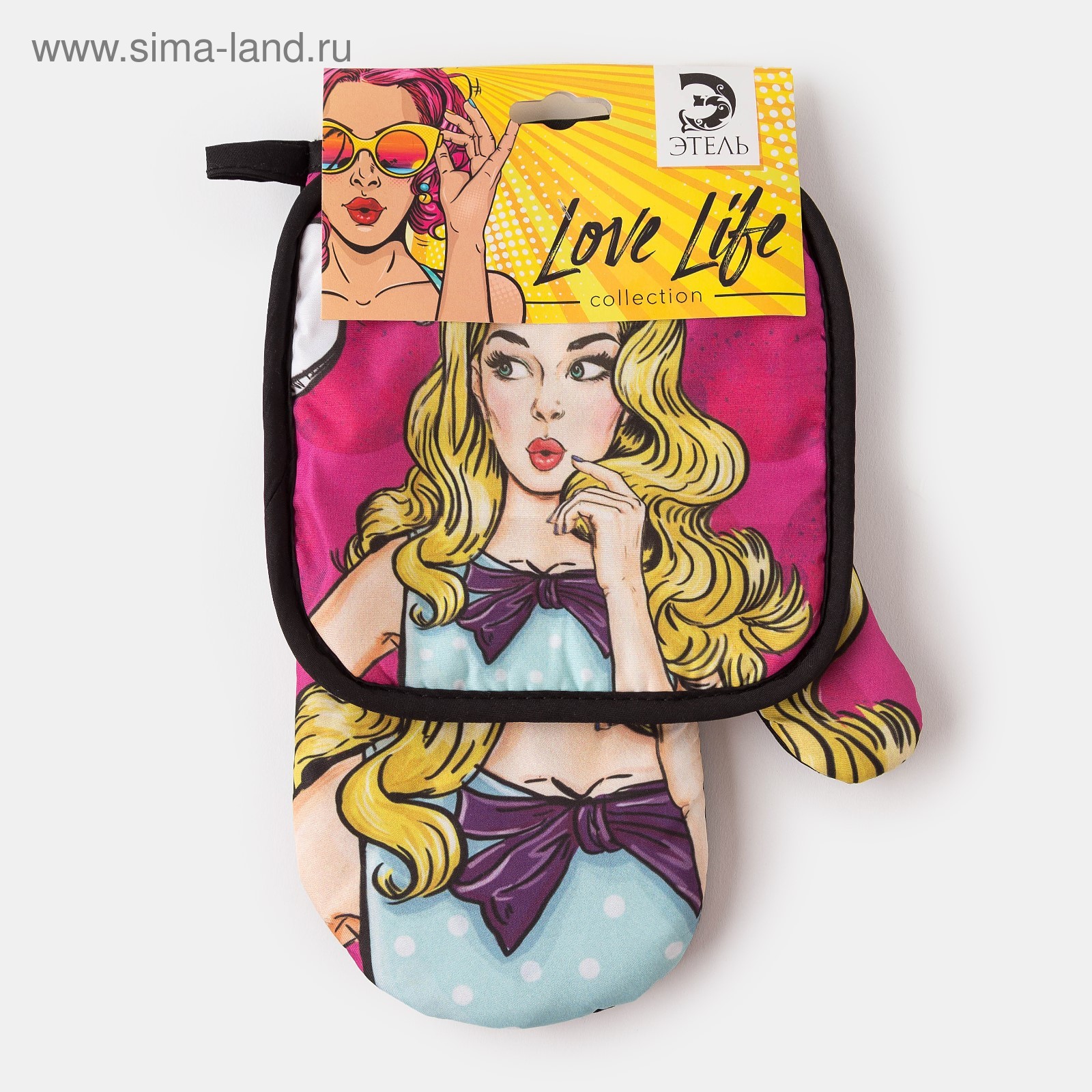 Кухонный набор 2 пр. этель Love Life "красотка", прихватка 17*17 см, варежка-прихватка. 26*16 см, 100% п/э