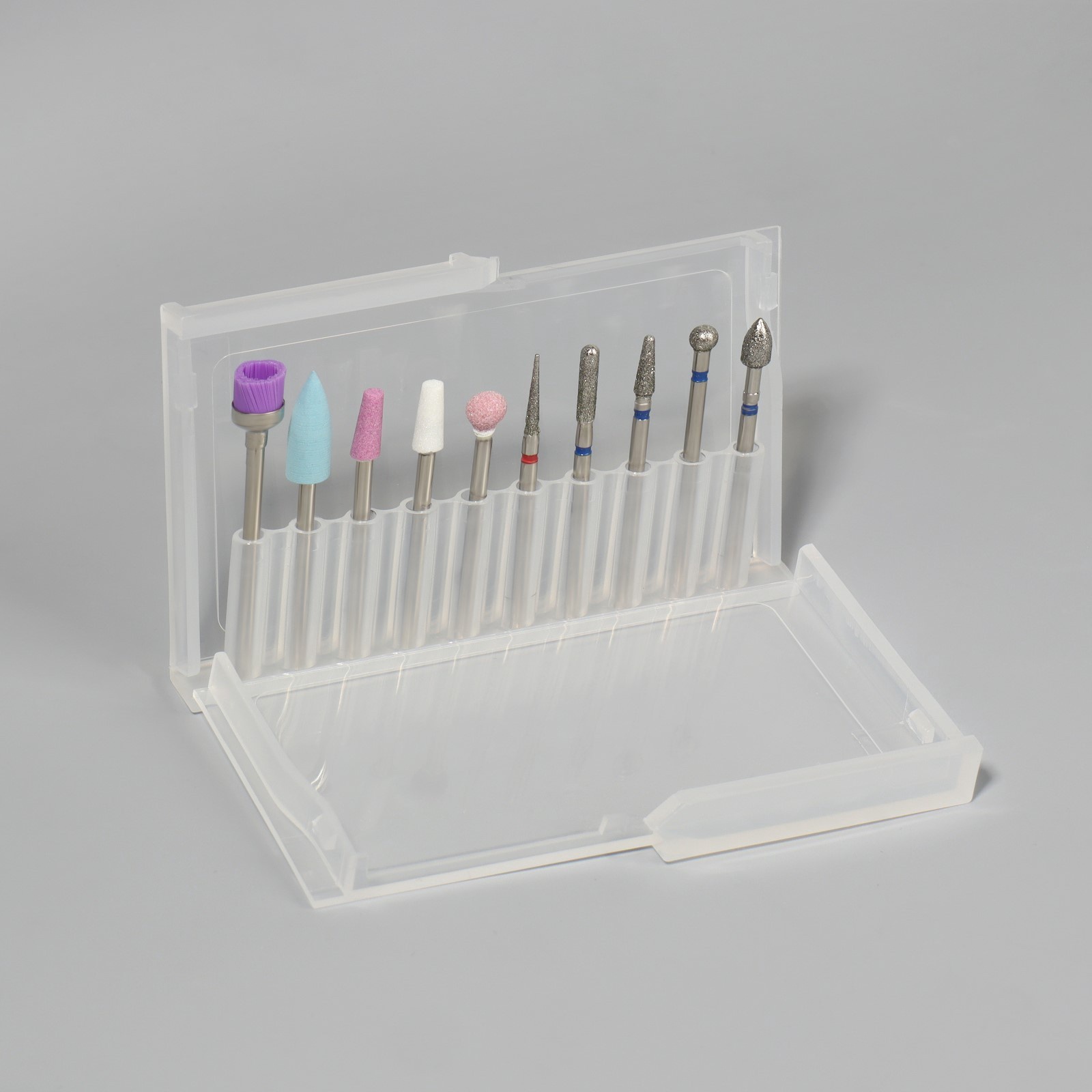 Фрезы для маникюра в пластиковом органайзере, 10 шт.