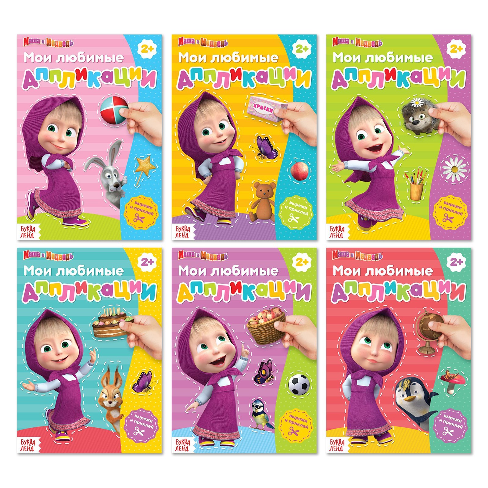 Книги - аппликации «маша и медведь», набор 6 шт. по 20 стр., а5. С набором книг «Мои любимые аппликации» малыш научится вырезать фигурки и наклеивать их на верные места на страничках. Книжки содержат крупные детали, которые удобно использовать в работе. Ребёнок с интересом изготовит все поделки, ведь внутри находятся изображения с героями любимого мультфильма «Маша и Медведь». Набор направлен на развитие памяти, мелкой моторики, воображения, внимательности. Яркие картинки положительно влияют на визуальное восприятие и расширение кругозора. Книжки-аппликации предназначены для детей от 3 лет, рекомендуется использовать под присмотром взрослых. Набор:Да|Для кого:Для девочки|Формат:А5|Возраст:От 2 лет|Количество страниц:20|Тематика:Мультфильмы|Тематика праздника:Универсальная тематика|Возраст:Детский|Материал для аппликации:Наклейки|Вид раскраски:Раскраски-аппликации|Возраст:Для детей|Язык издания:Русский|Тип обложки:Мягкий переплёт|Автор:Нет автора|Изображение:Мультфильмы|Страна:Россия  развернуть описание ▼