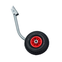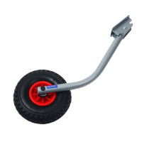 Транцевые колёса ТР трансформеры предназначены для лодок с надувным дном низкого давления (НДНД). Они имеют откидной механизм, который позволяет поднимать колёса вверх или опускать вниз. Стойка крепится на кронштейны к жёсткому транцу лодки. При движении по воде стойка поднимается вверх на 180 градусов. Высота от оси колеса до края крепления составляет 56 см.