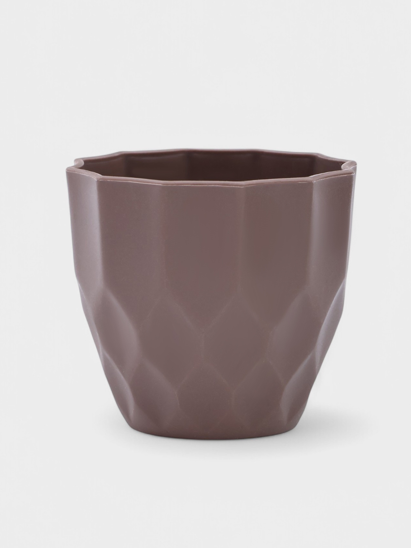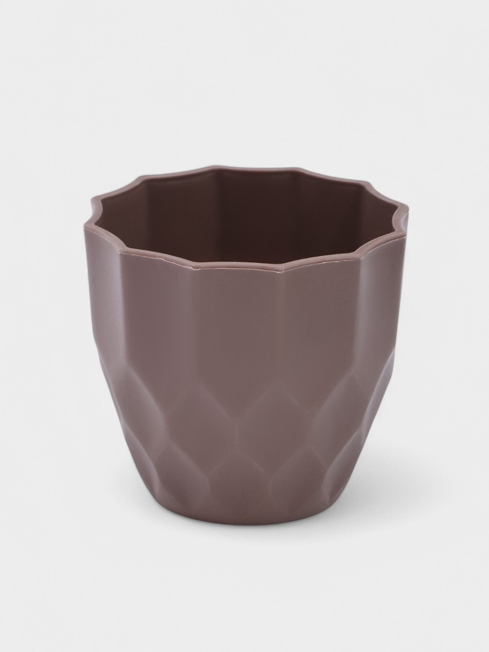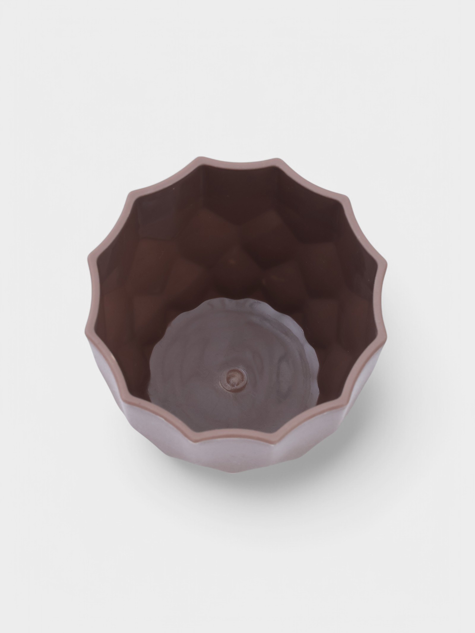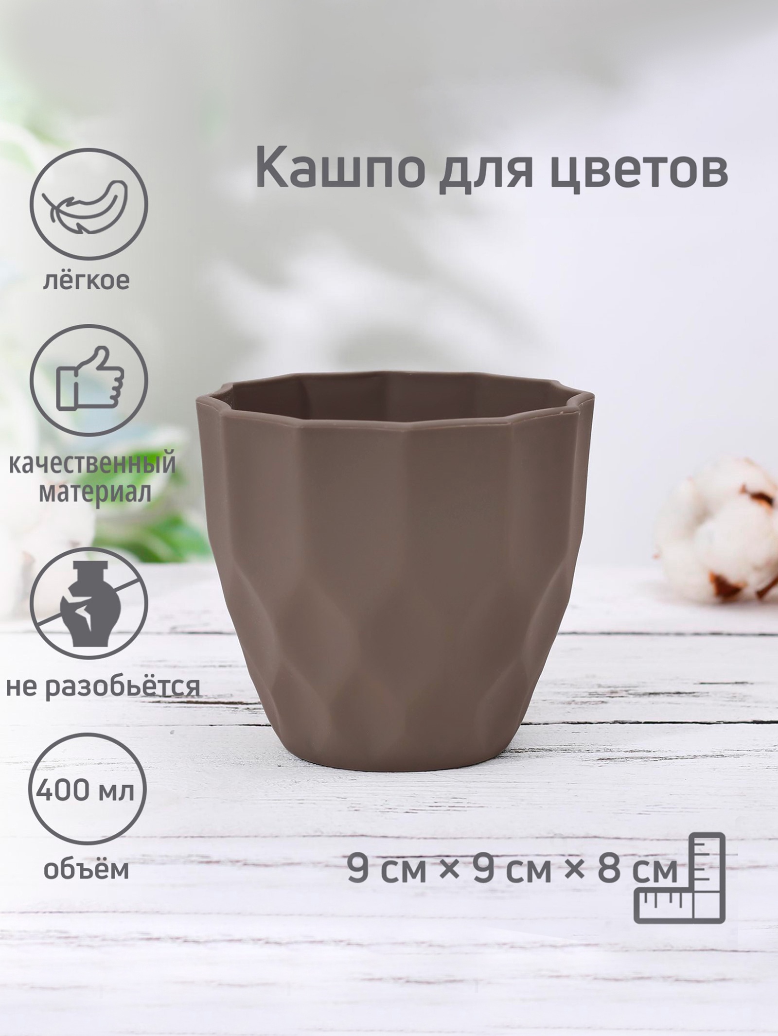 Кашпо для цветов «излом», пластик, 400 мл, коричневое. Любой, даже самый современный и продуманный интерьер будет не завершённым без растений. Они не только очищают воздух и насыщают его кислородом, но и заметно украшают окружающее пространство. Такому полезному «члену семьи» просто необходимо красивое и функциональное кашпо, оригинальный горшок или необычная ваза! Мы предлагаем - кашпо для цветов «Лофт»! Оптимальный выбор материала — пластмасса! Почему мы так считаемx Малый вес. С лёгкостью переносите горшки и кашпо с места на место, ставьте их на столики или полки, подвешивайте под потолок, не беспокоясь о нагрузке.Простота ухода. Пластиковые изделия не нуждаются в специальных условиях хранения. Их легко чистить — достаточно просто сполоснуть тёплой водой.Никаких царапин. Пластиковые кашпо не царапают и не загрязняют поверхности, на которых стоят.Пластик дольше хранит влагу, а значит — растение реже нуждается в поливе.Пластмасса не пропускает воздух — корневой системе растения не грозят резкие перепады температур.Огромный выбор форм, декора и расцветок — вы без труда подберёте что-то, что идеально впишется в уже существующий интерьер.Соблюдая нехитрые правила ухода, вы можете заметно продлить срок службы горшков, вазонов и кашпо из пластика: всегда учитывайте размер кроны и корневой системы растения (при разрастании большое растение способно повредить маленький горшок);берегите изделие от воздействия прямых солнечных лучей, чтобы кашпо и горшки не выцветали;держите кашпо и горшки из пластика подальше от нагревающихся поверхностей.Создавайте прекрасные цветочные композиции, выращивайте рассаду или необычные растения, а низкие цены позволят вам не ограничивать себя в выборе. Цвет:Коричневый|Форма:Фигурная|Диаметр, см:9|Высота, см:8|Объём, л:0.4|Вид установки:Настольное|Рисунок:Нет|Материал:Пластик|Можно оставлять зимой на улице:Нет|Поддон в комплекте:Нет|Особенности:Без особенностей|Тип полива:Без системы полива|Страна:Китай  развернуть описание ▼