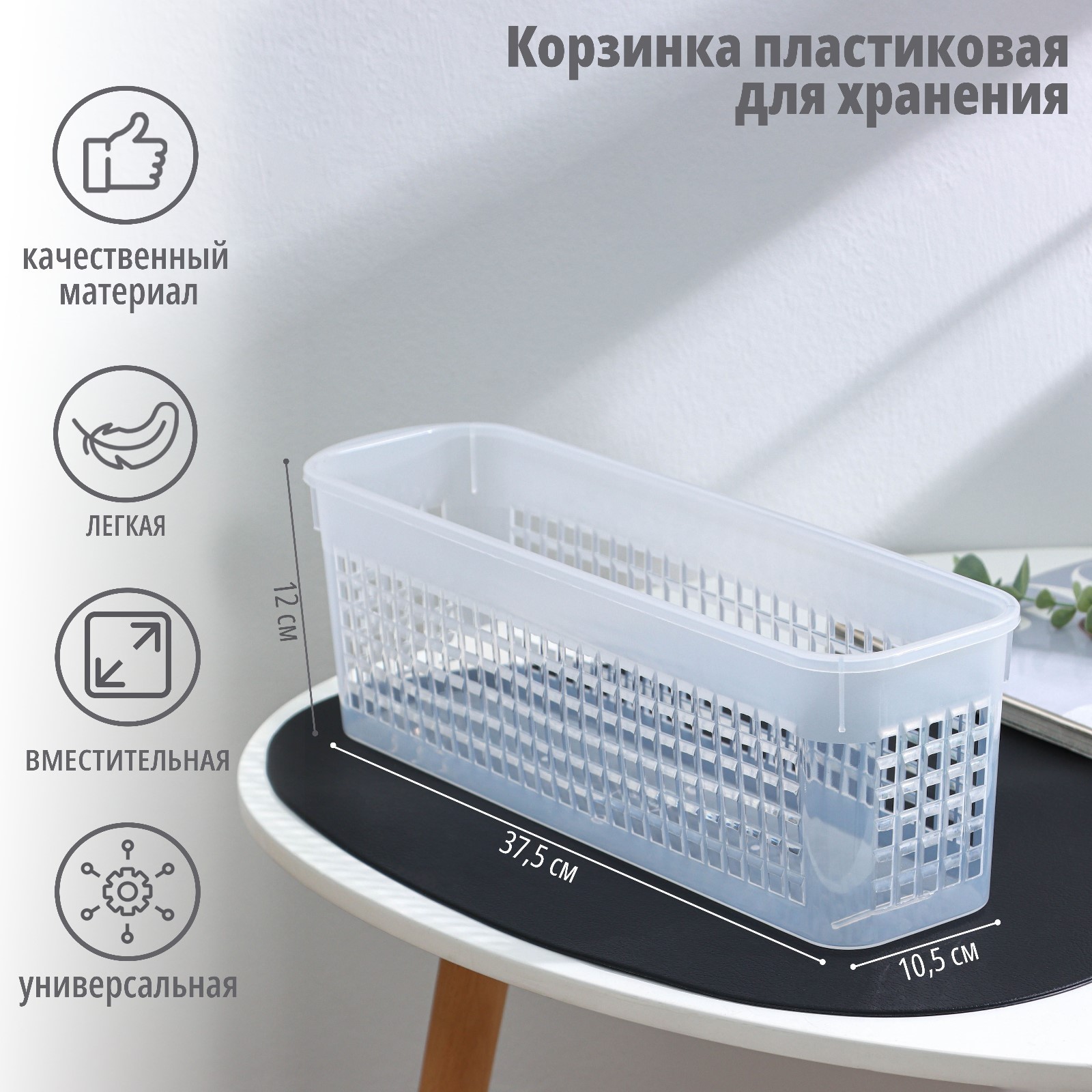Корзина для хранения доляна, 37,5x10,5x12 см, цвет прозрачный
