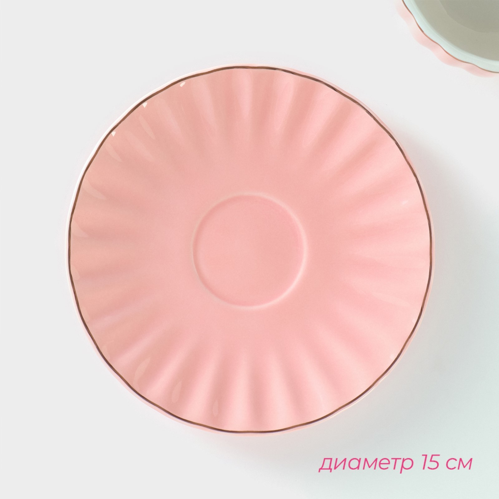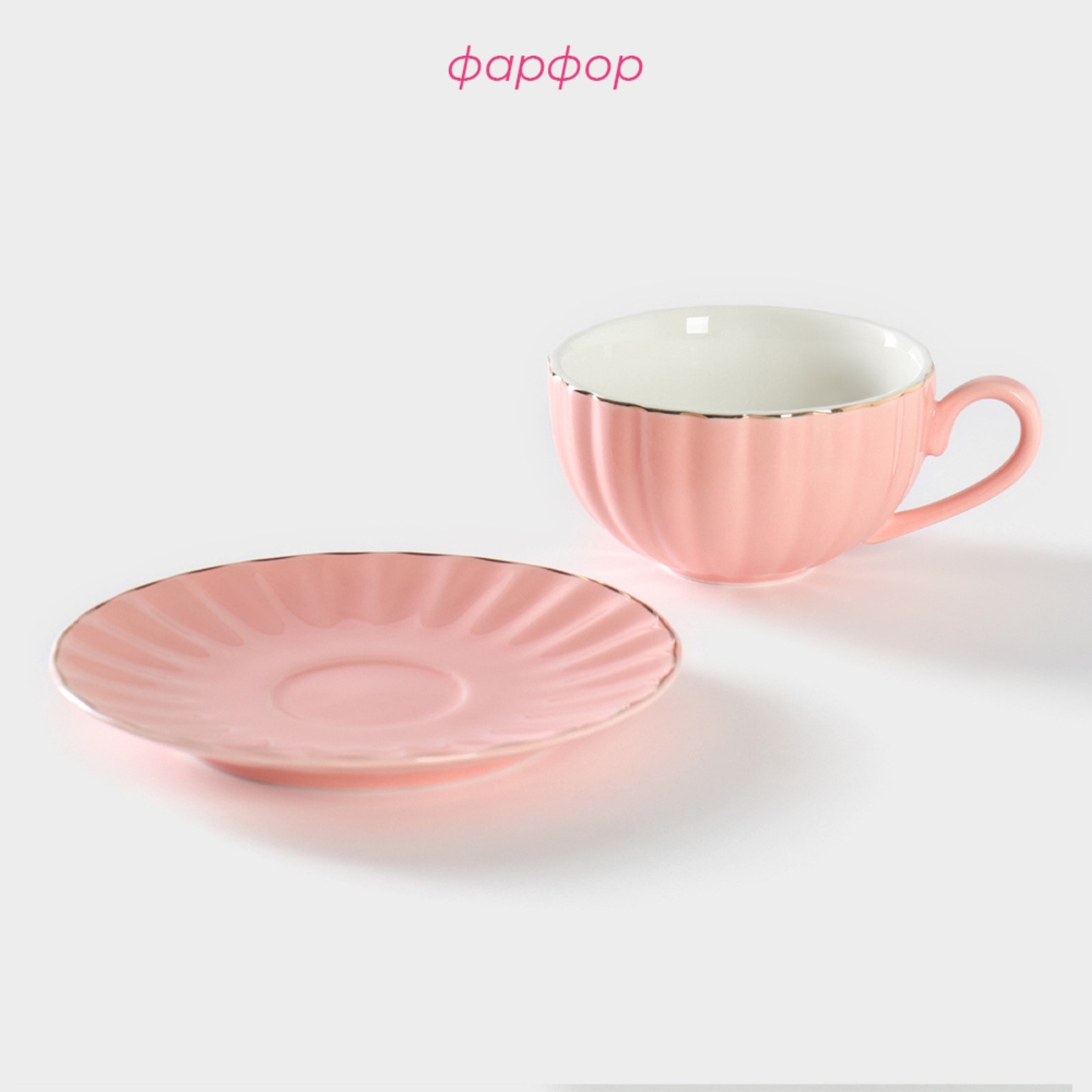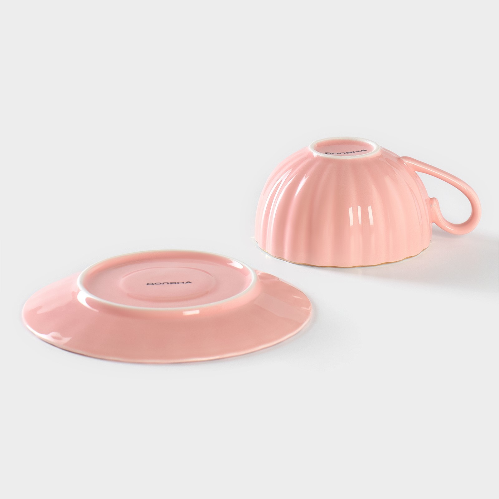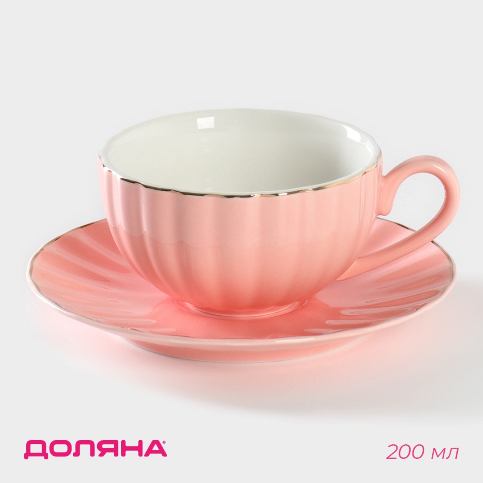 Чайная пара фарфоровая доляна «вивьен», 2 предмета: чашка 200 мл, блюдце D=15 см, цвет розовый