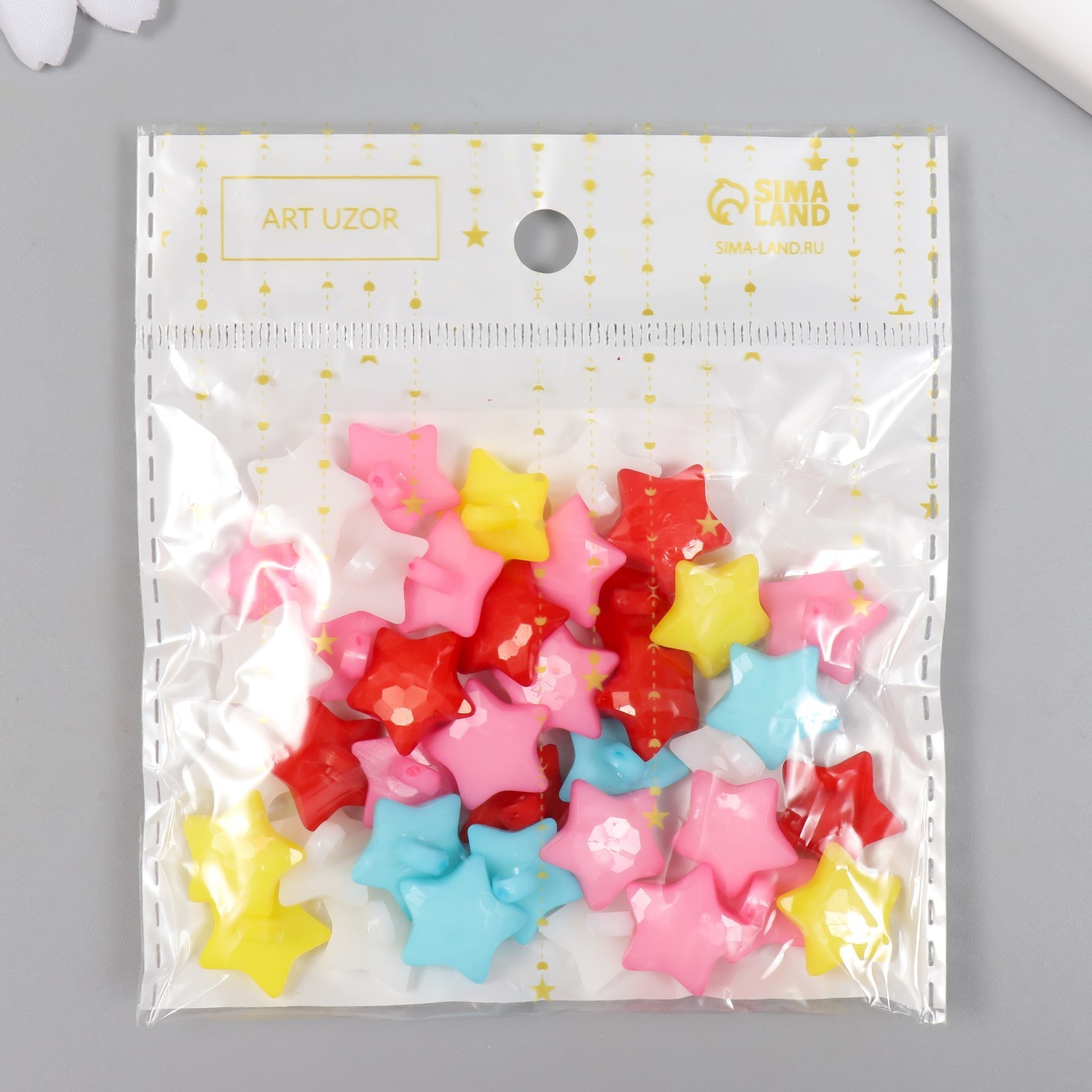Пуговицы на ножке для творчества набор 40 шт. «арт узор. цветные звёздочки», пластик, 1.5 1.5 см