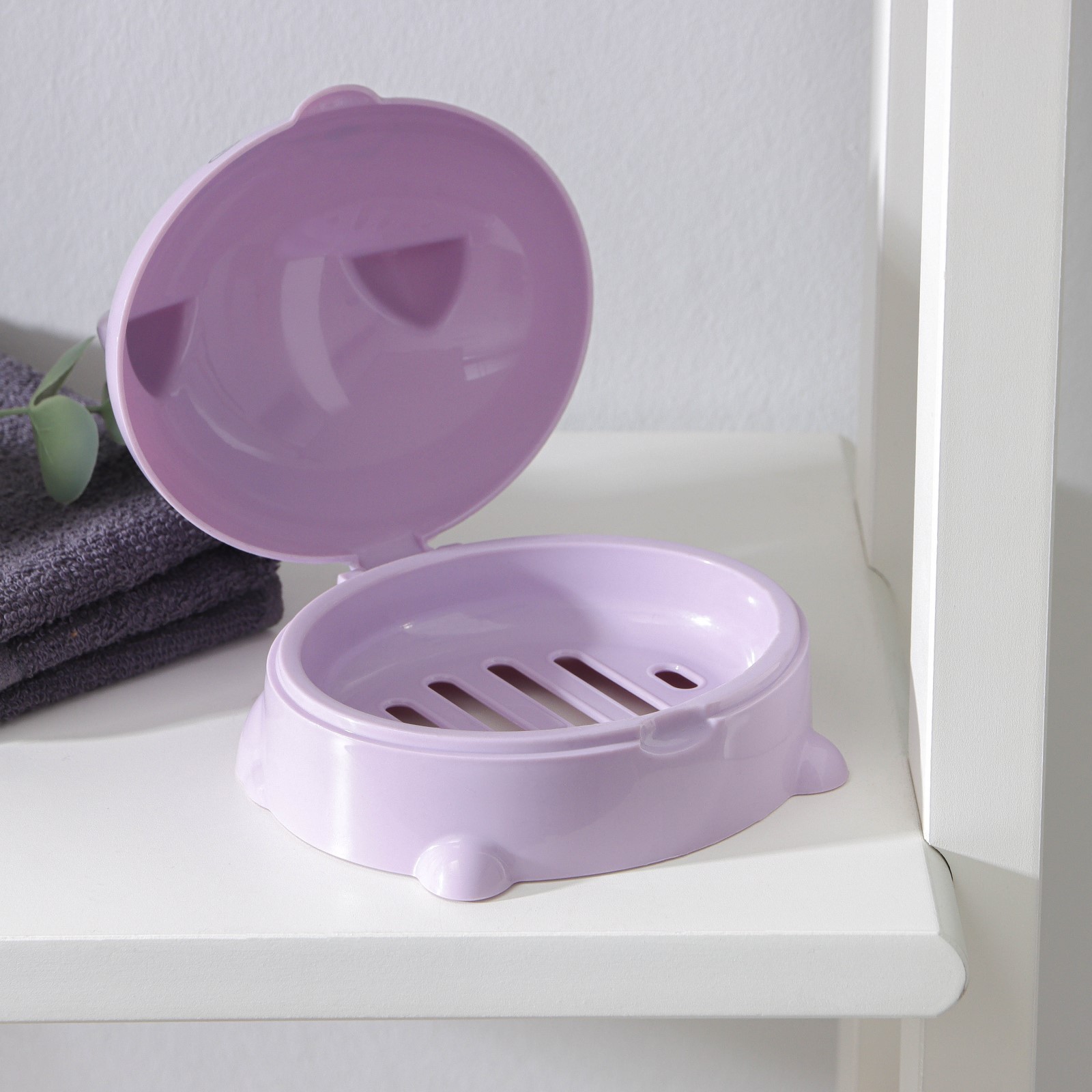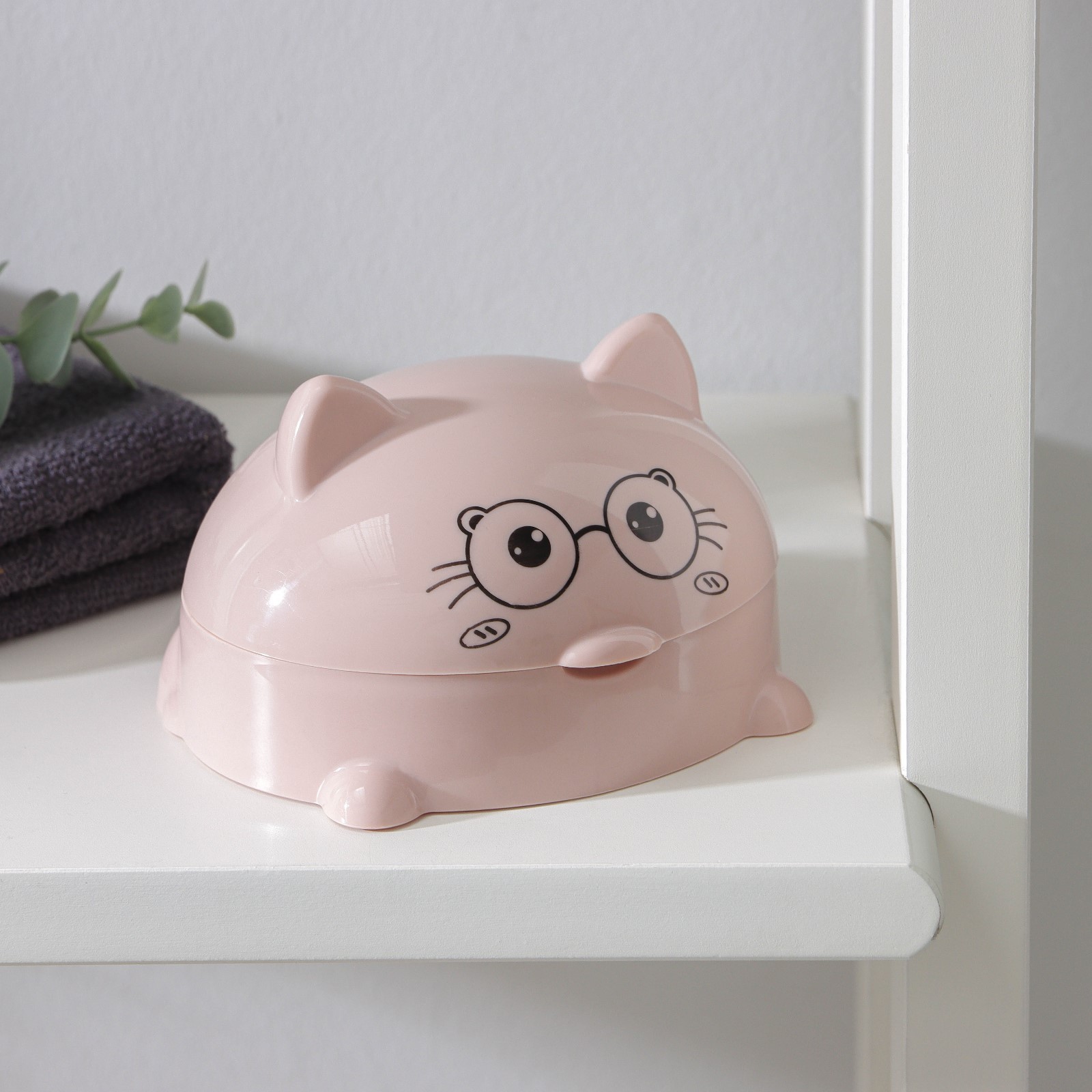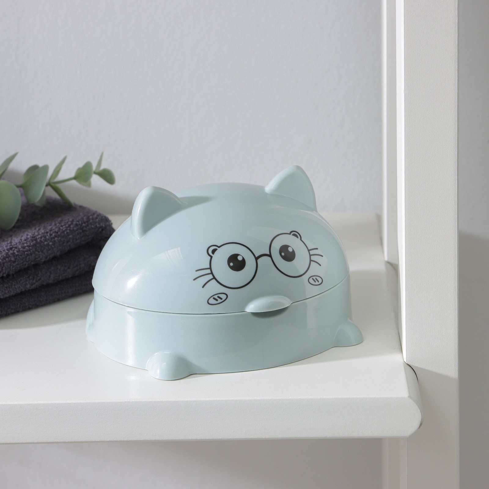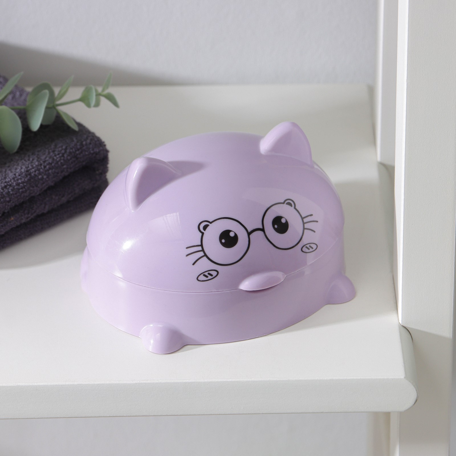 Мыльница с крышкой «котейка», пластик, 11,5x11x8 см, цвет микс