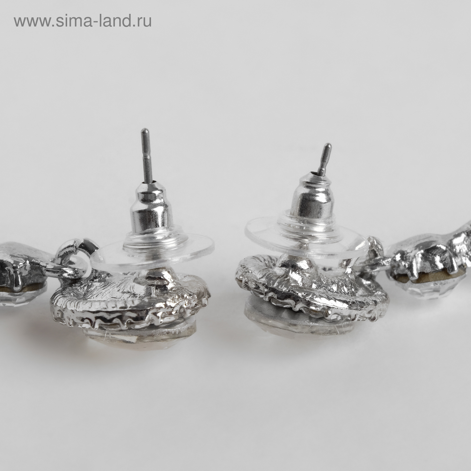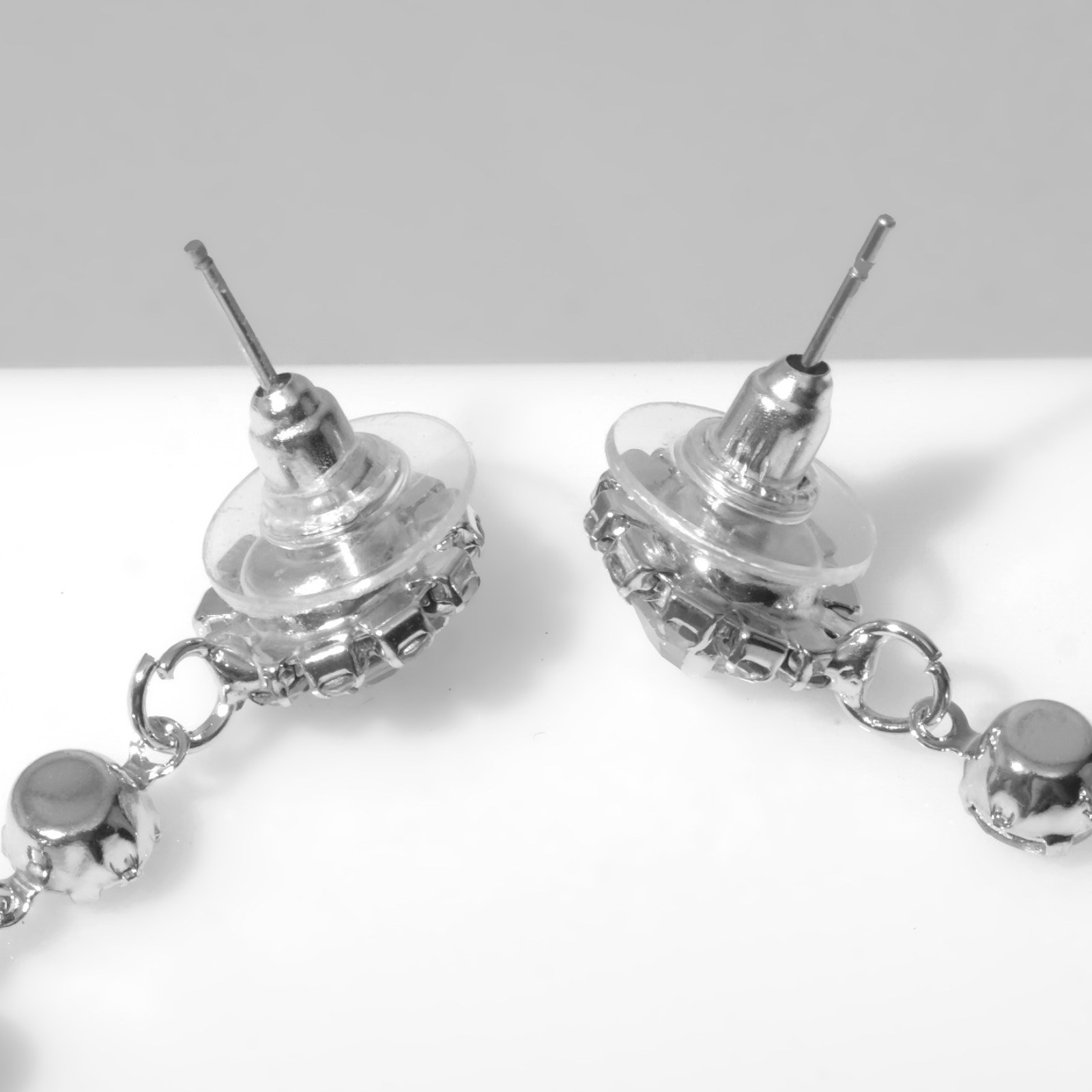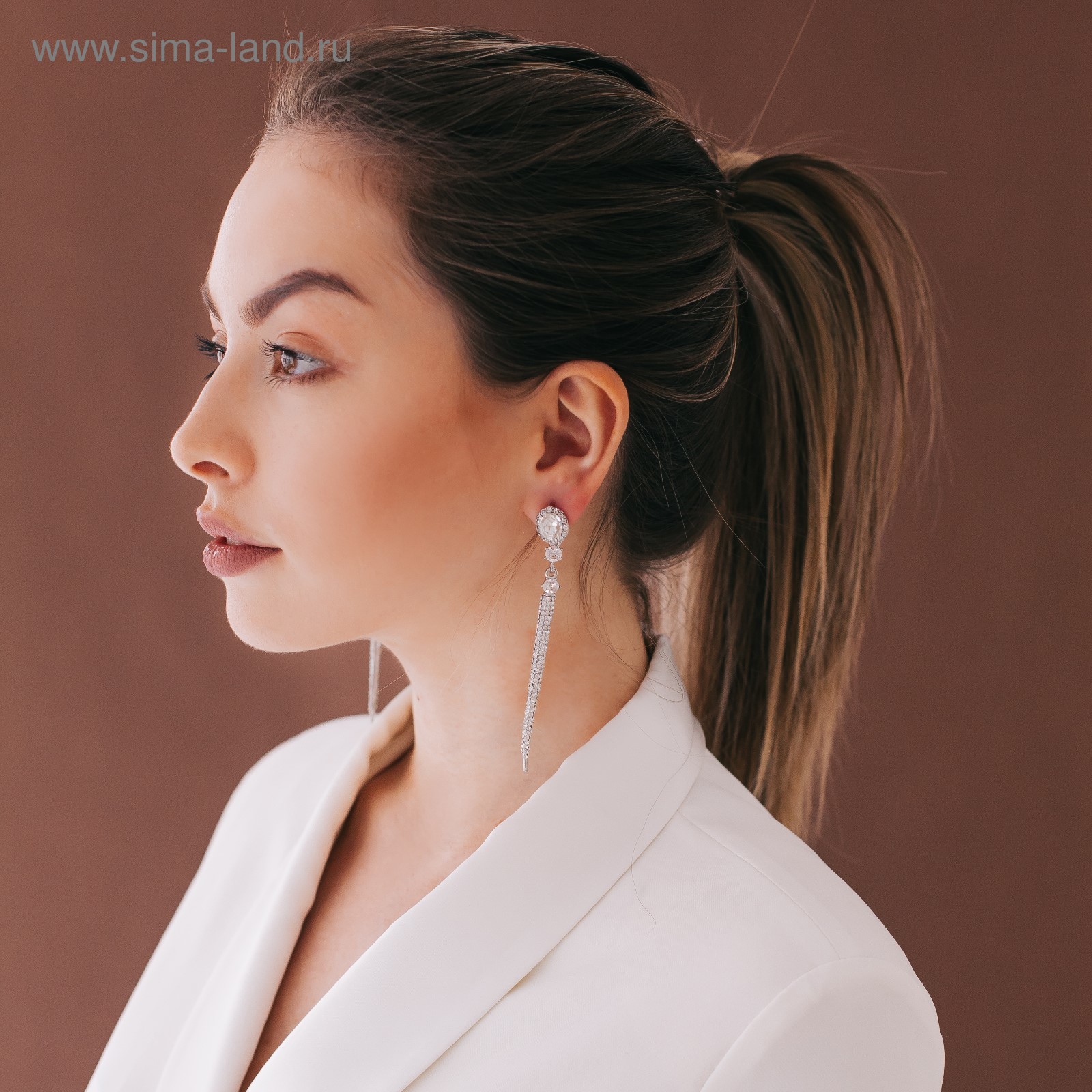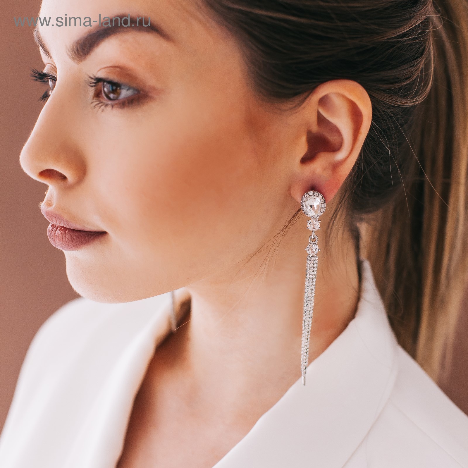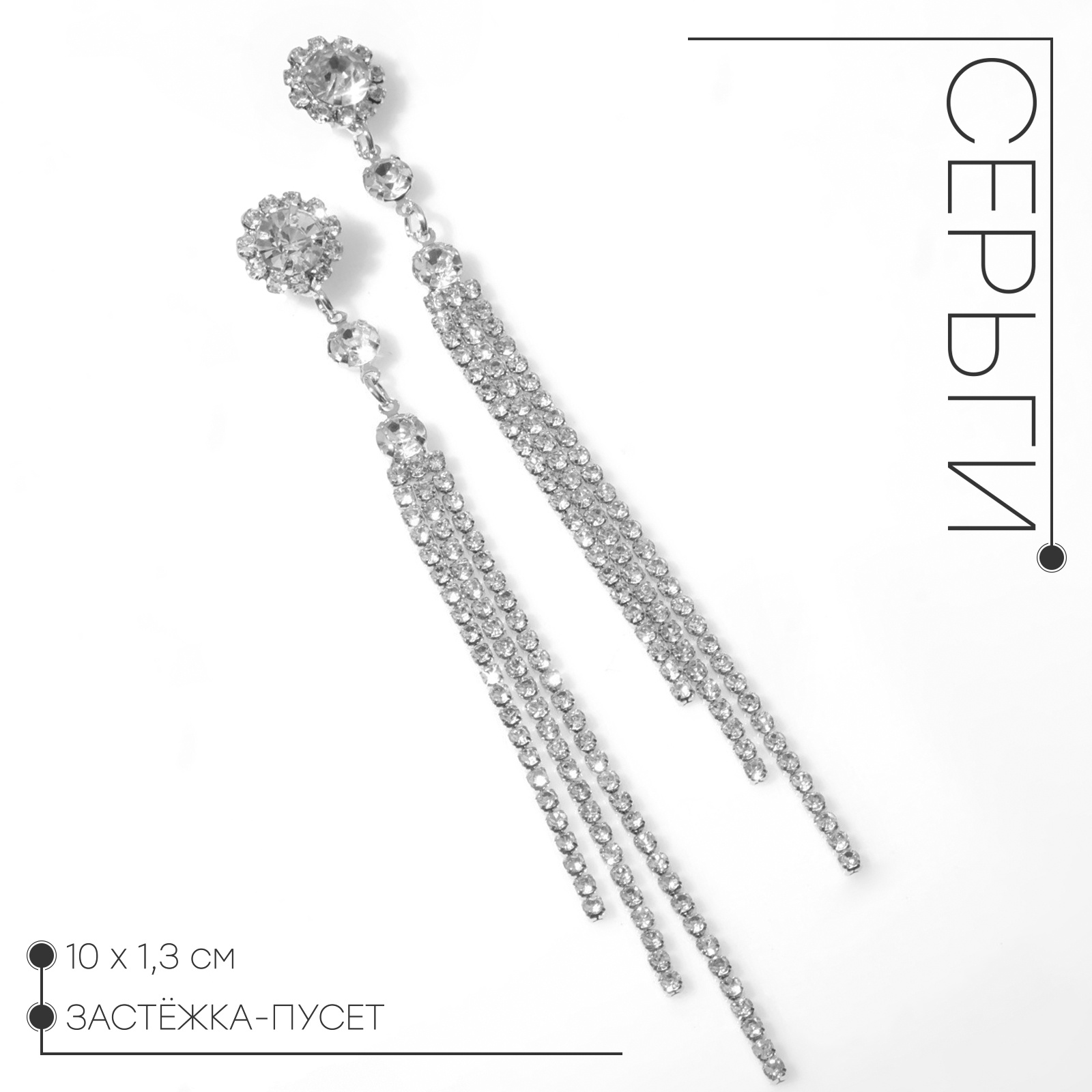 Серьги висячие со стразами «свидание» клинок, белые в серебре,10 см