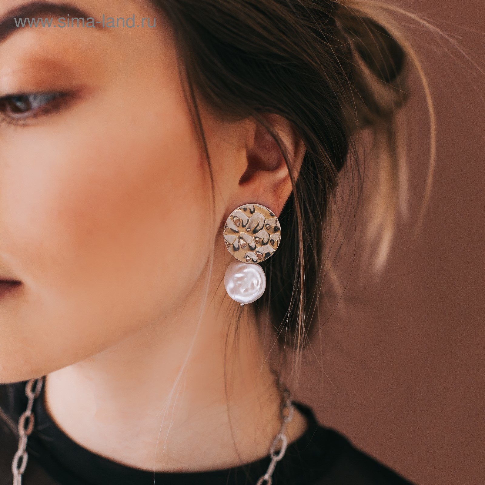 Серьги с жемчугом «нефаз», цвет белый в серебре
