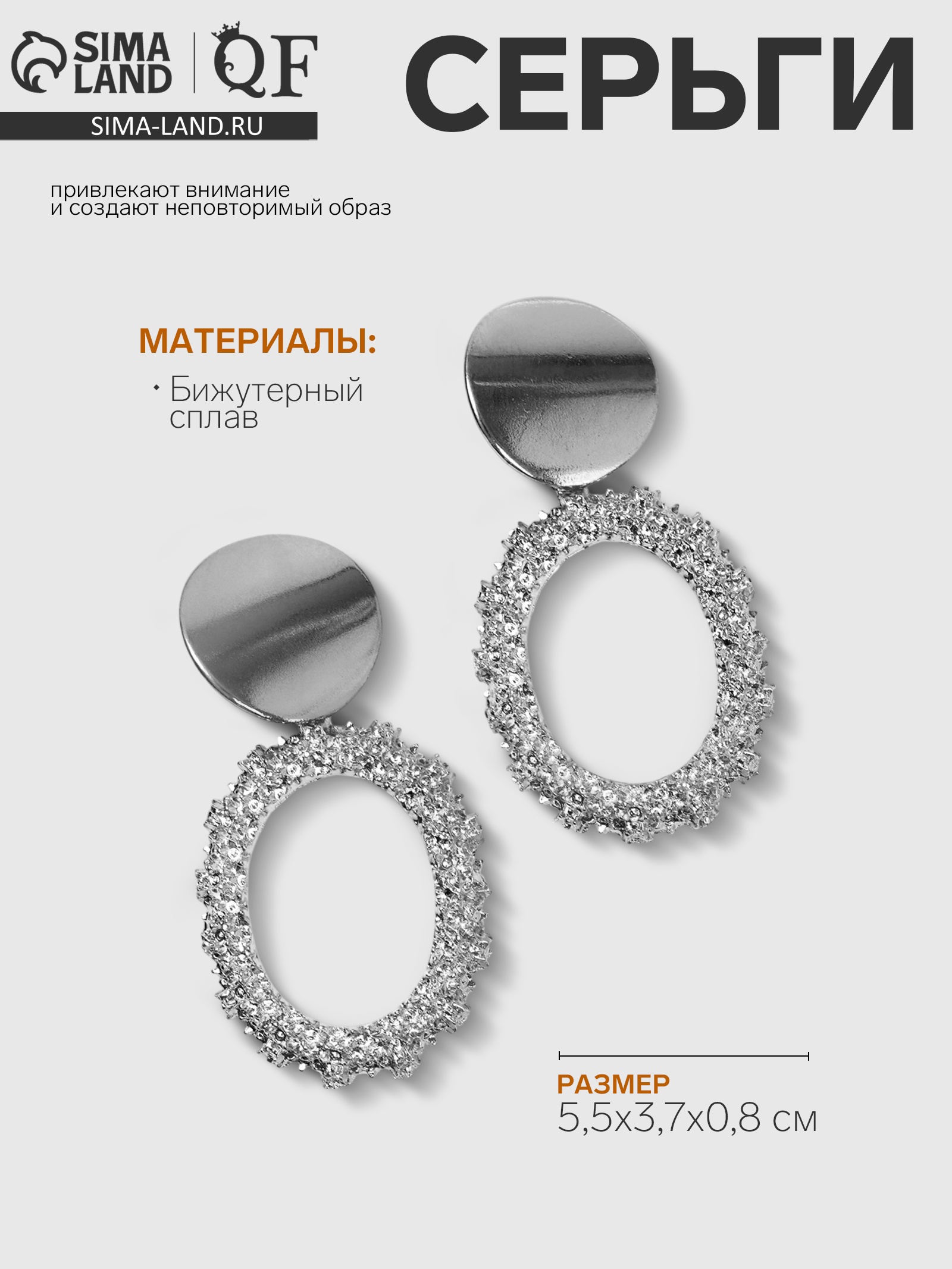 Серьги металл «эврика» овальные, цвет серебро