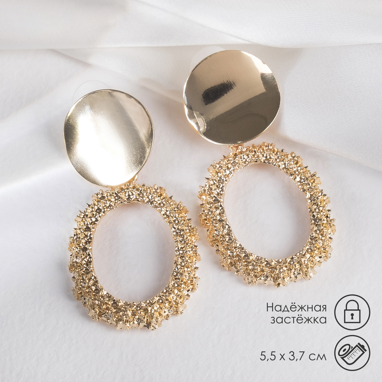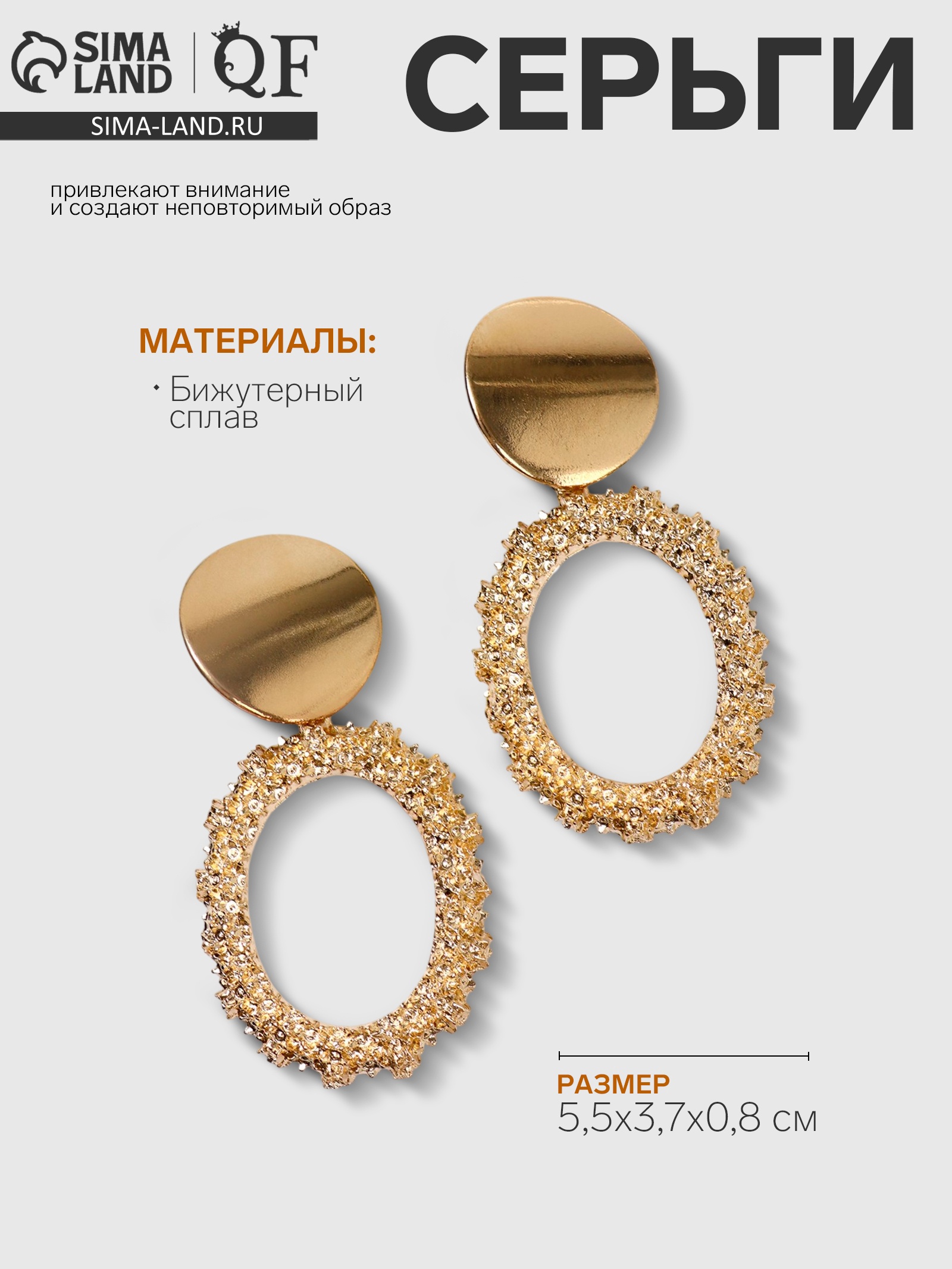 Серьги металл «эврика» овальные, цвет золото