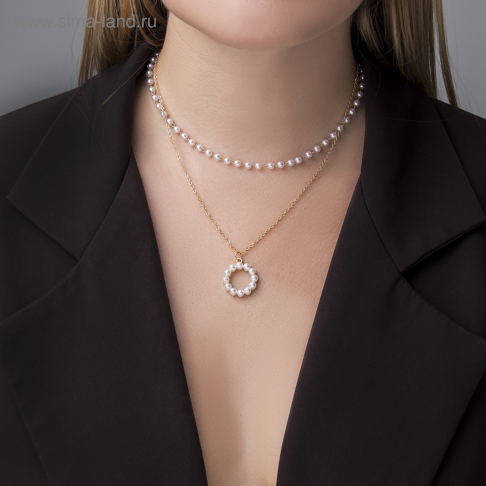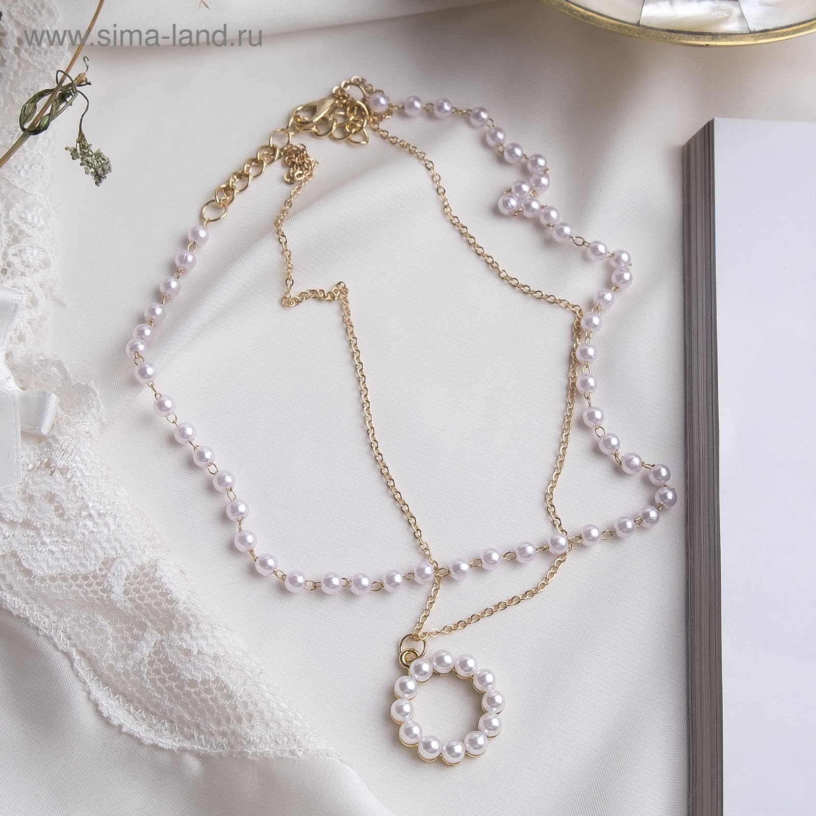 Кулон на цепочке с жемчугом «цепь», олимпия, круг, белый в золоте, 40 см