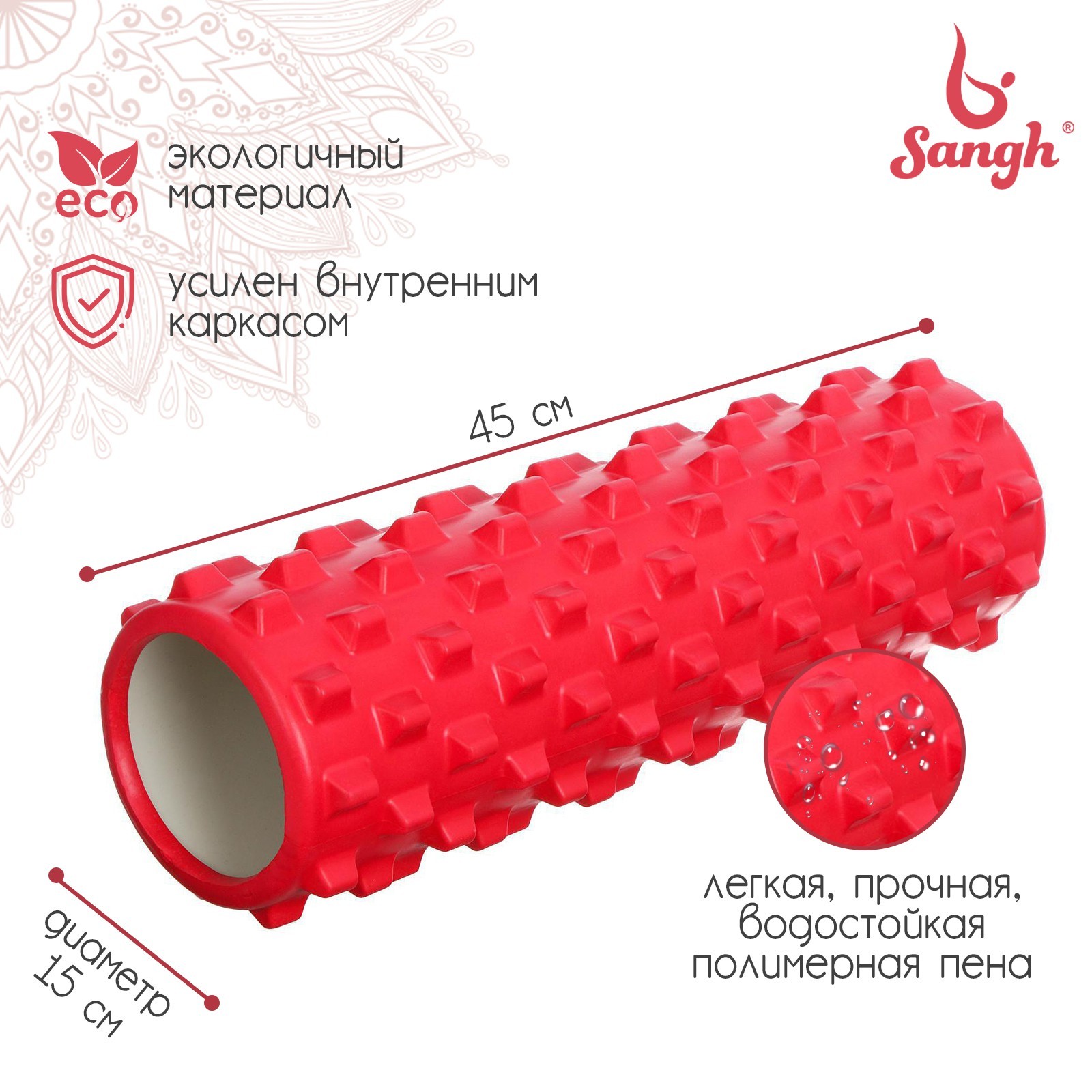 Ролик массажный sangh, 45х15, цвет красный. Роллер для йоги — спортивный инвентарь, который помогает настроить мышцы на работу перед тренировкой, удерживать правильное положение тела во время неё и ослабить боль в мышцах и суставах после. Параллельно способствует восстановлению всего организма. Ролик позволяет практиковать миофасциальное расслабление (МФР). Использование изделия становится доступной альтернативой массажной терапии. Цвет: Красный Вид: Ролики  развернуть описание ▼