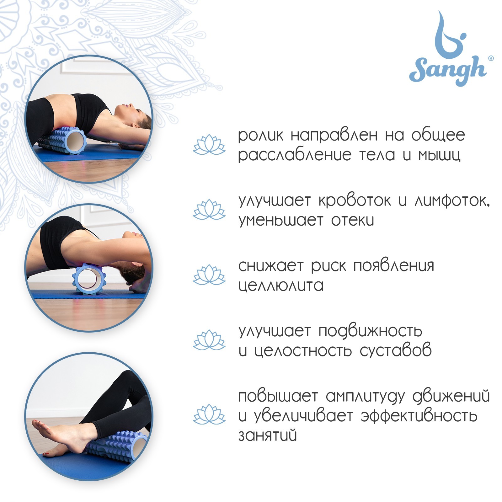 Ролик массажный Sangh, 33х10 см, цвет синий