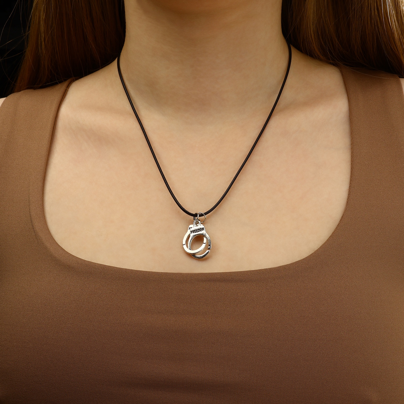 Кулон на шнурке «наручники», цвет чернёное серебро на чёрном шнурке, 42 см.