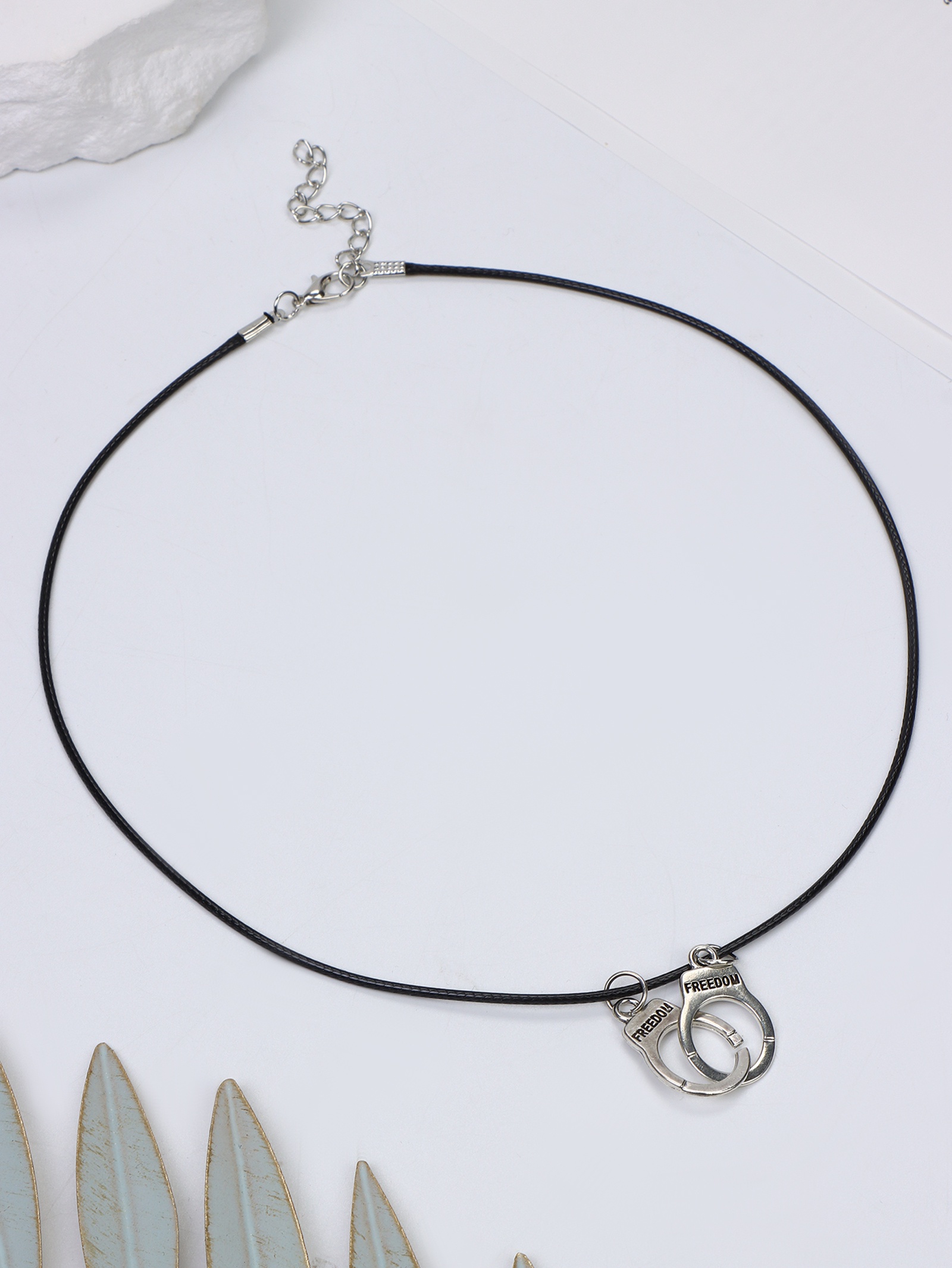 Кулон на шнурке «наручники», цвет чернёное серебро на чёрном шнурке, 42 см