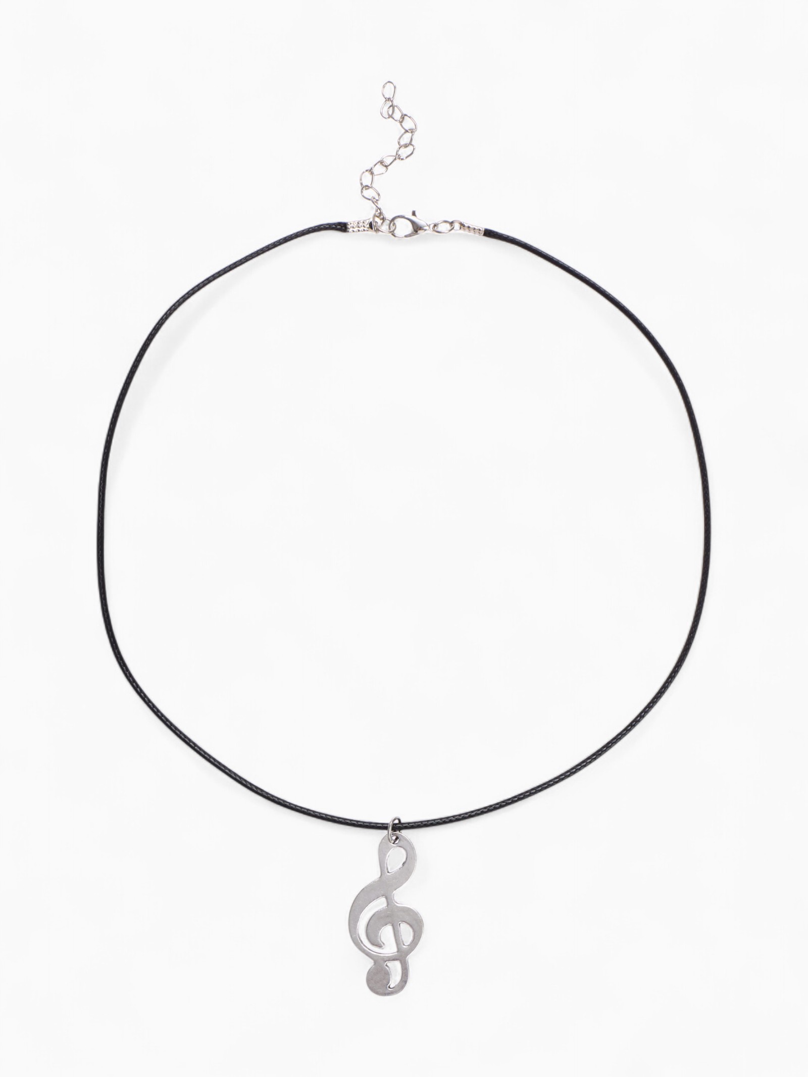 Кулон на шнурке «скрипичный ключ», цвет серебро на чёрном шнурке, 42 см