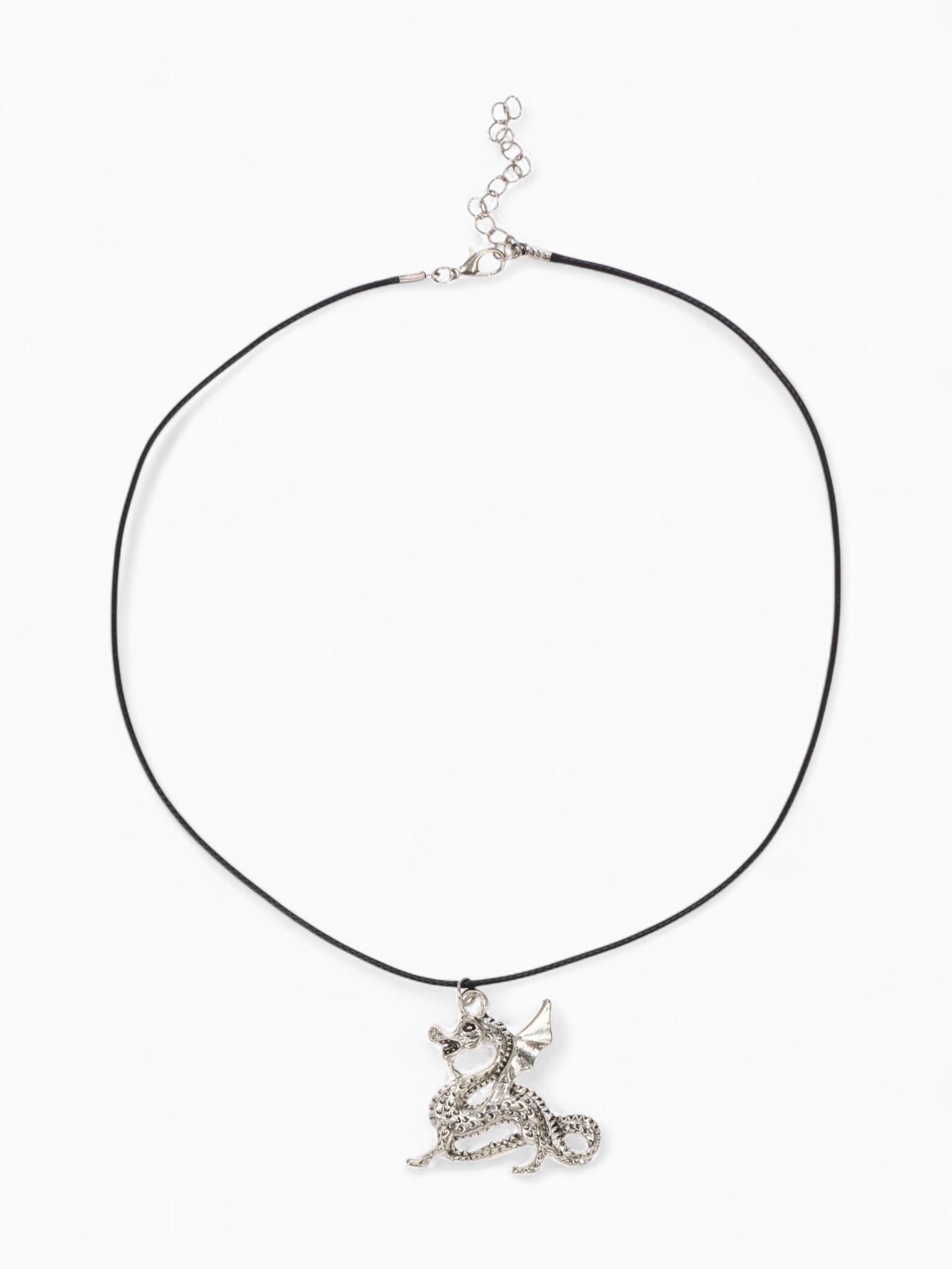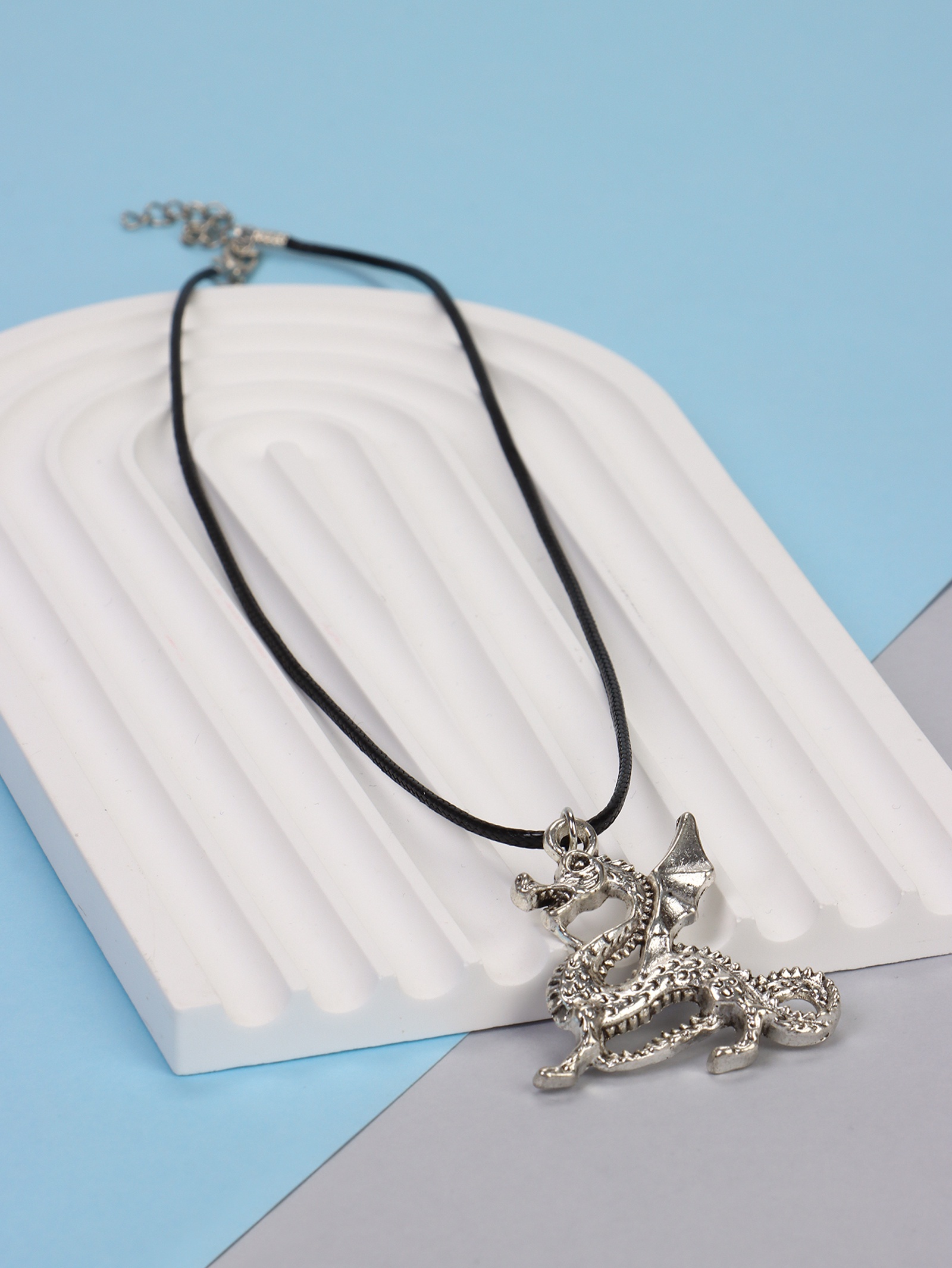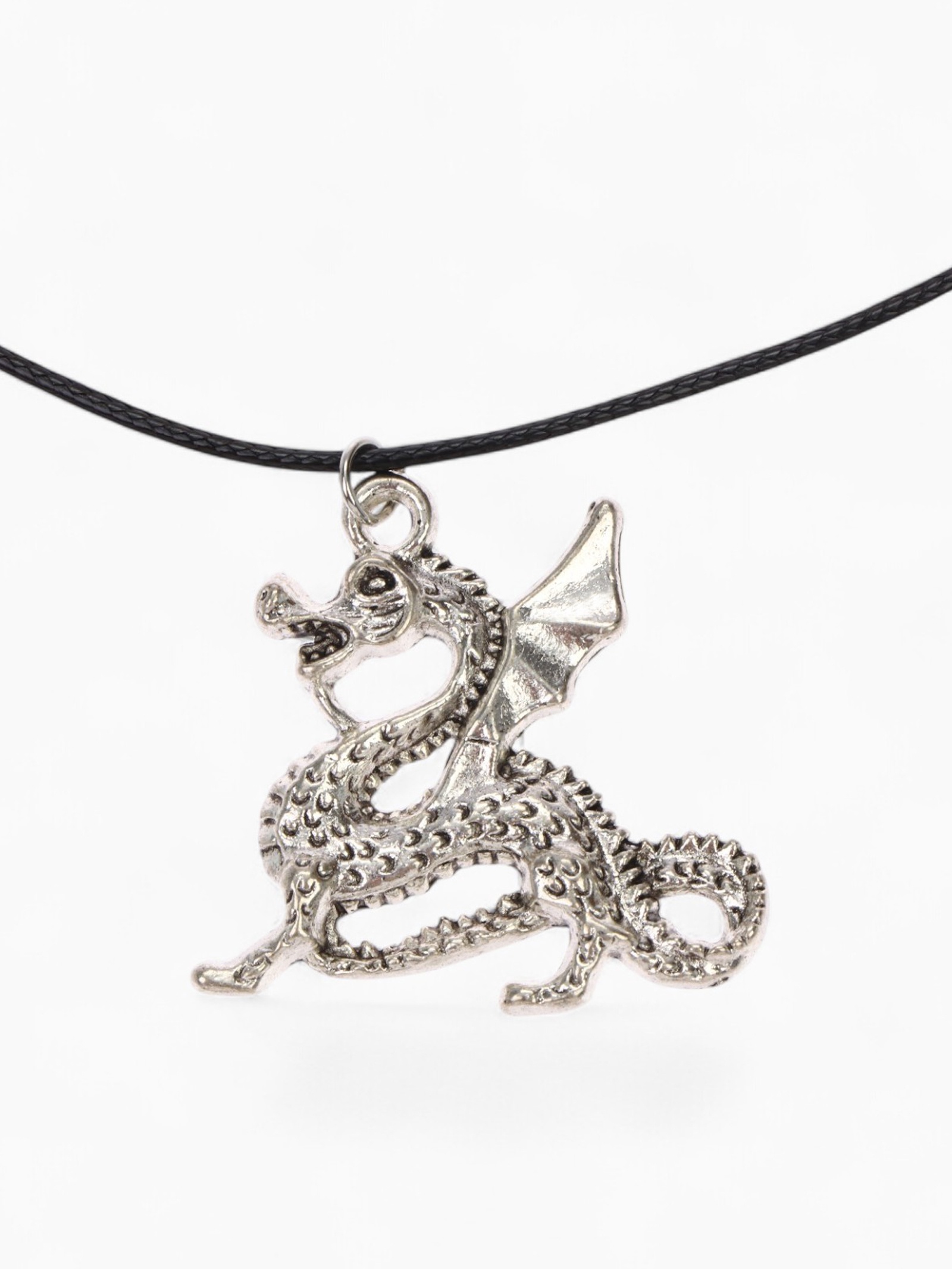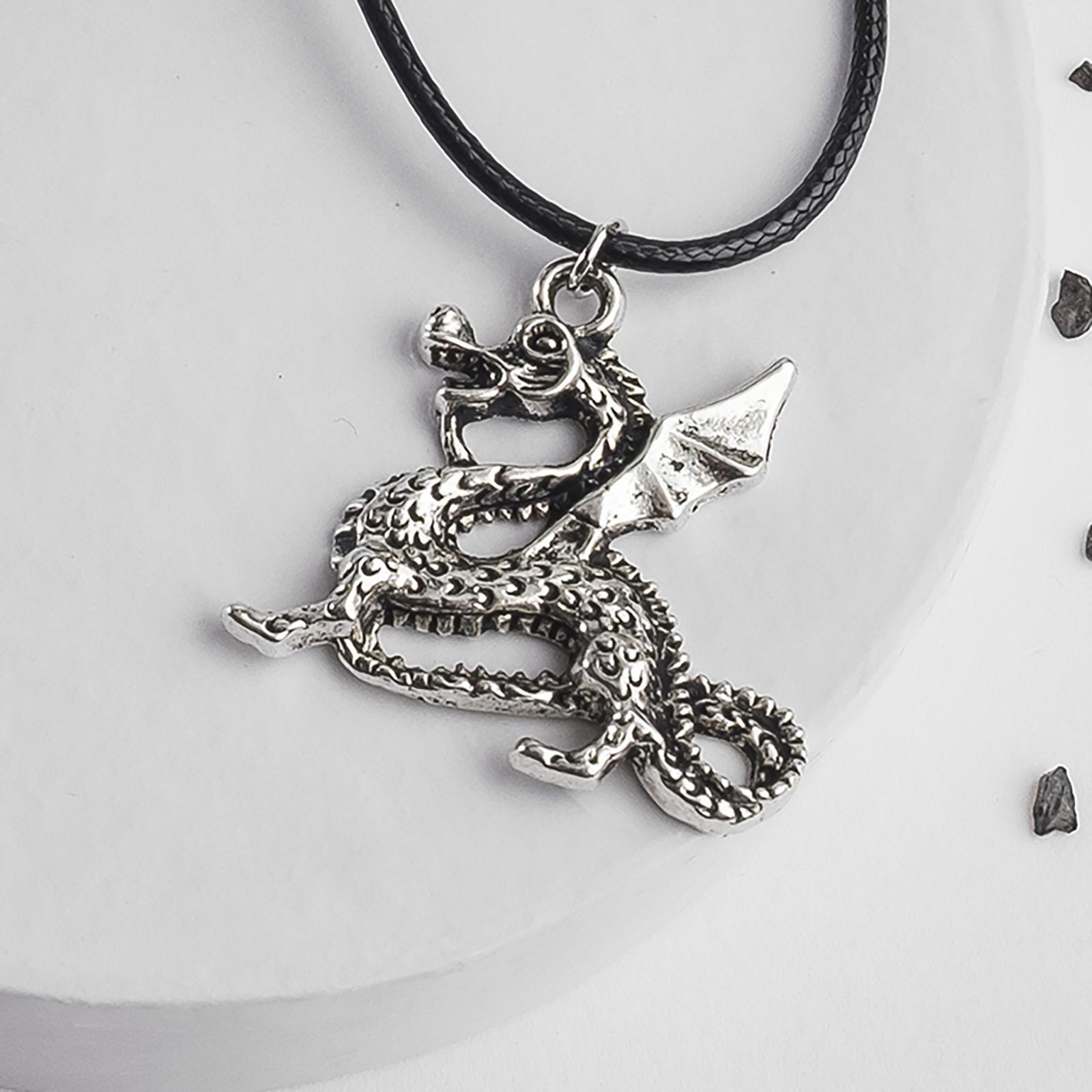 Кулон на шнурке «дракон», цвет чернёное серебро на чёрном шнурке, 42 см
