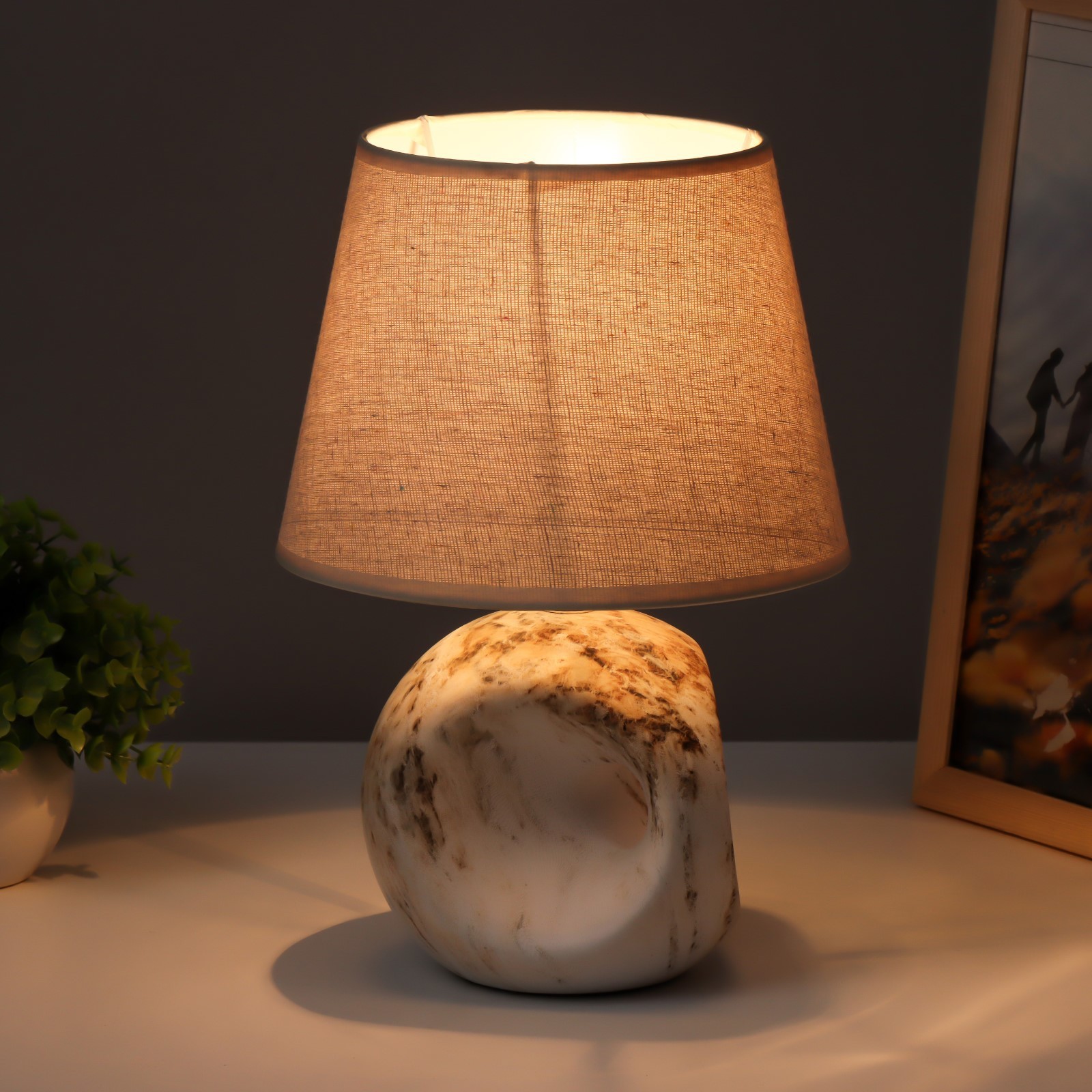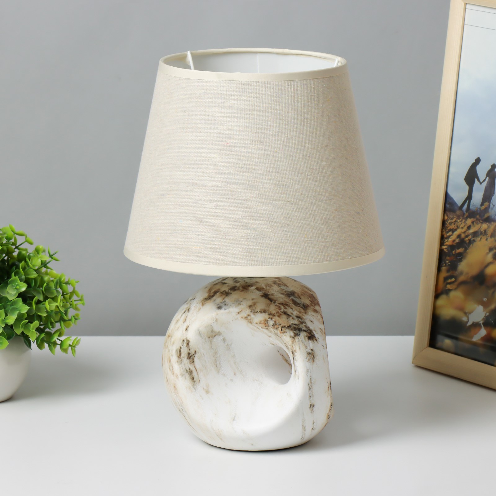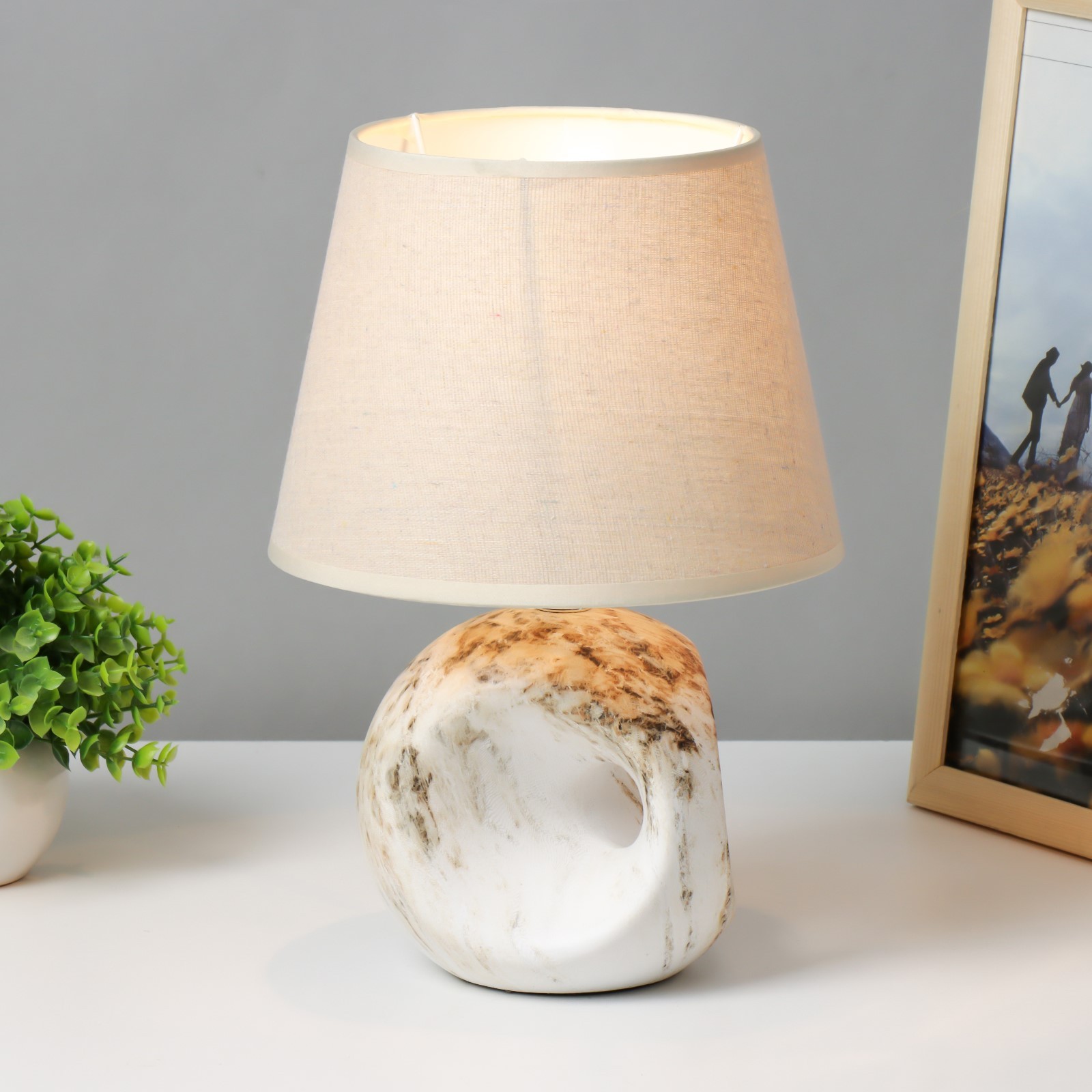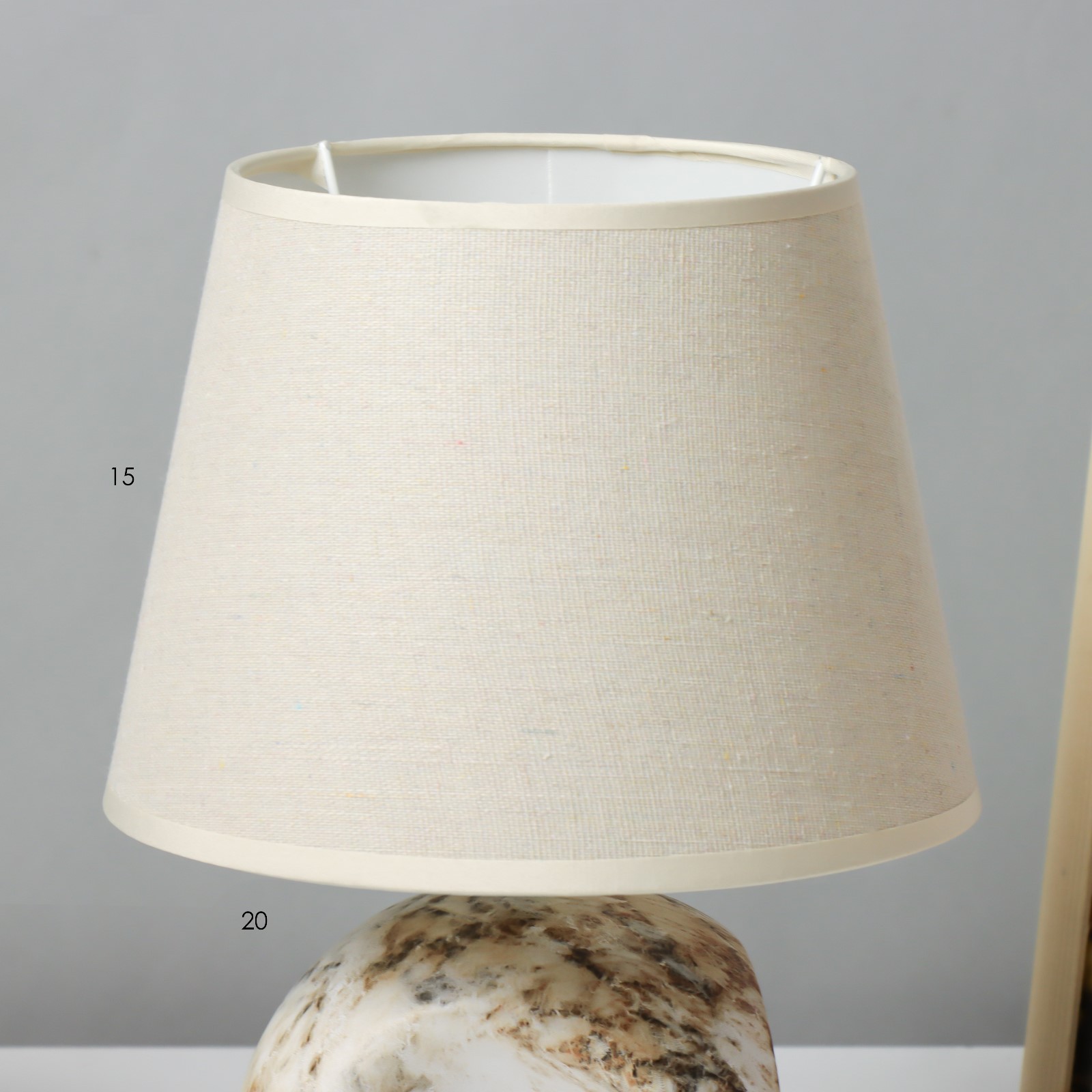 Лампа настольная «аделия» 1 40 вт e14 бежевый 20 20 20.5 см risalux. Декоративная настольная лампа «Аделия» с текстильным абажуром украсит интерьер в экостиле. Интересное керамическое основание имитирует камень. Вид лампы:Накаливания|Количество ламп:1|Цоколь:E14|Длина, см:14.5|Ширина, см:14.5|Высота, см:20.5|Гарантийный срок, мес.:24|Мощность на цоколь, Вт:40|Материал основания:Керамика|Цвет основания:Серый|Тип рассеивателя:Абажур|Особенности светильника:Без особенностей|Оттенок рассеивателя:Тёмные тона|Материал рассеивателя:Текстиль|Материал рассеивателя:Пластик|Управление светильником:С выключателем на проводе|Форма рассеивателя:Трапеция|Направление рассеивателя:Вверх|Особенность стиля:Классика|Цвет рассеивателя:Бежевый|Тип питания:От сети 220 В|Тип источника освещения:Лампа не в комплекте|Страна:Китай  развернуть описание ▼