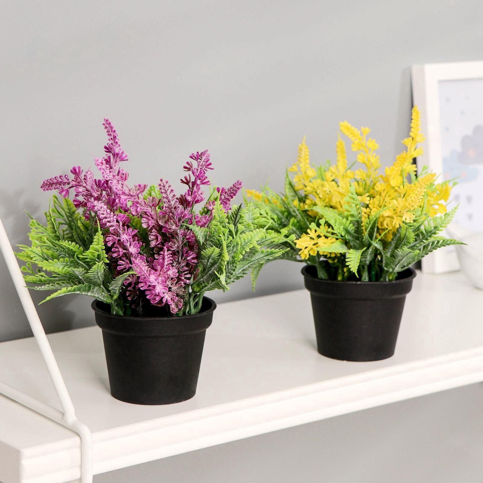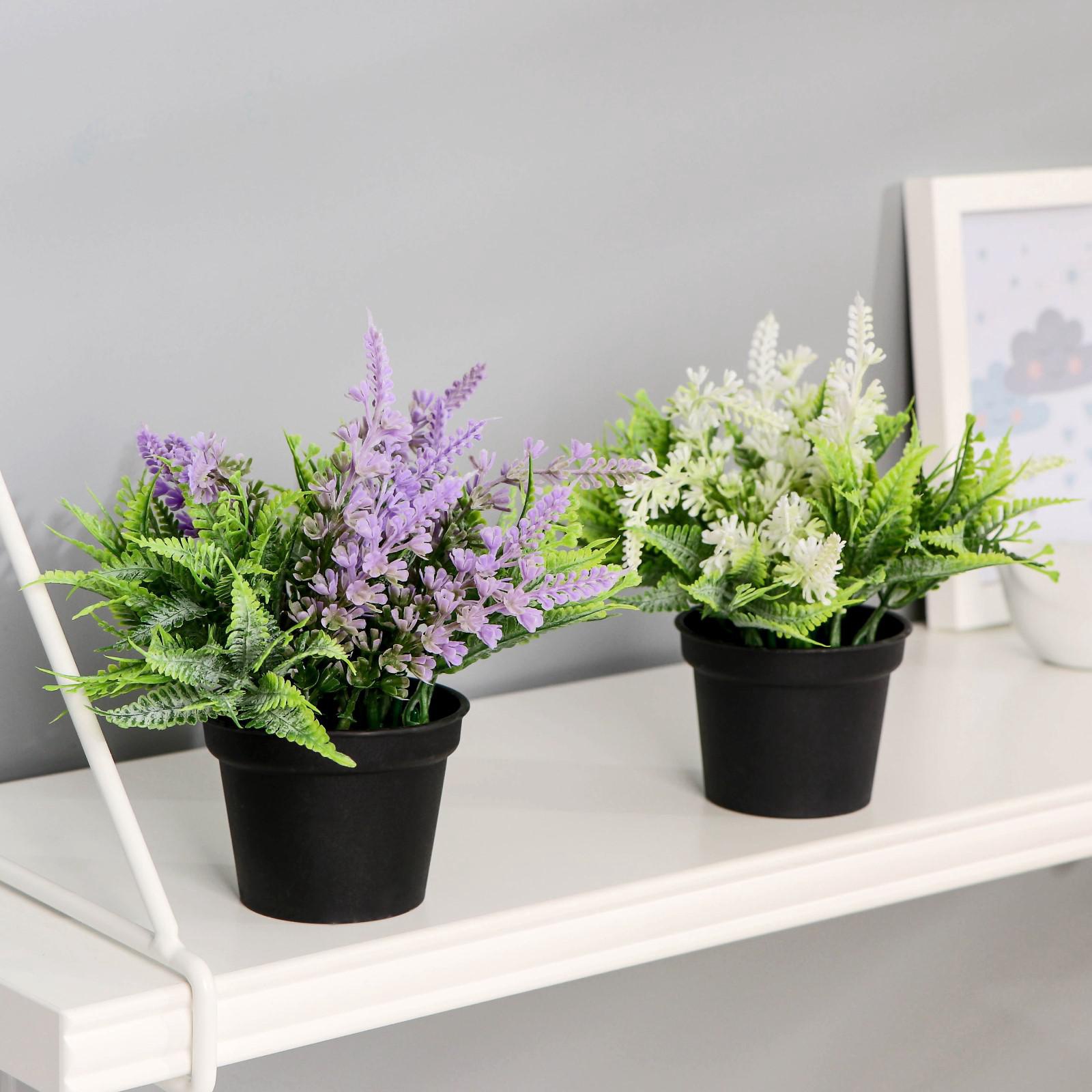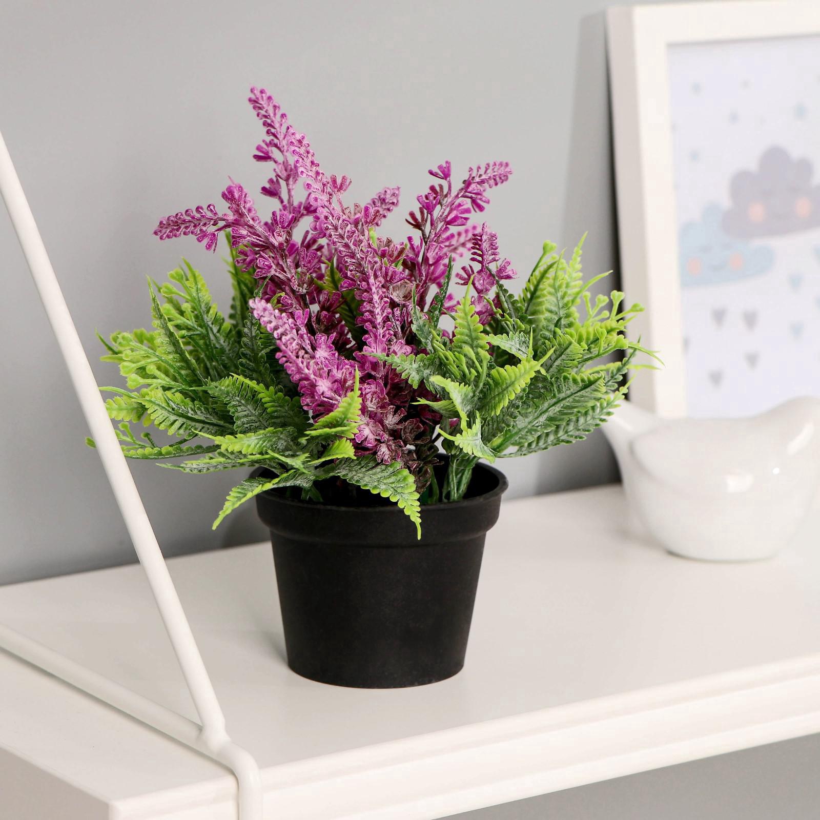 Искусственный цветок в горшке «лаванда с папоротником», 6.5 12 см, микс