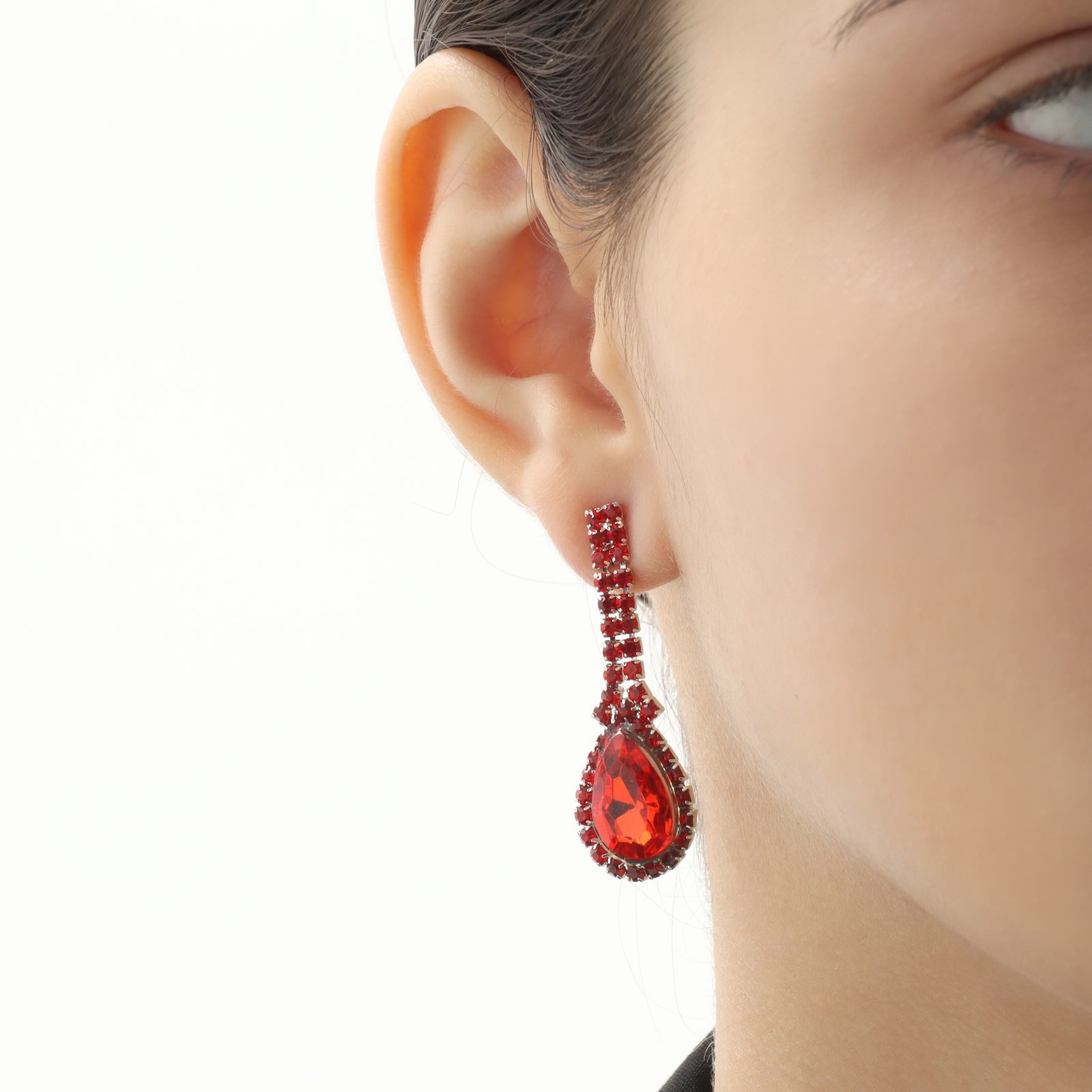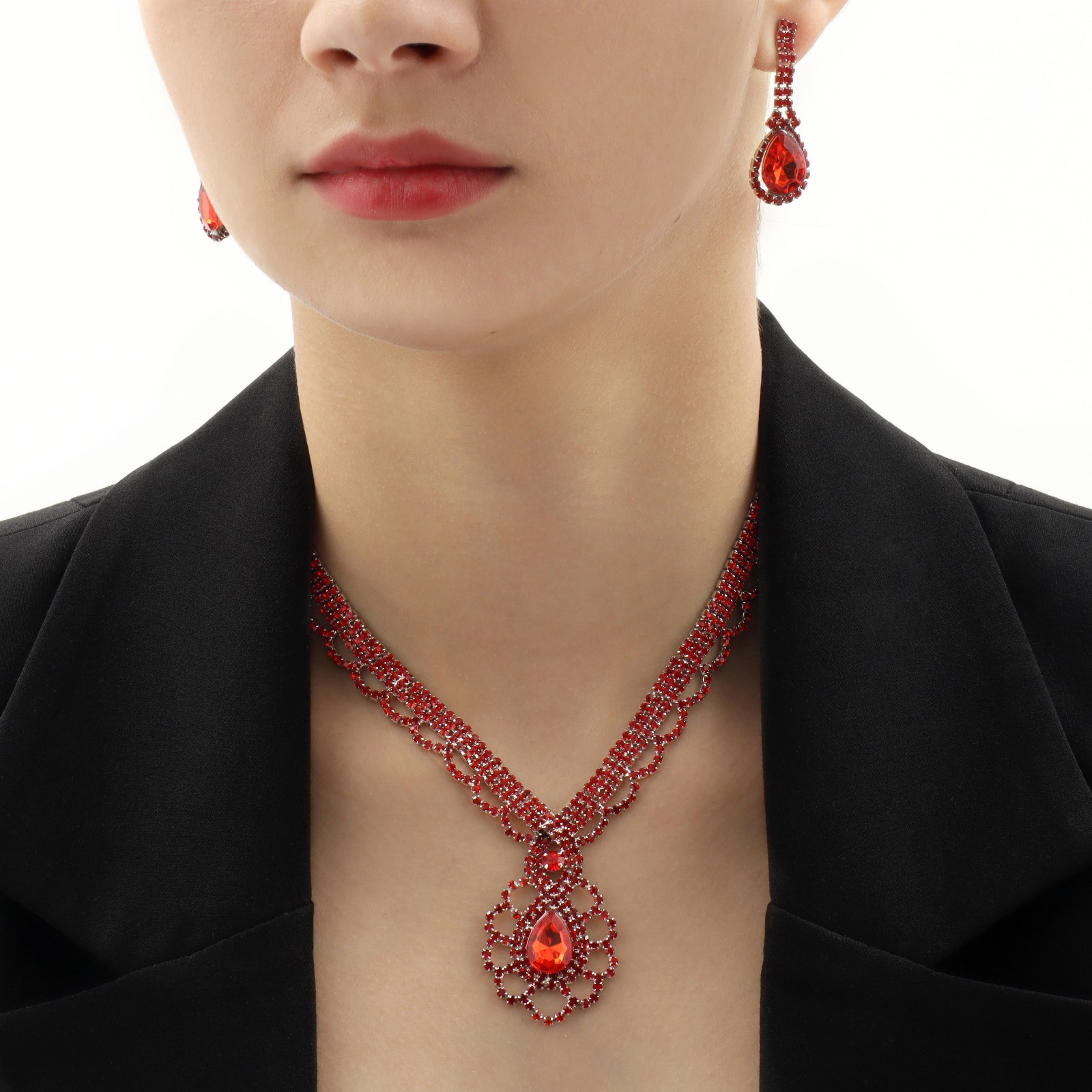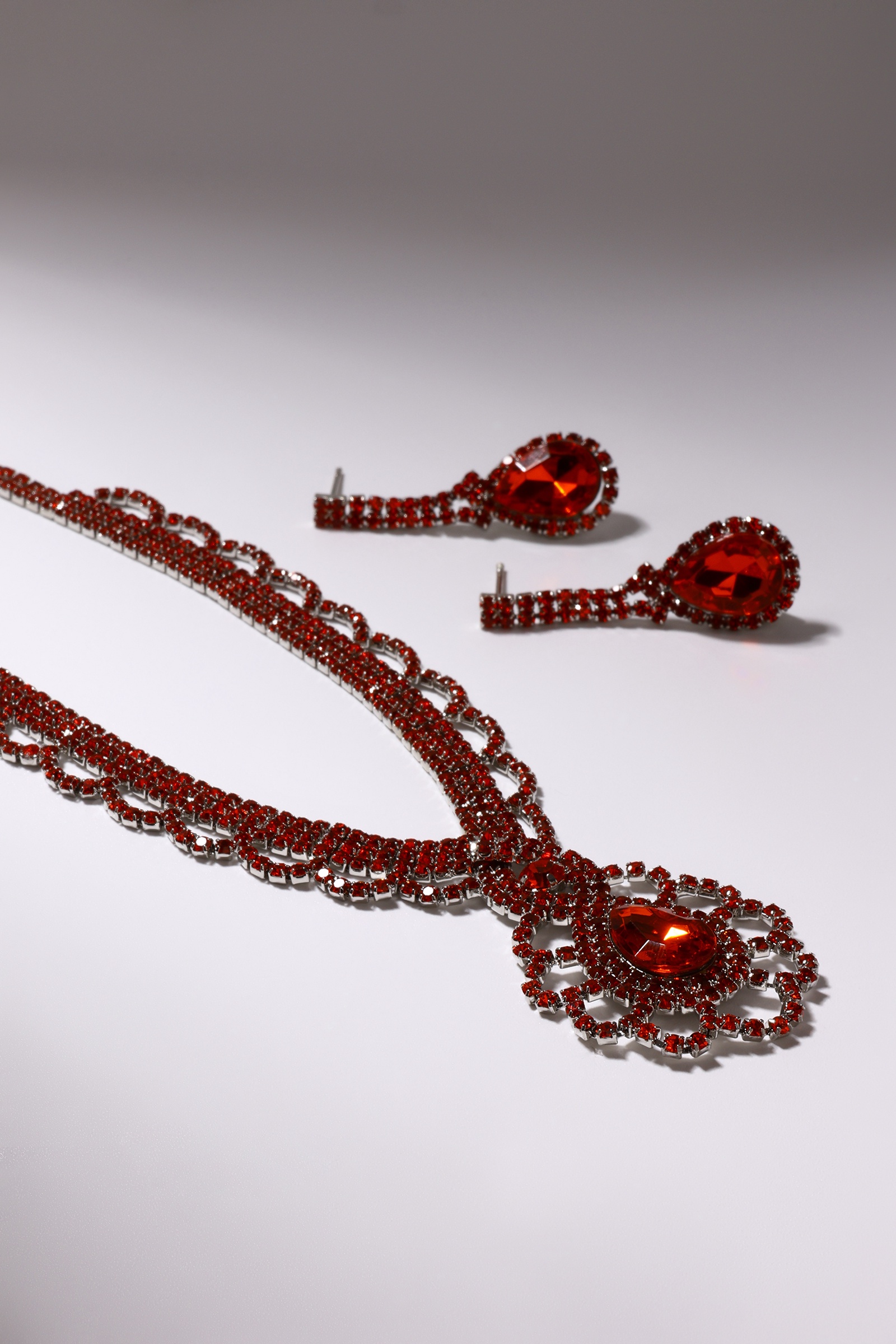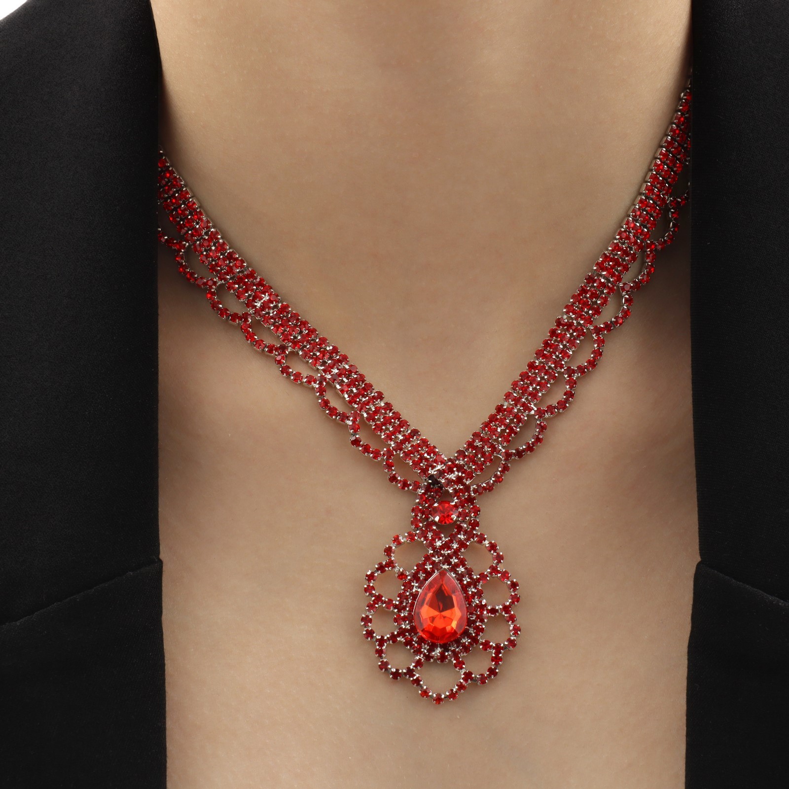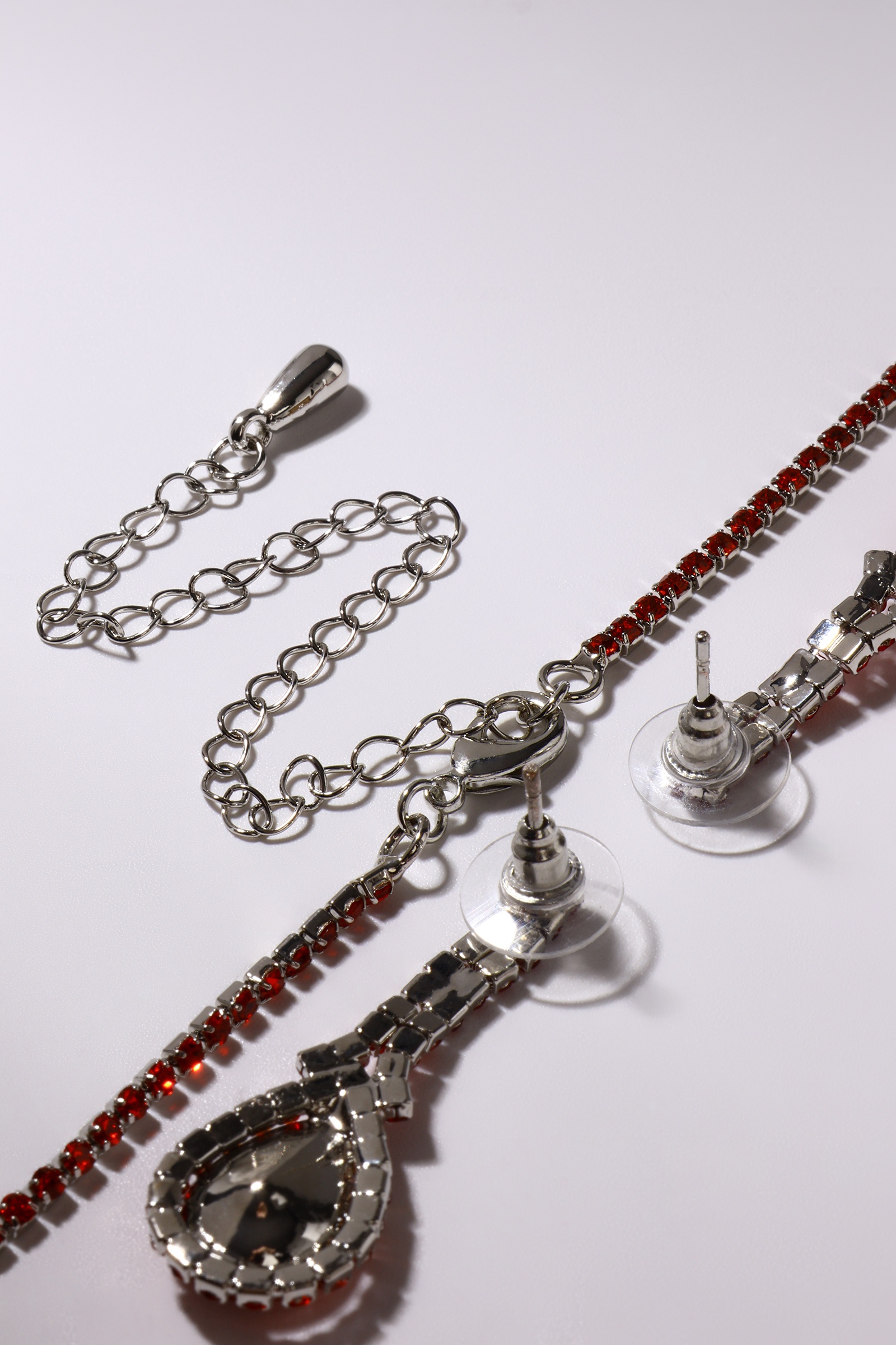 Набор 2 предмета: серьги, колье «феникс» капля в стразах, цвет красный в серебре, 35 см