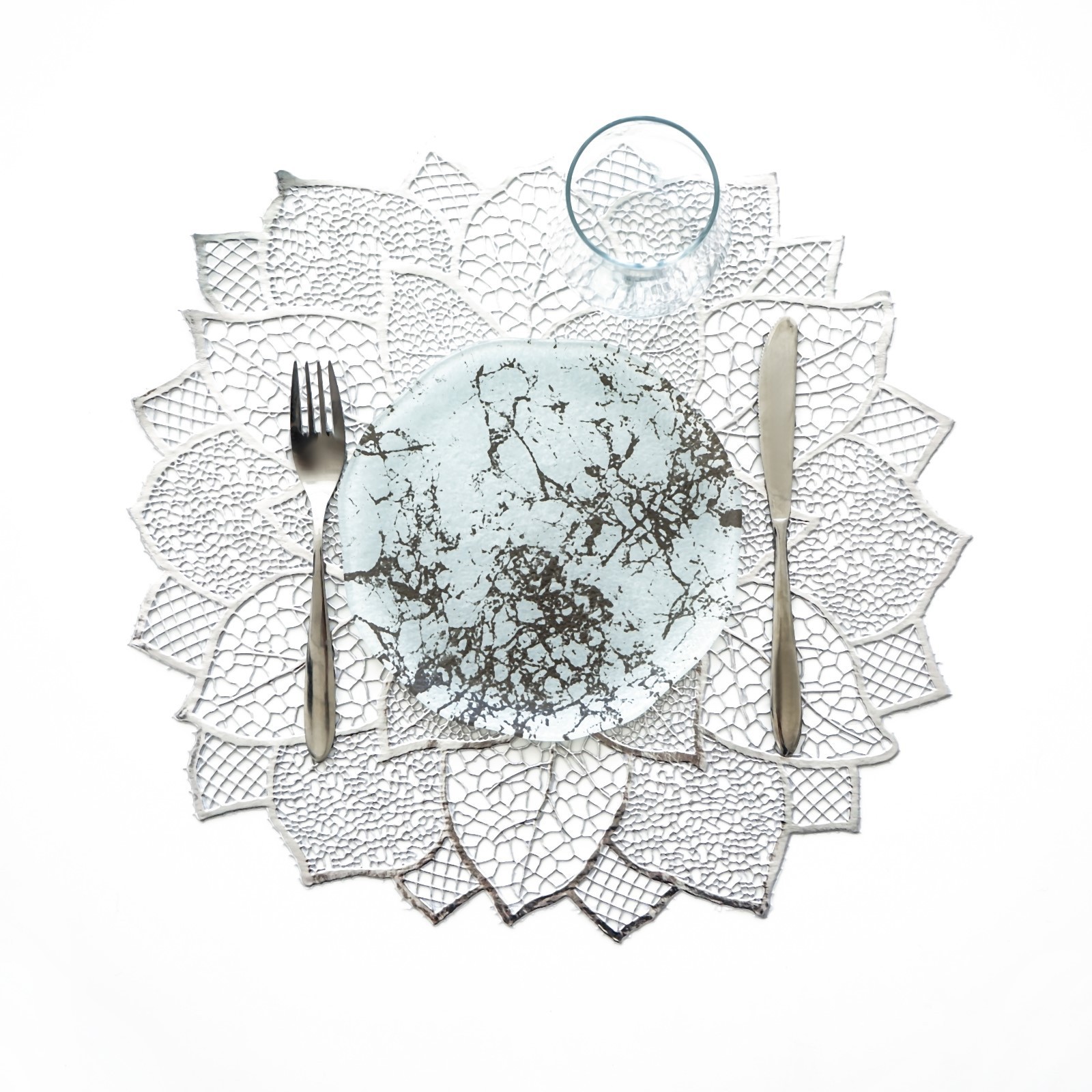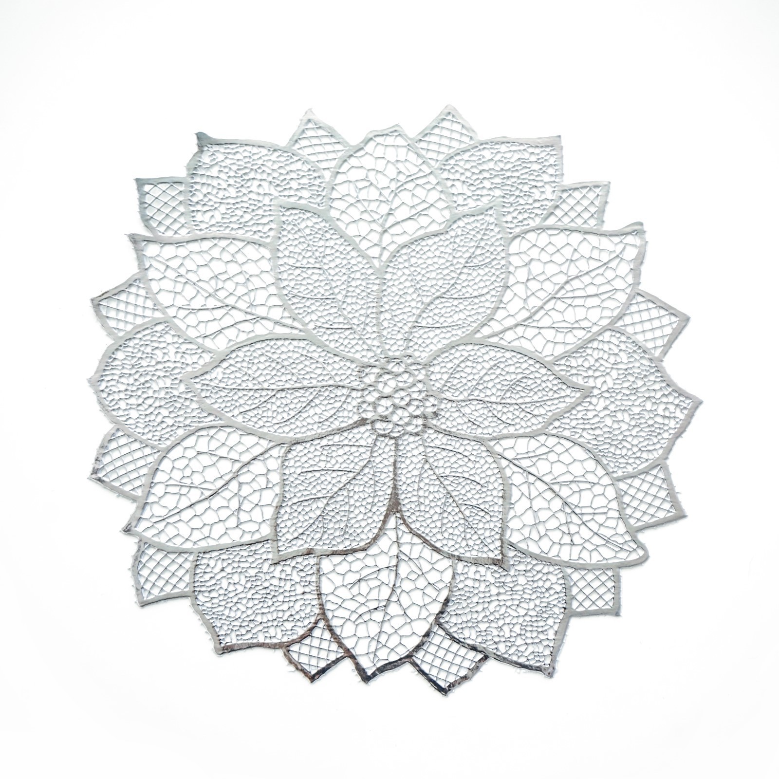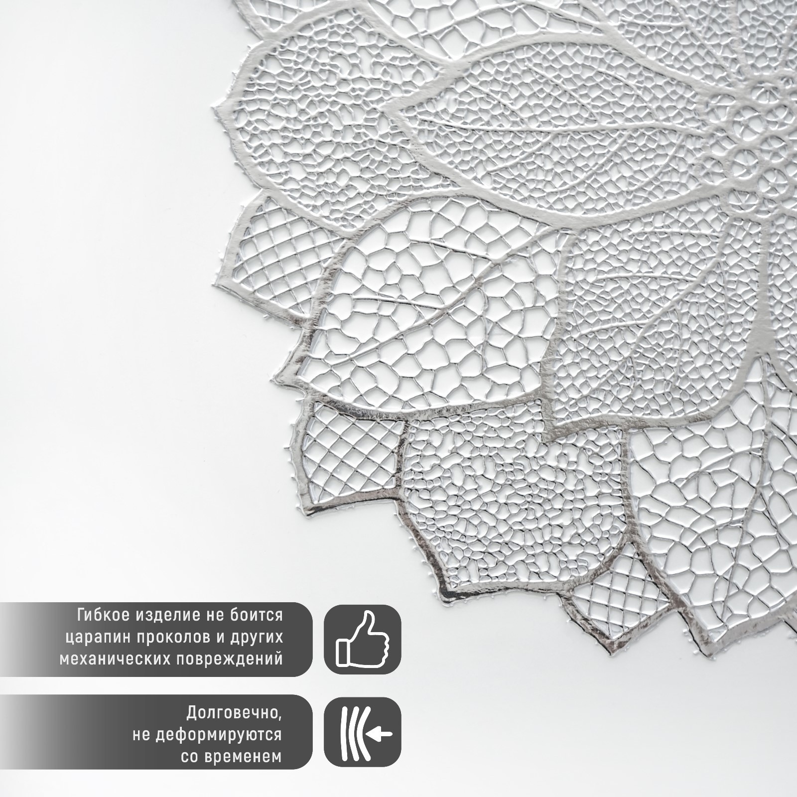 Салфетка сервировочная на стол «цветок», D=43 см, цвет серебряный