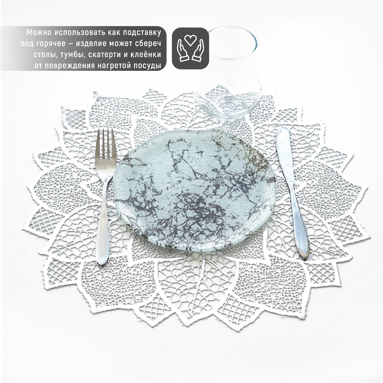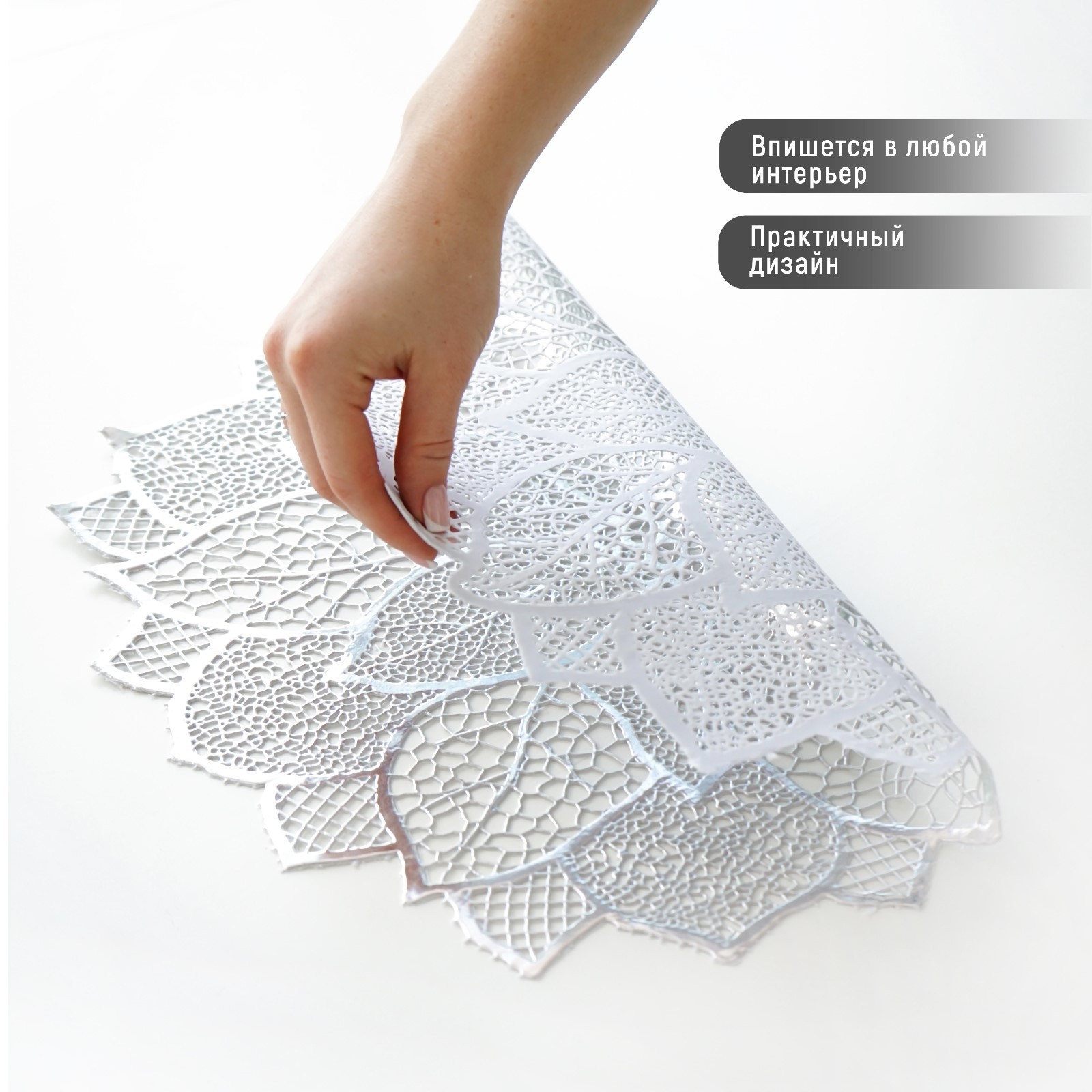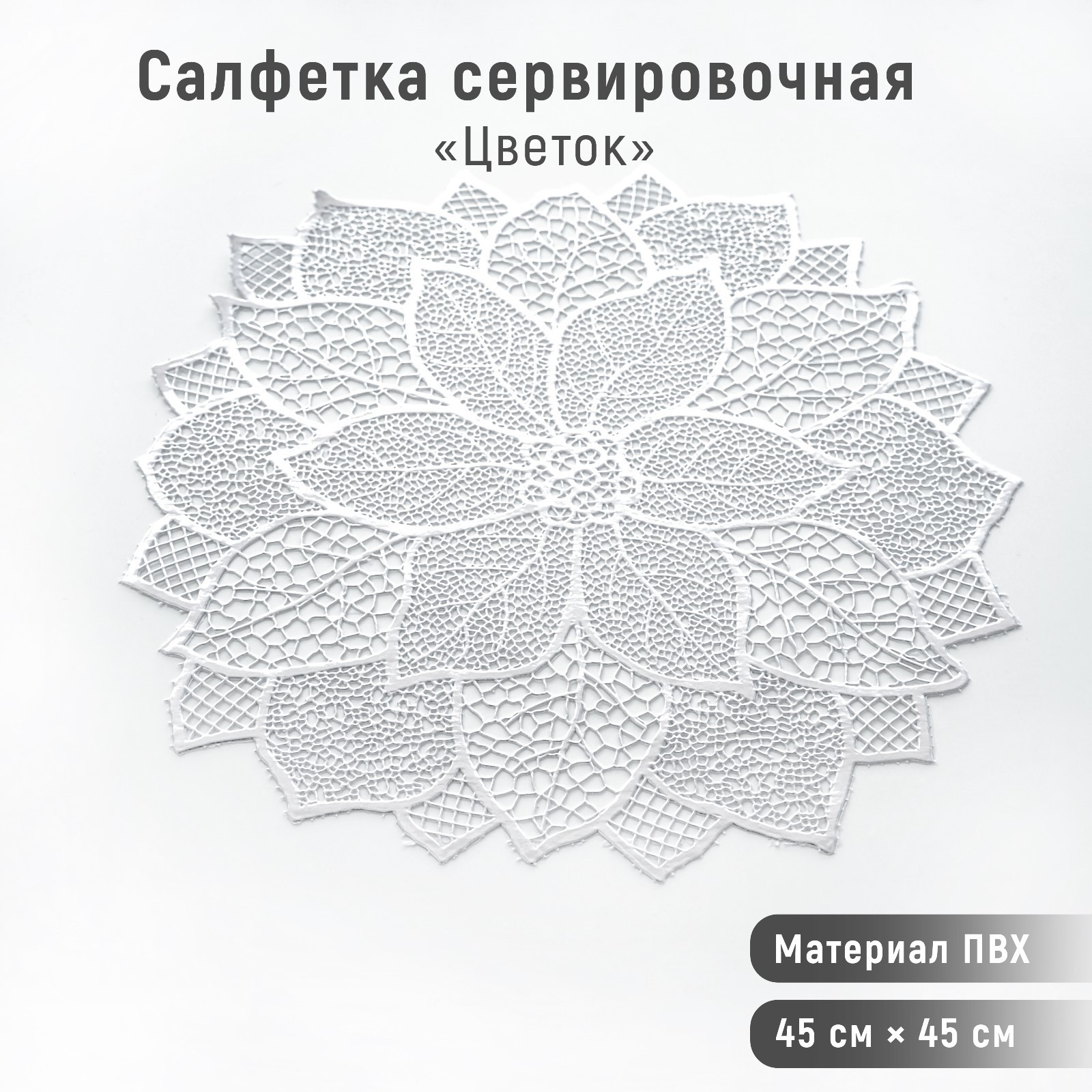 Салфетка сервировочная на стол «цветок», D=43 см, цвет серебряный