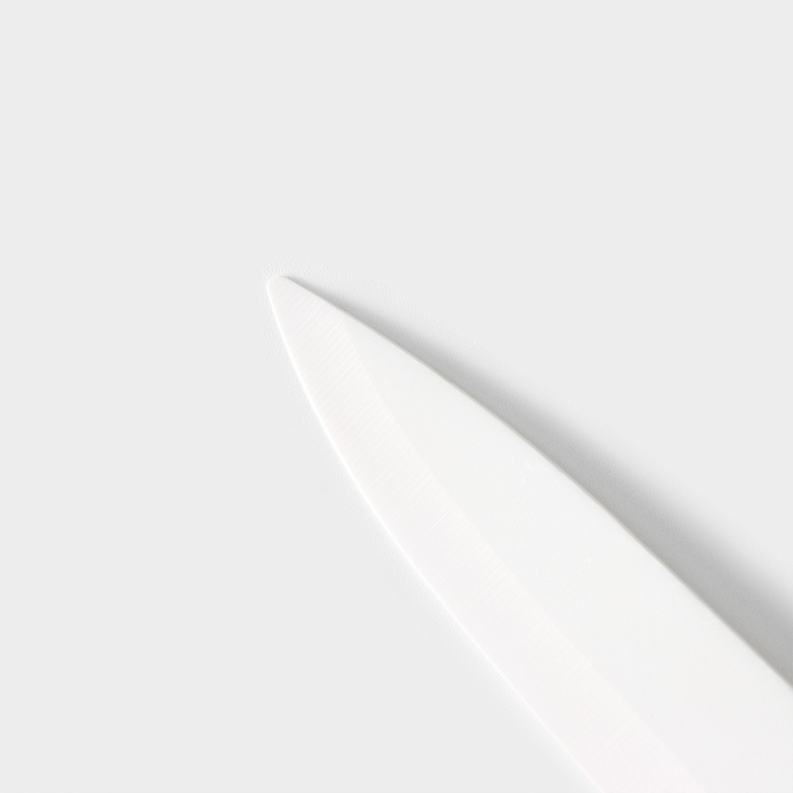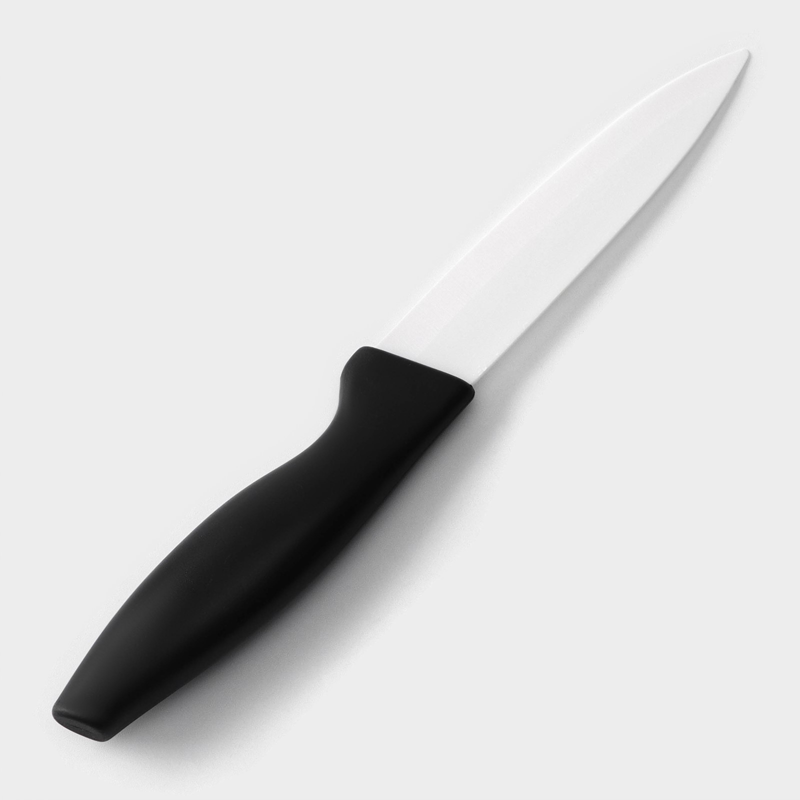 Нож керамический доляна «тень», лезвие 10,5 см, цвет чёрный. Универсальный керамический нож будет незаменим на кухне каждой хозяйки! Сделает нарезку любых видов продуктов легкой, сократит время, отведенное на готовку! Преимущества: Керамика считается самым лучшим существующим материалом для ножей. Фрукты, овощи и мясо без костей можно разрезать без малейшего усилия. Лезвие чрезвычайно твердое, не изменяет вкуса пищи и не придает ей никакого запаха. Цвет: Чёрный Длина лезвия, см: 10 Материал ручки: Пластик Тип покрытия: Без покрытия Материал лезвия: Керамика Запрет реализации по сегментам: 00000000208  развернуть описание ▼