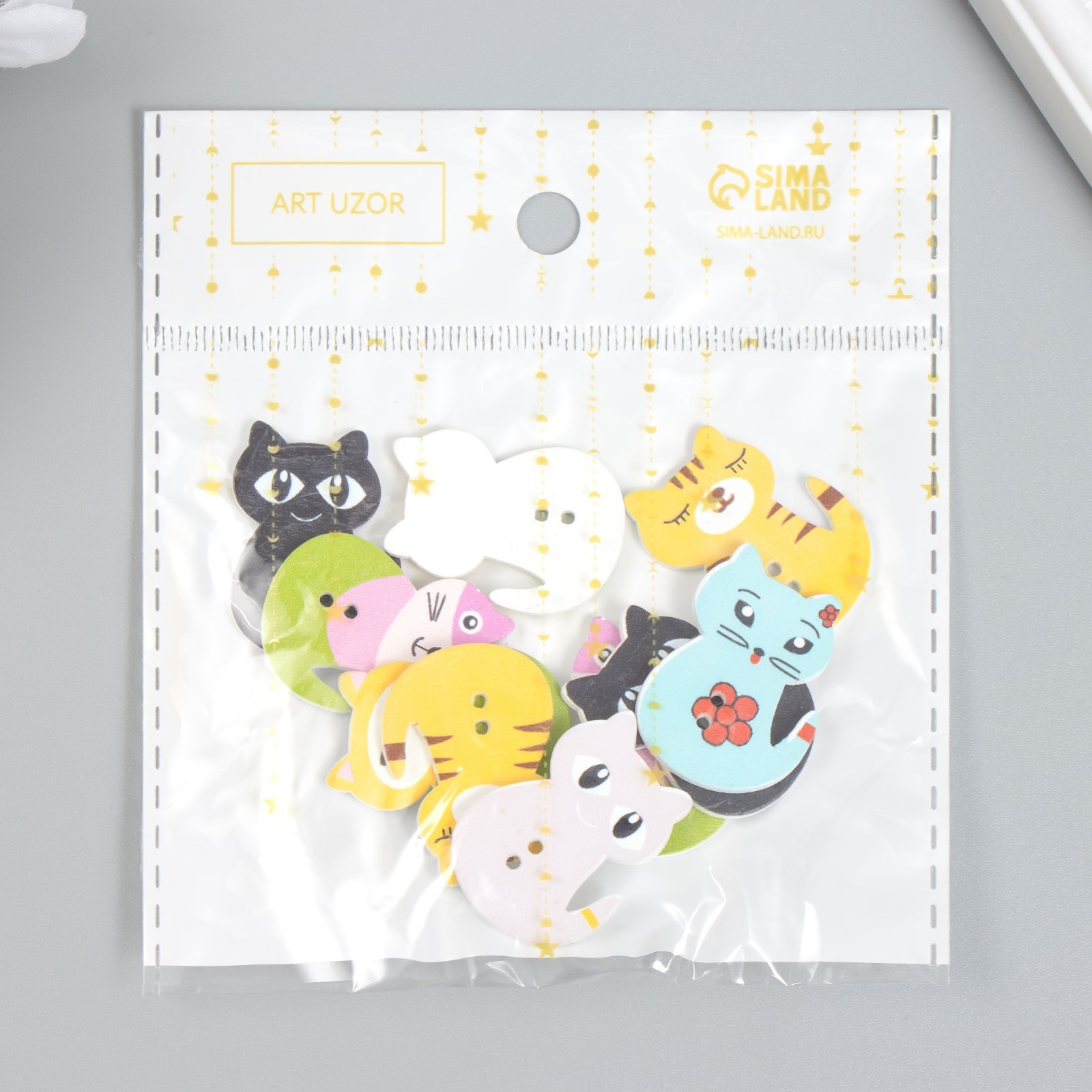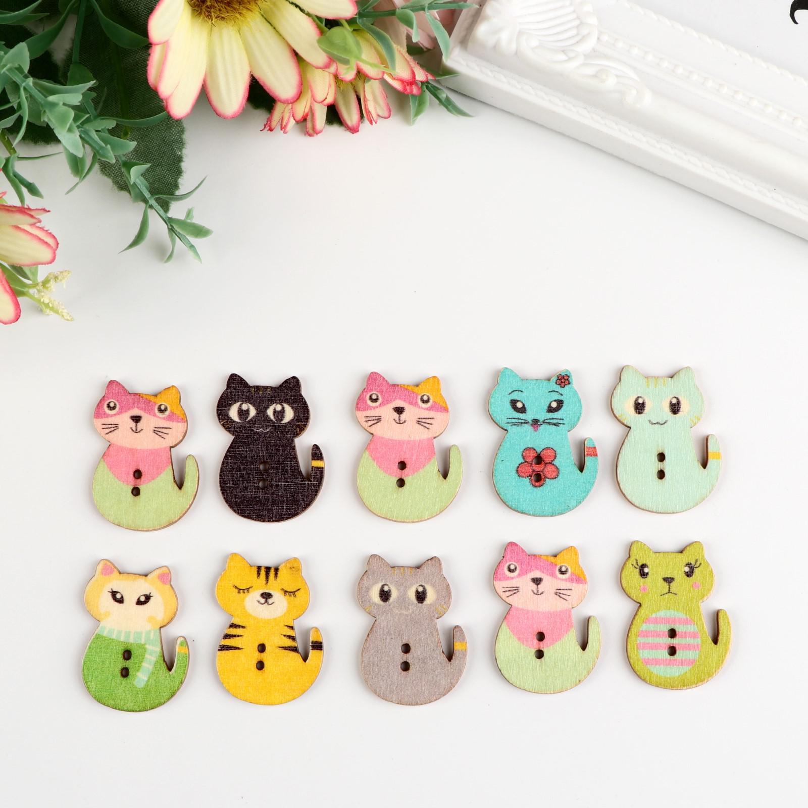 Пуговицы дерево для творчества 2 прокола «котята», набор 10 шт., 3 2.1 0.2 см