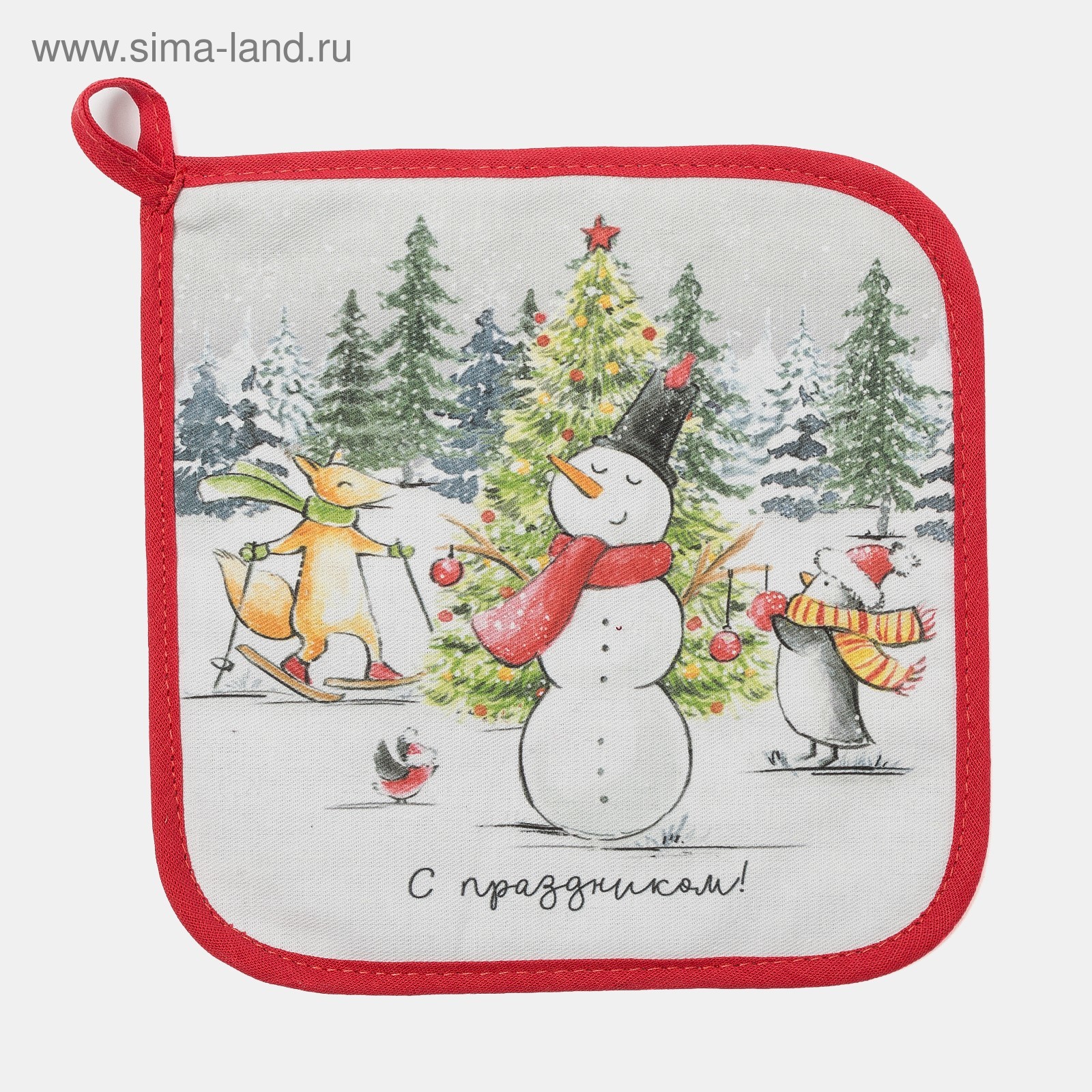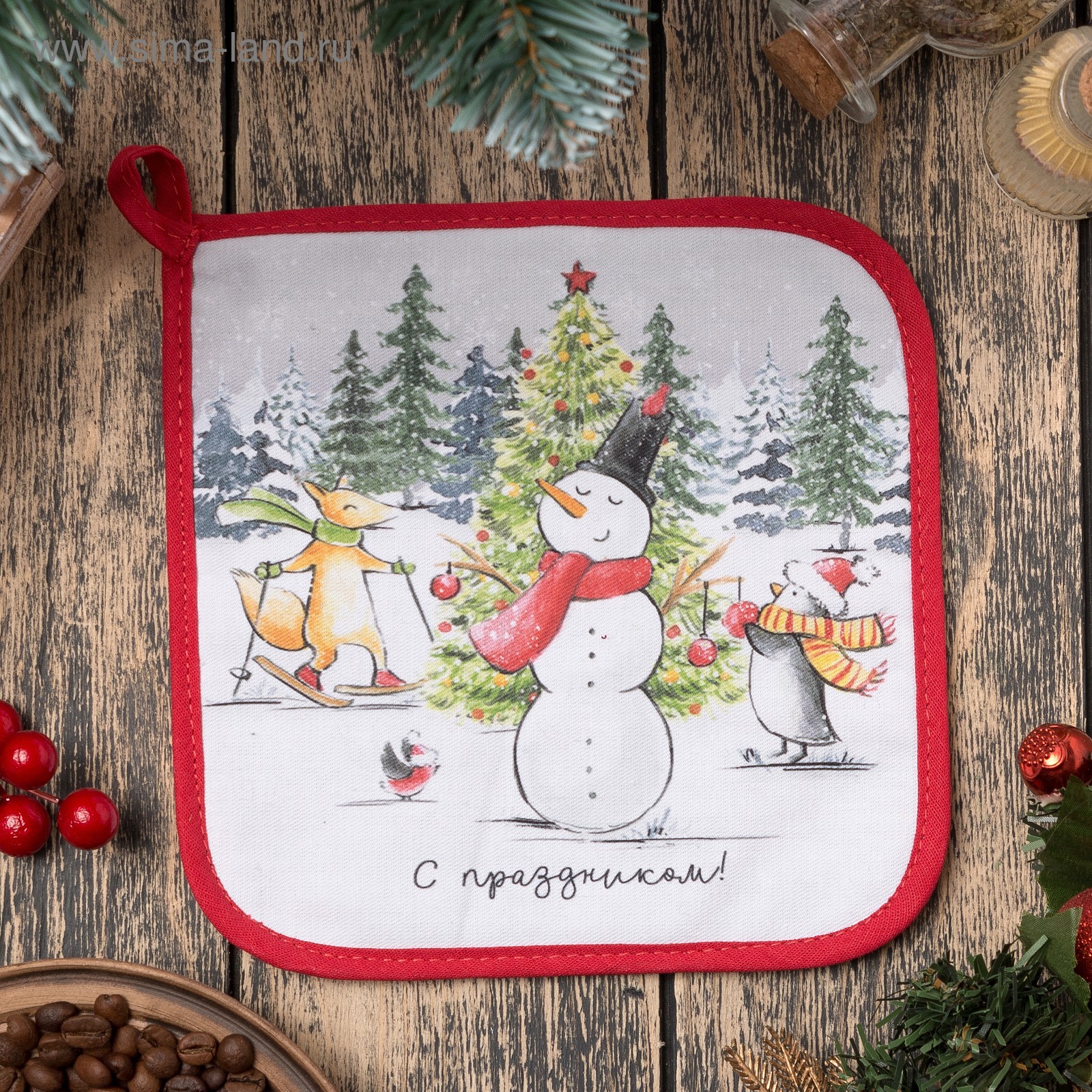 Прихватка "с праздником" 19х19см,100% х/л,ватин 250г/м2