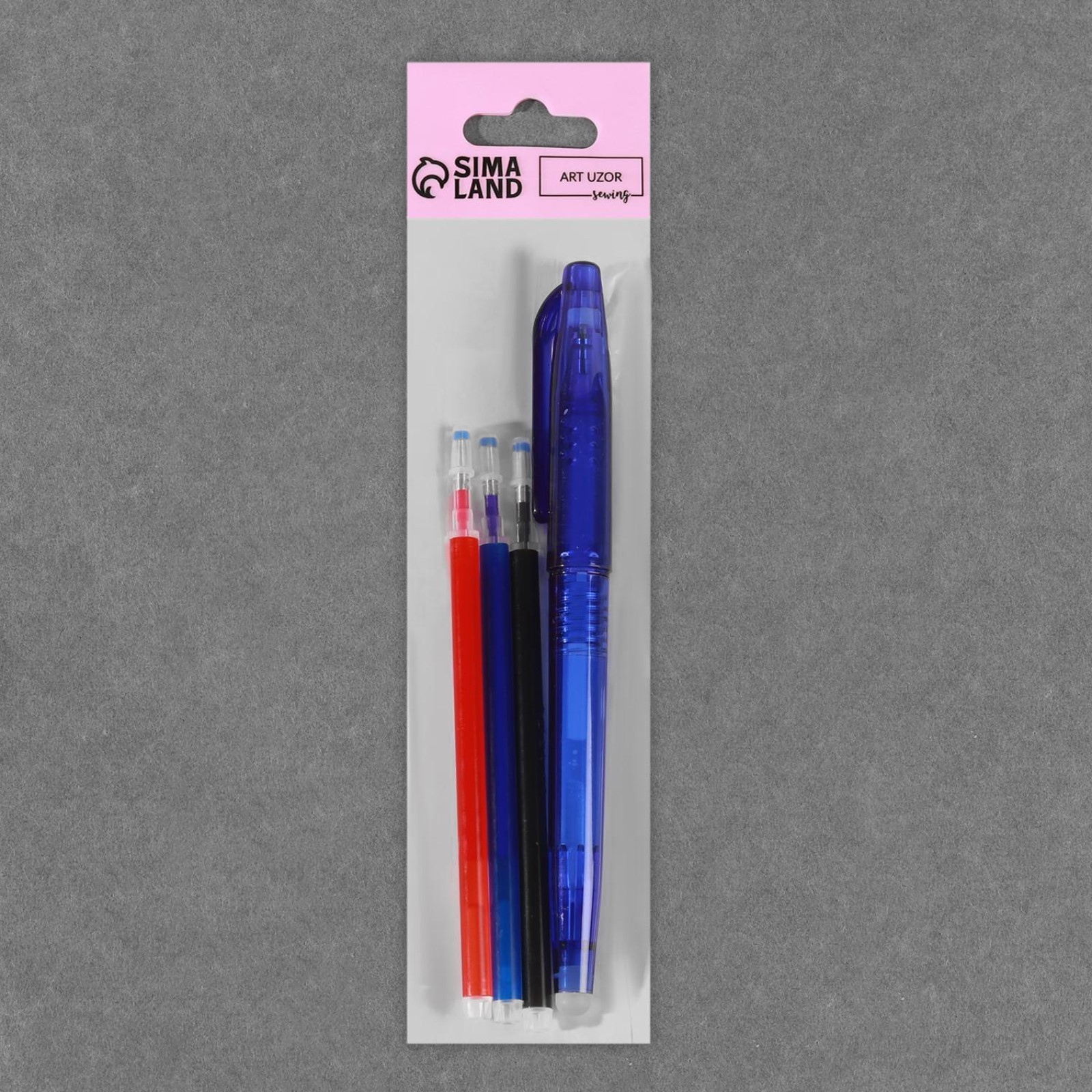 Ручка для ткани термоисчезающая, с набором стержней, белая, розовая, чёрная, синяя