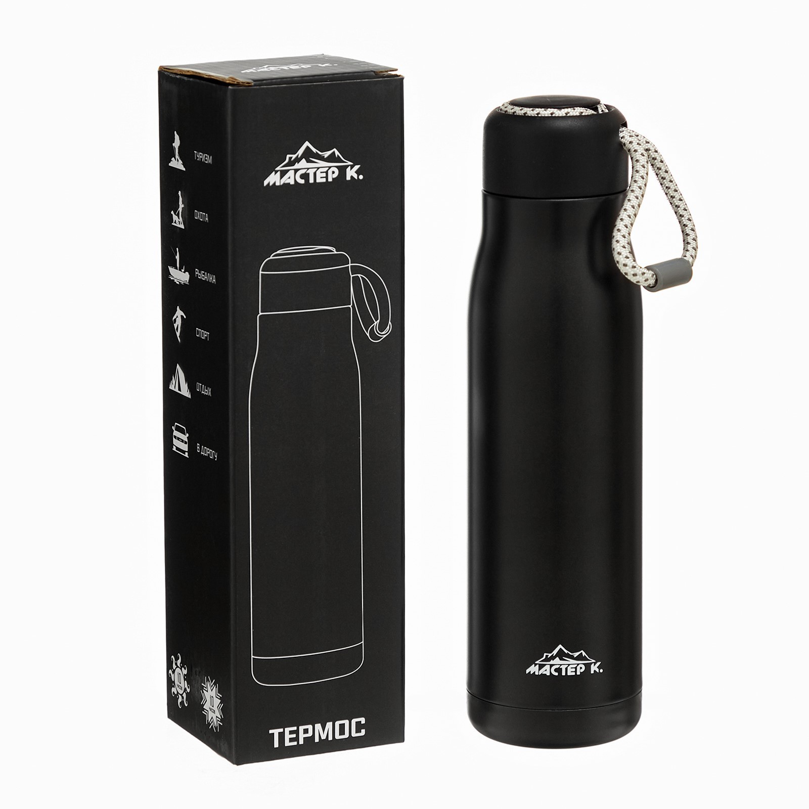 Термос, 600 мл, тraveller "мастер к.", сохраняет тепло 10 ч, 26 х 7 см, черный