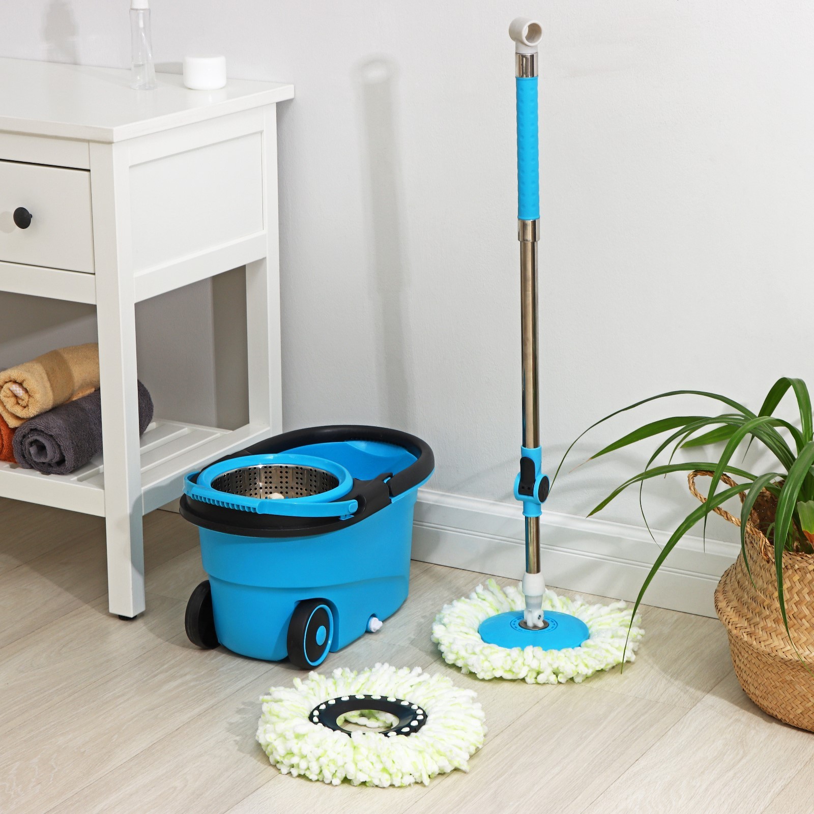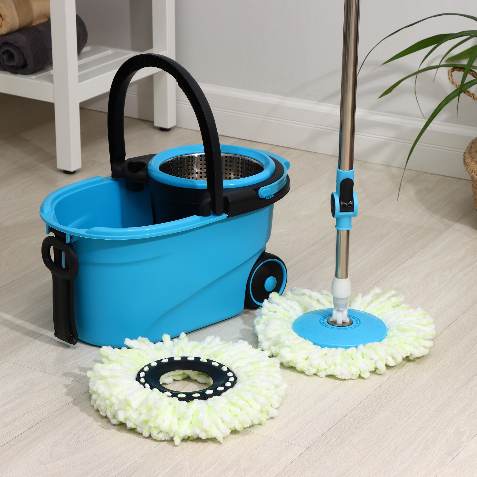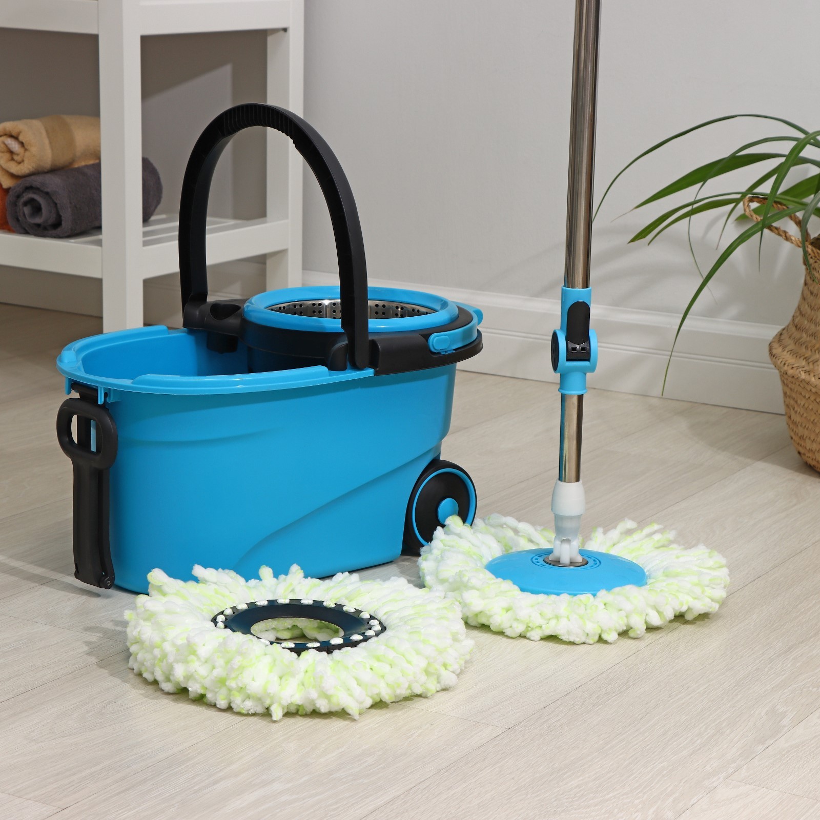 Набор для уборки доляна: ведро на колёсиках с металлической центрифугой 18 л, швабра, запасная насадка из микрофибры, цвет синий